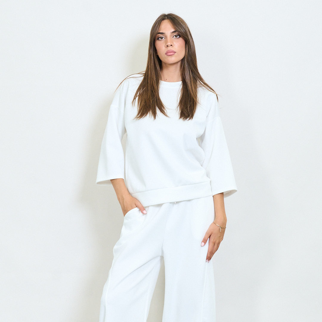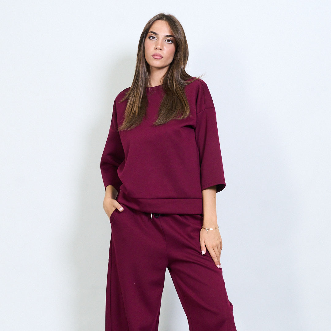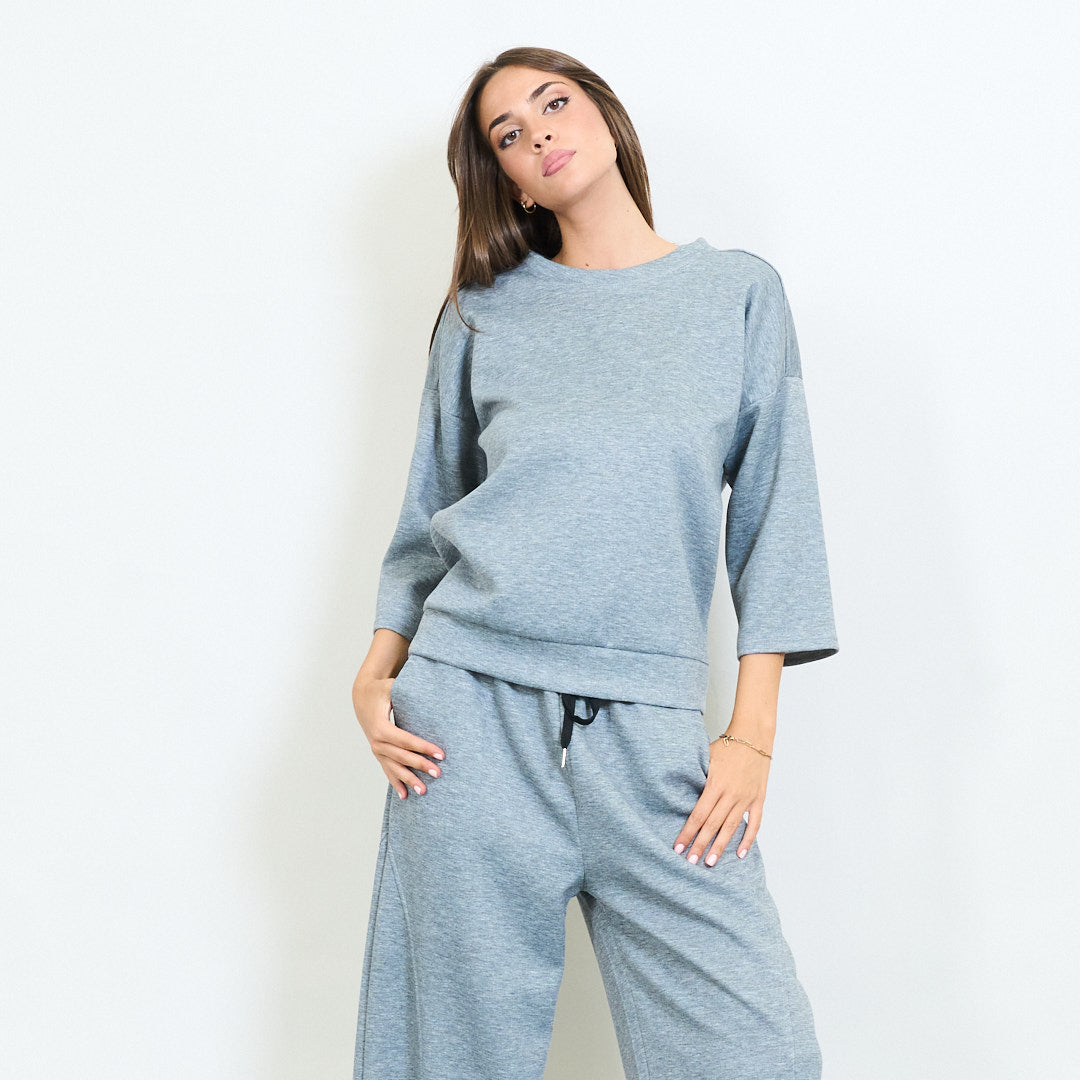 - Суичър на шията на екипажа с чист, минимален дизайн