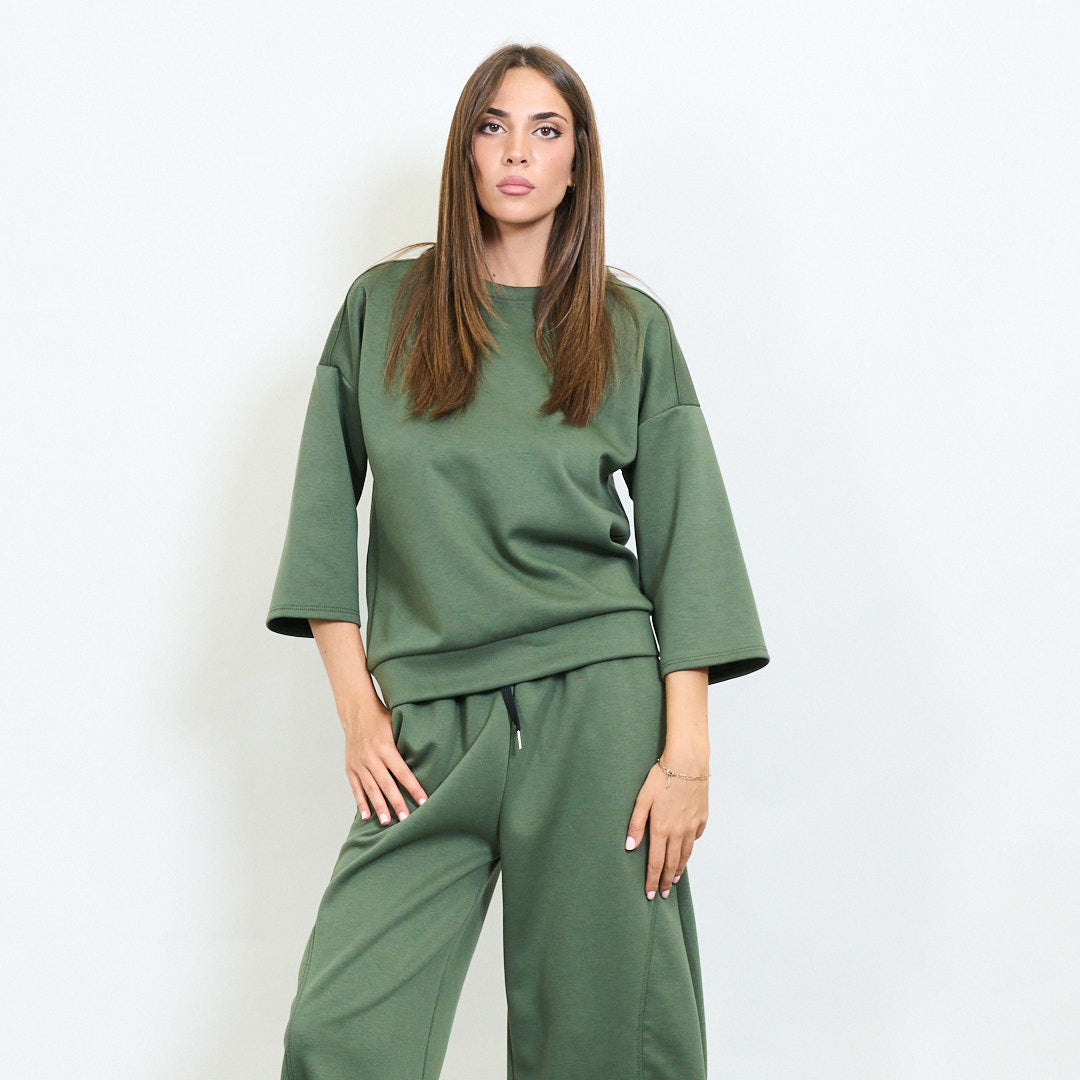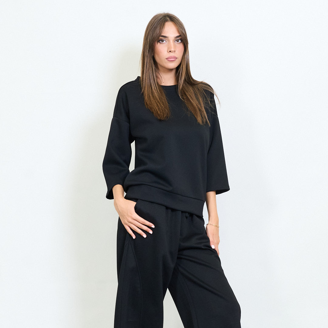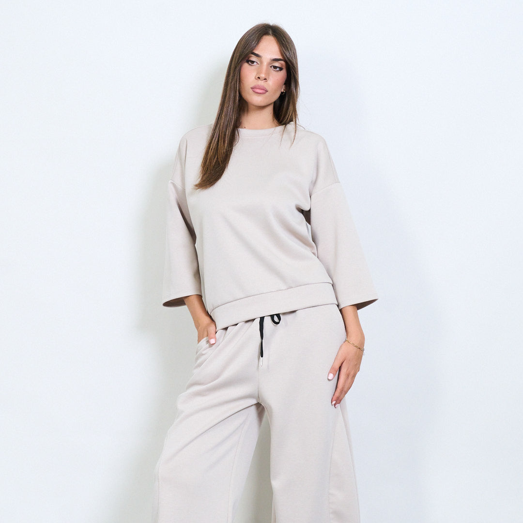 - Суичър на шията на екипажа с чист, минимален дизайн