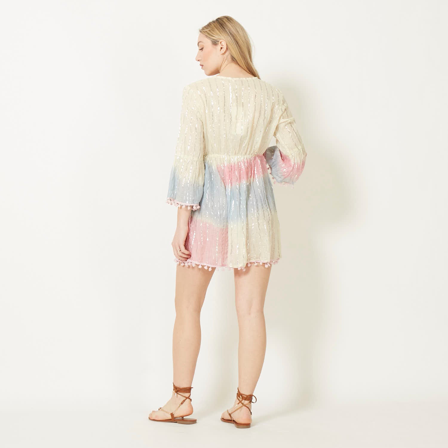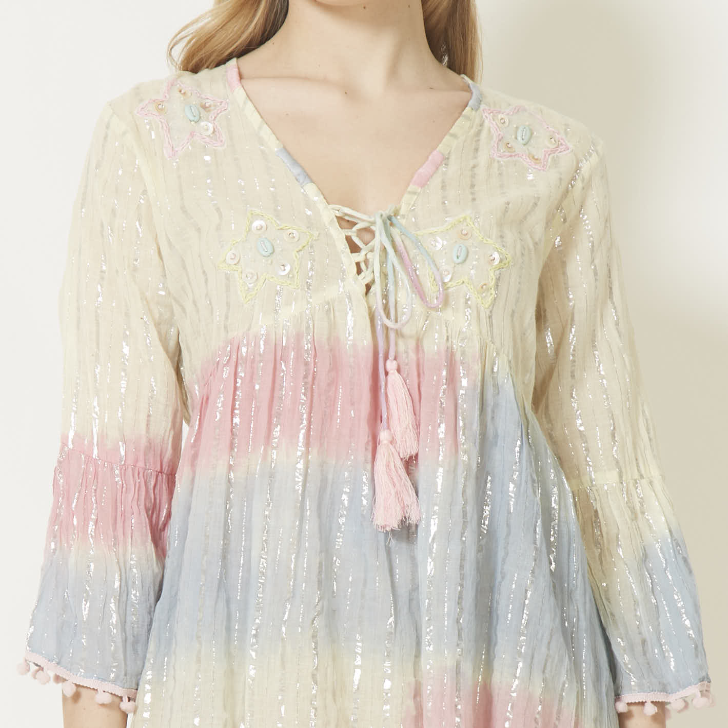 Фантастична фентъзи сребърна нишка рокля с голямо V-образно деколте