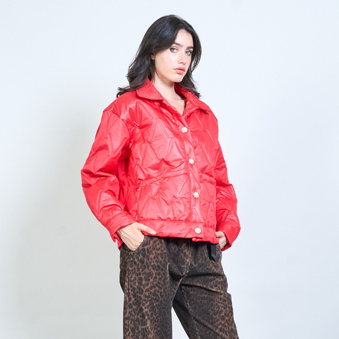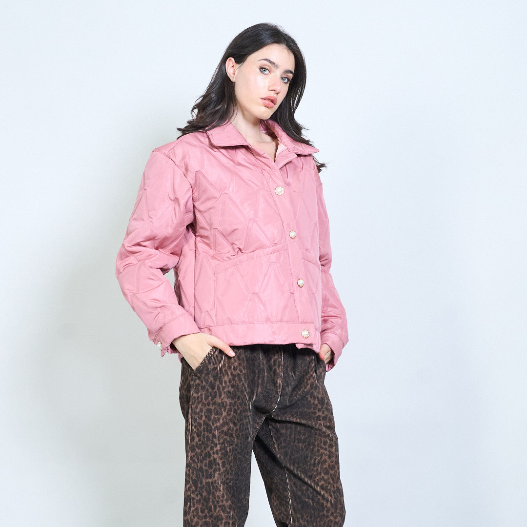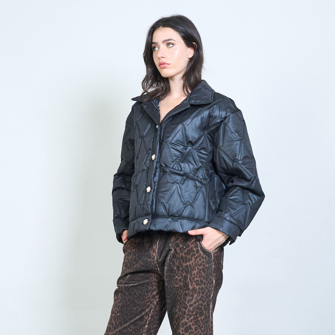 Геометричен ватиран бутон предно подрязано яке на едро