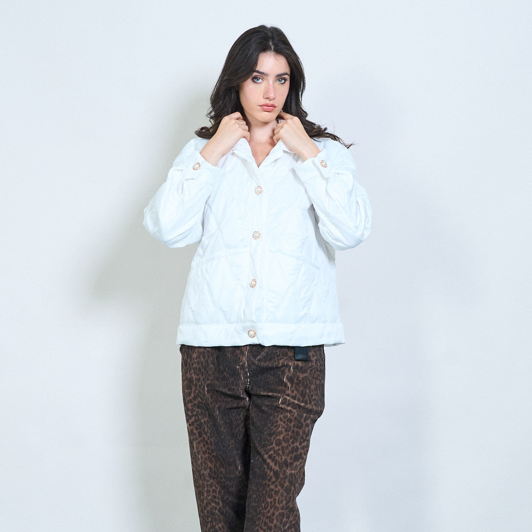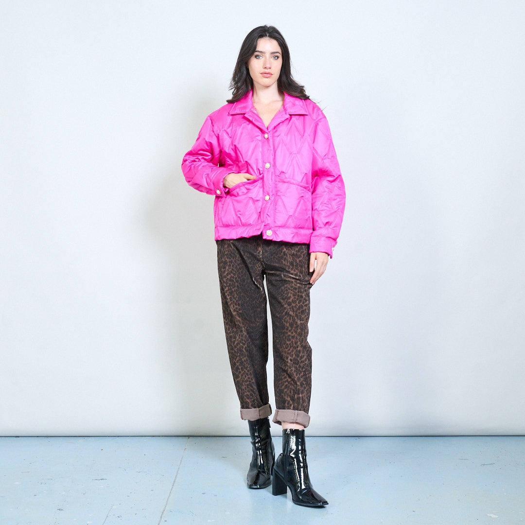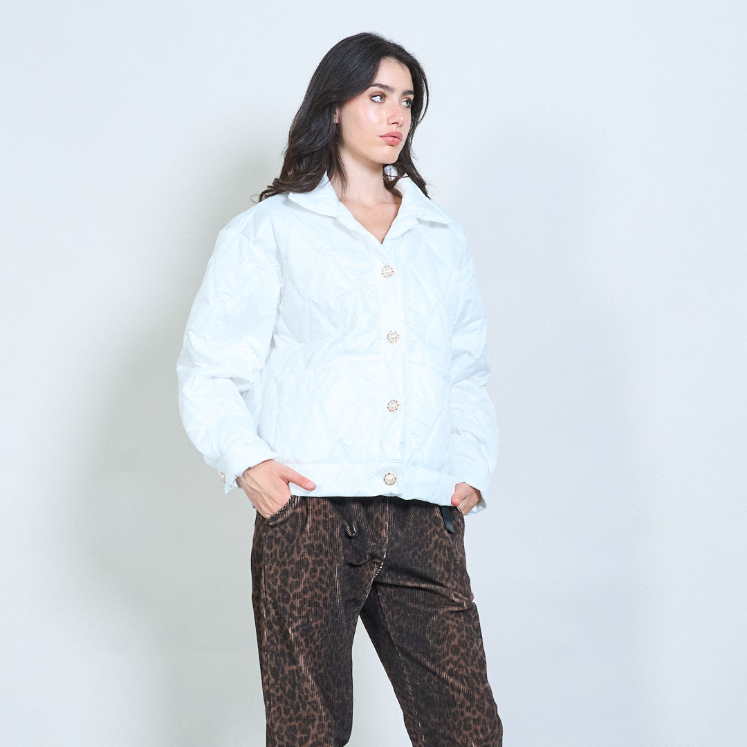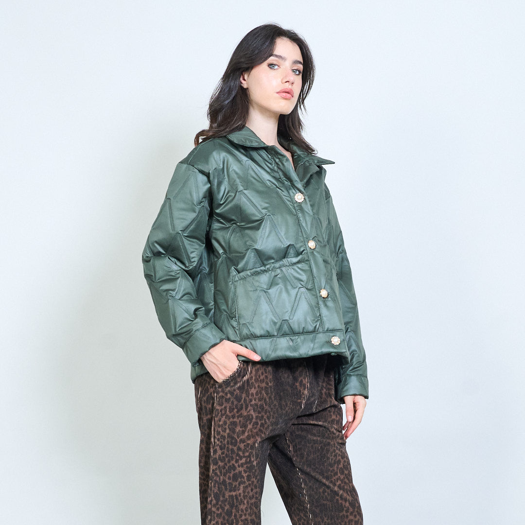 Геометричен ватиран бутон предно подрязано яке на едро