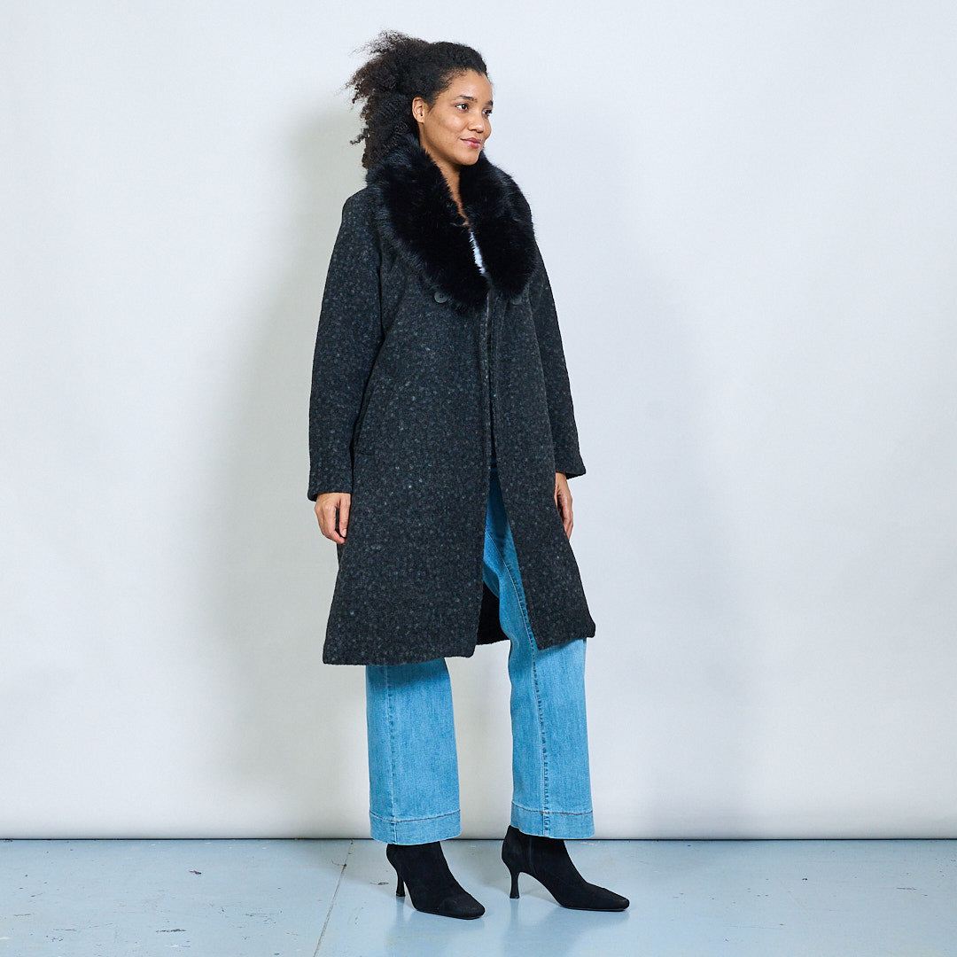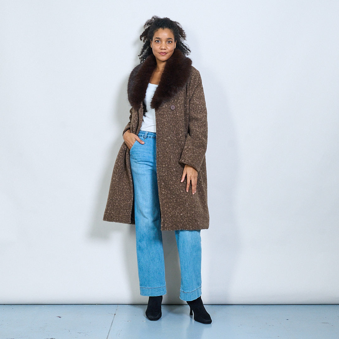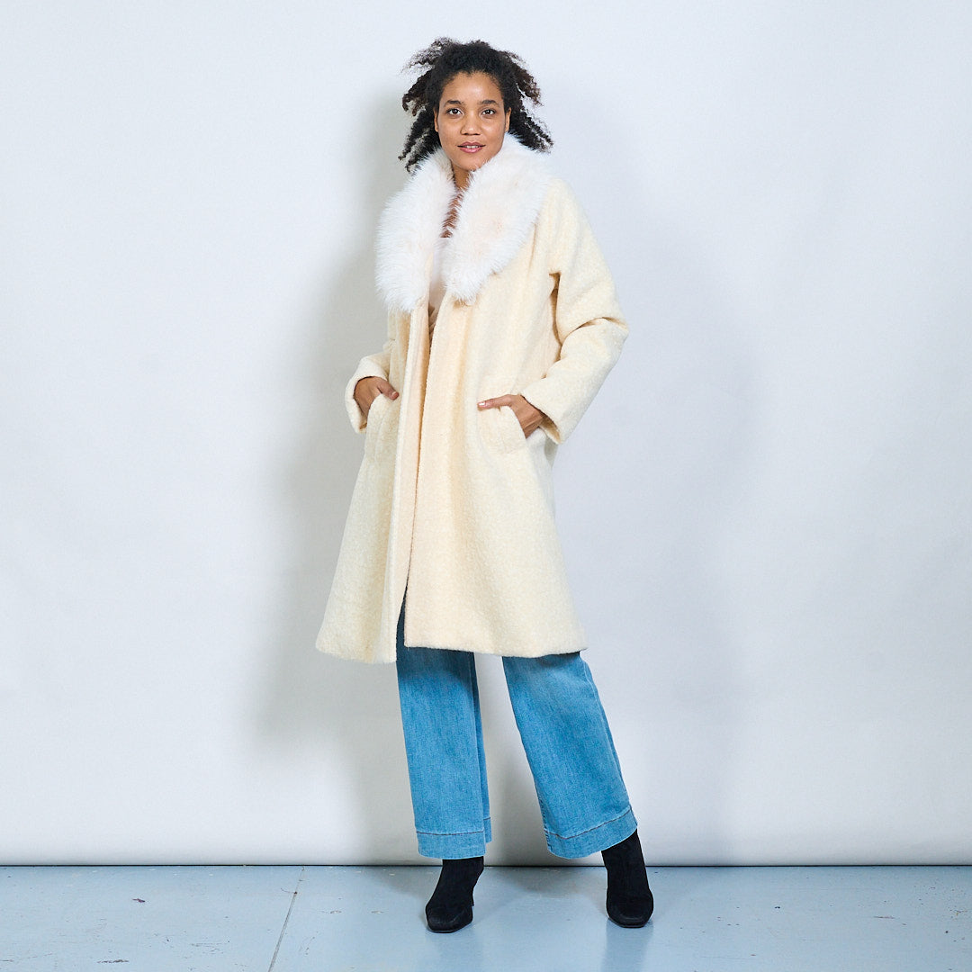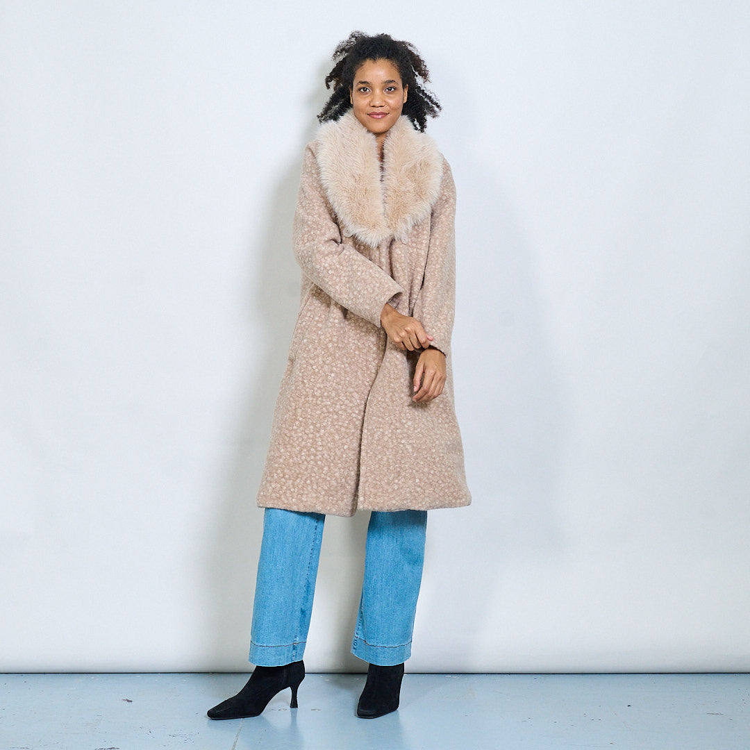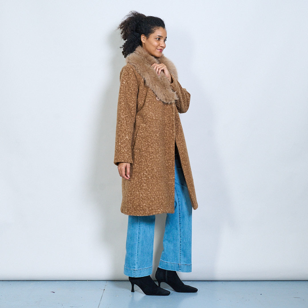 - Широка яка на шал в текстурирана плетена за уютен вид