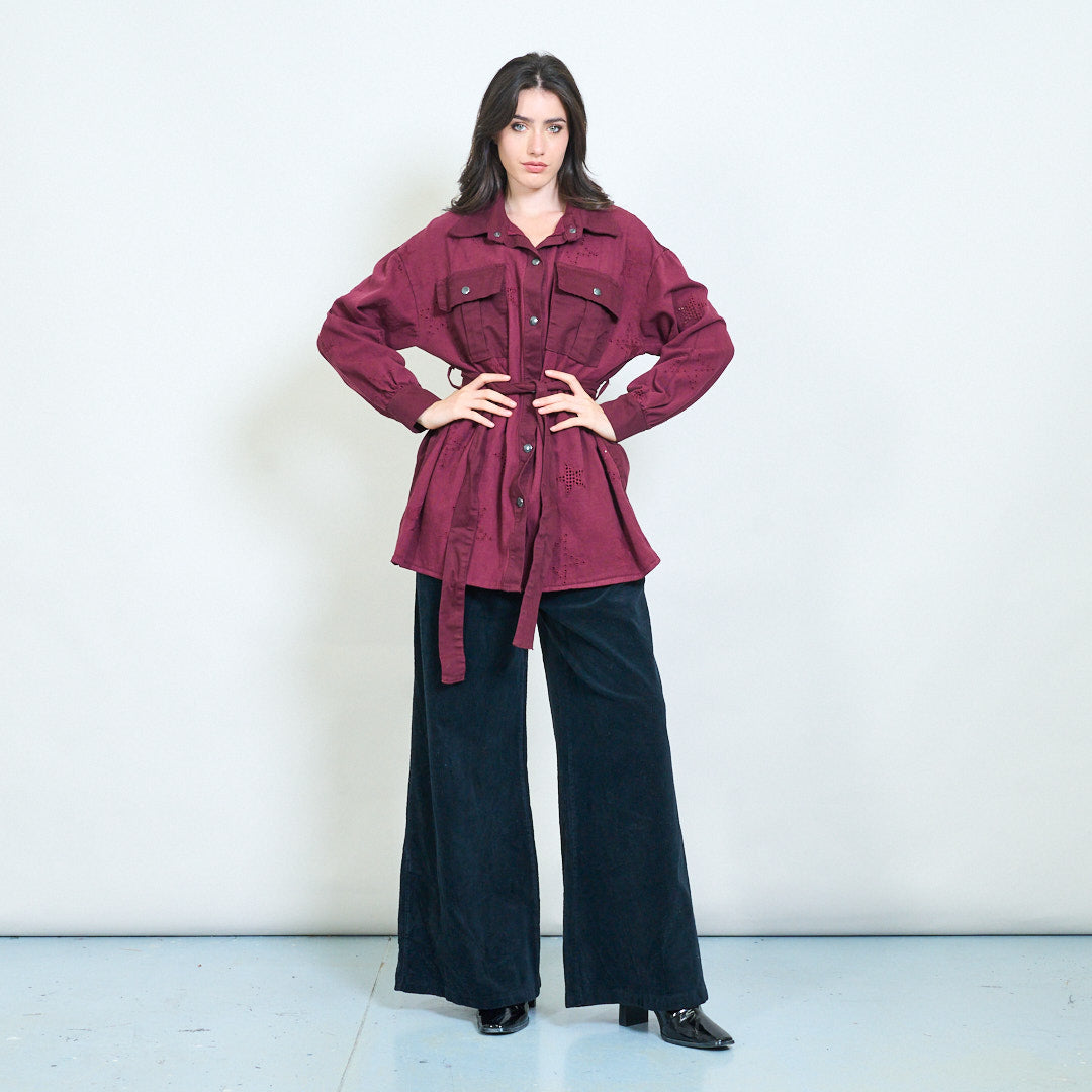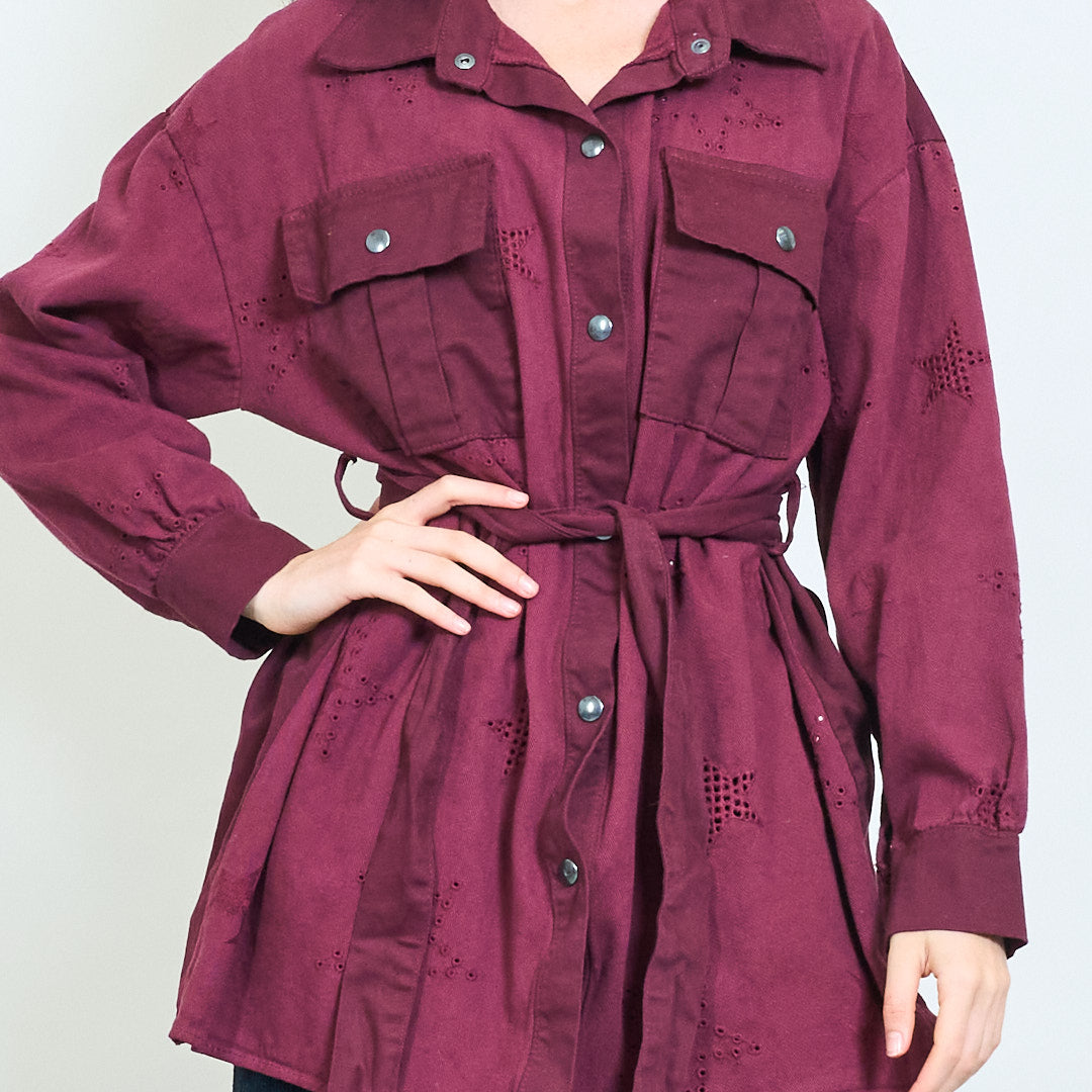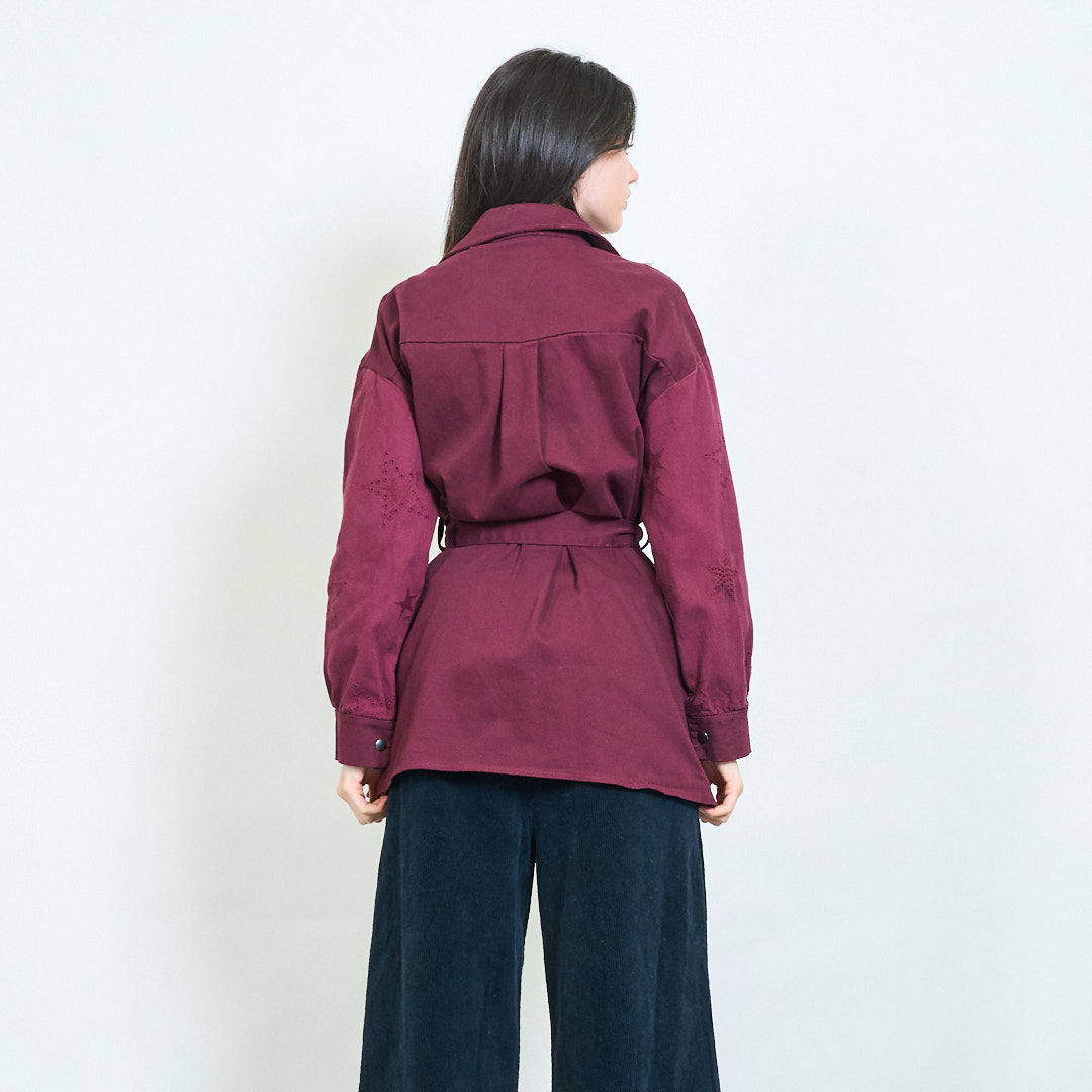 - Помощно яке, вдъхновено от риза с копче предно затваряне