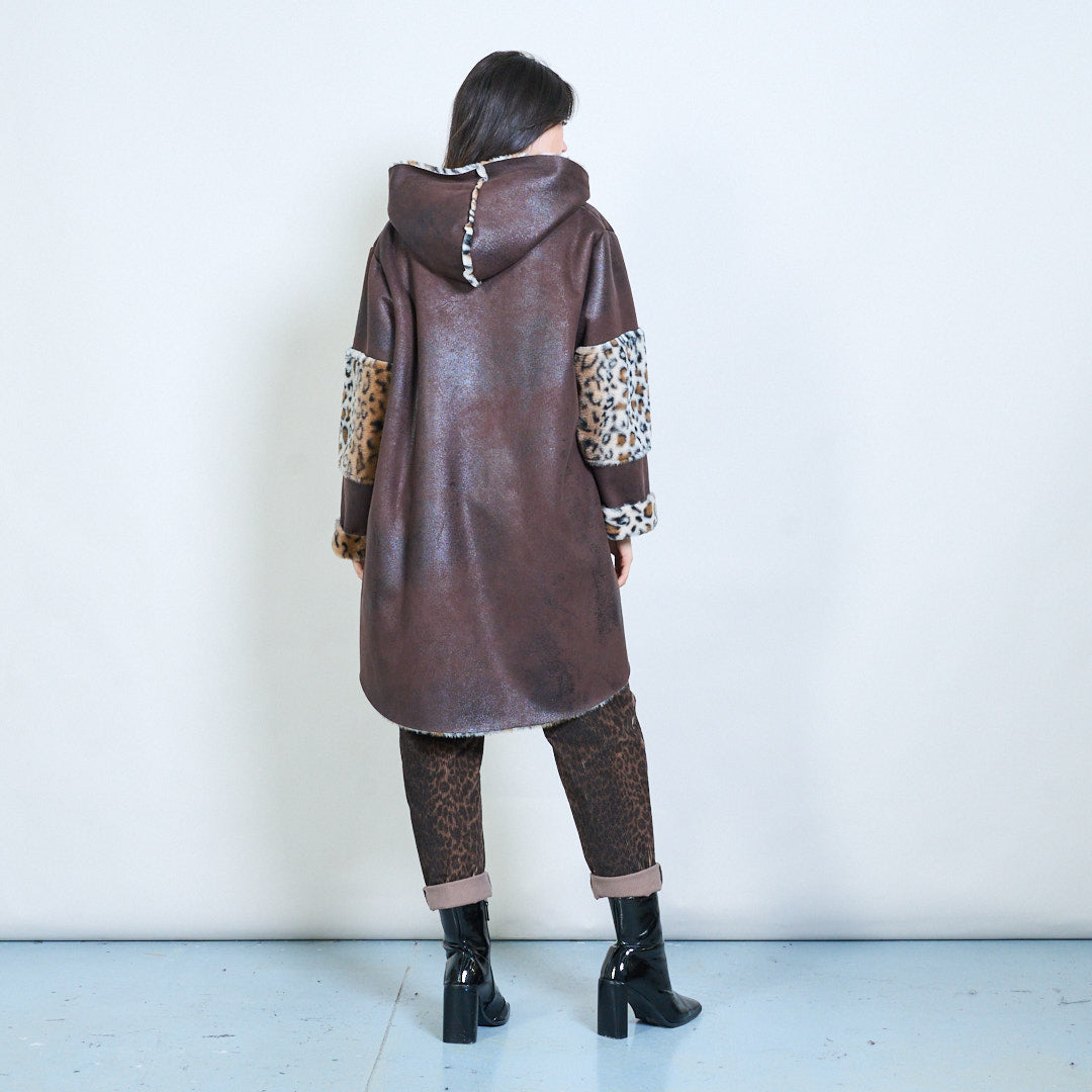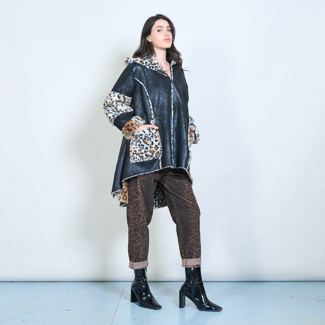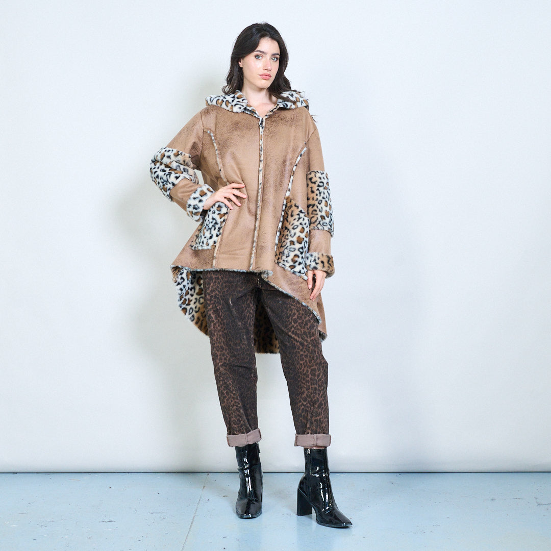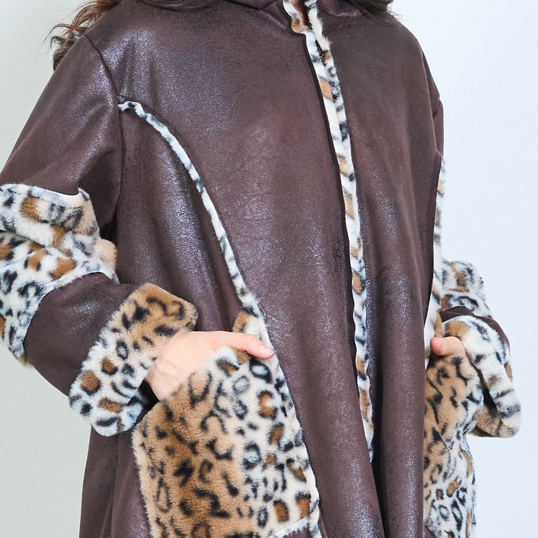 - Дизайн с качулка с плюшена леопардова печат за смел стайлинг