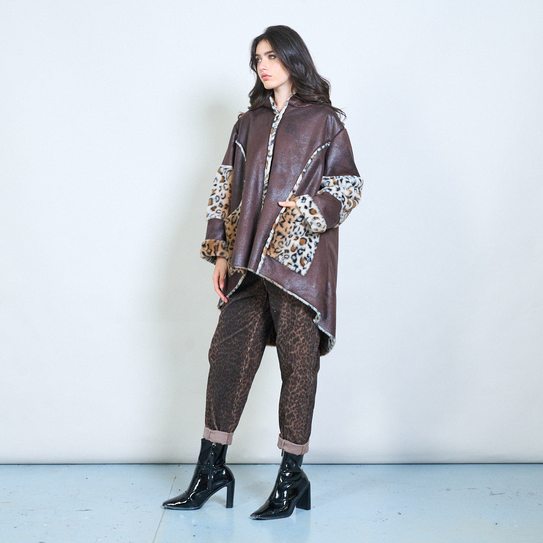 - Валцувани маншети и подгъване, подрязани с акценти от леопардов печат