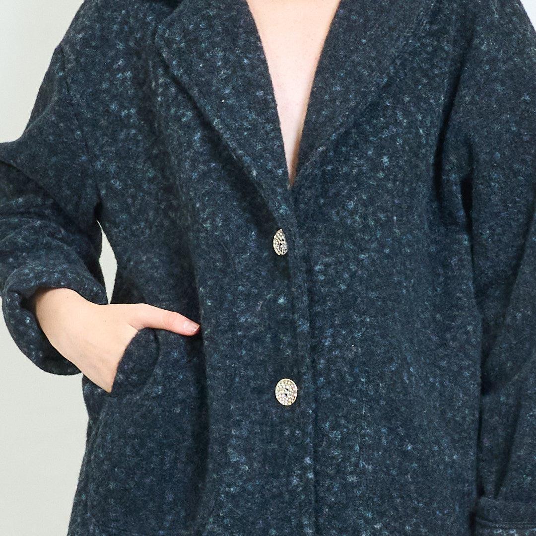 - Класически назъбен дизайн на ревера с спокойна форма на силует