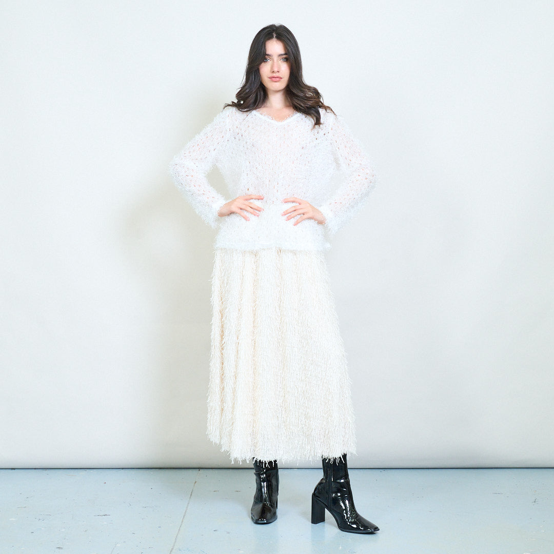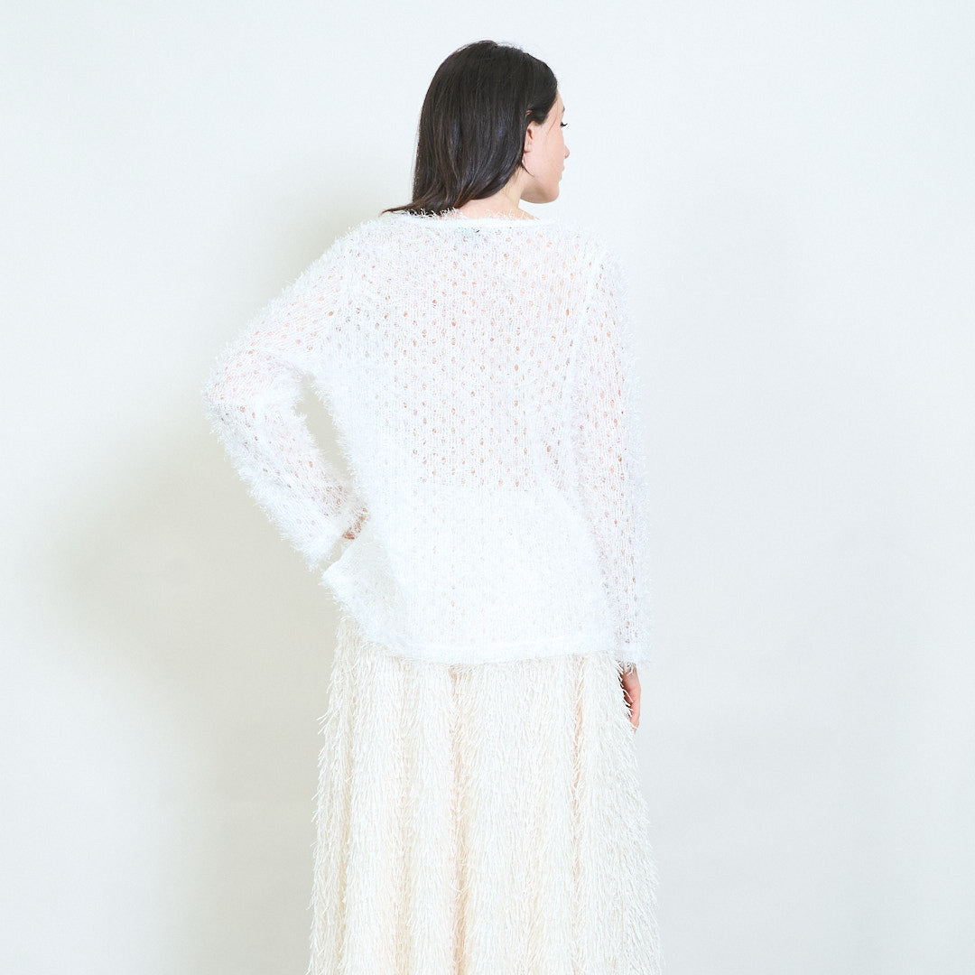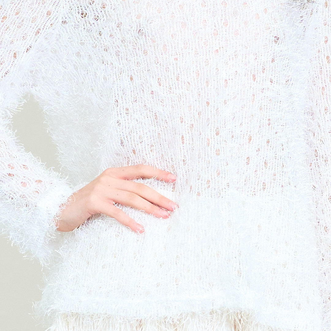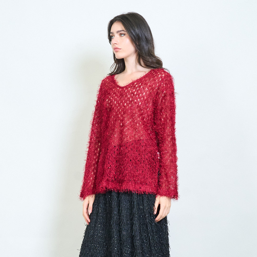 Чист текстуриран плетен с V-образно деколте с дълъг ръкав топ едро