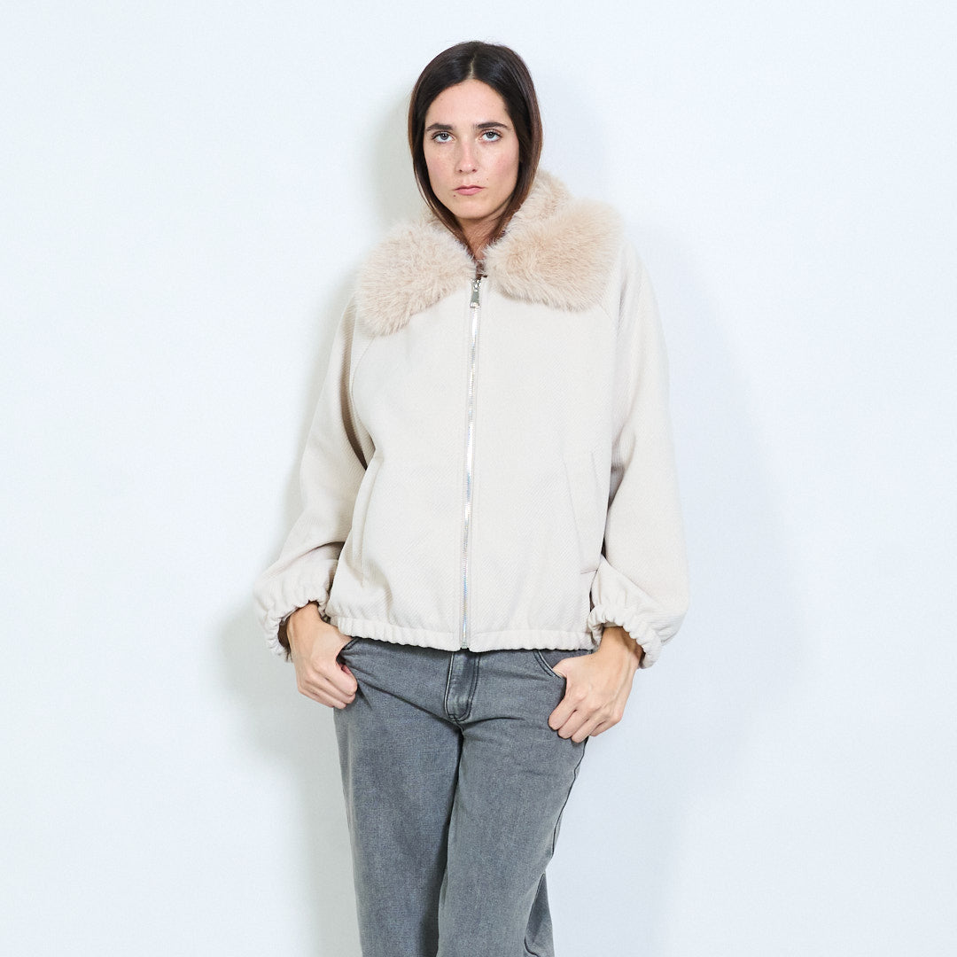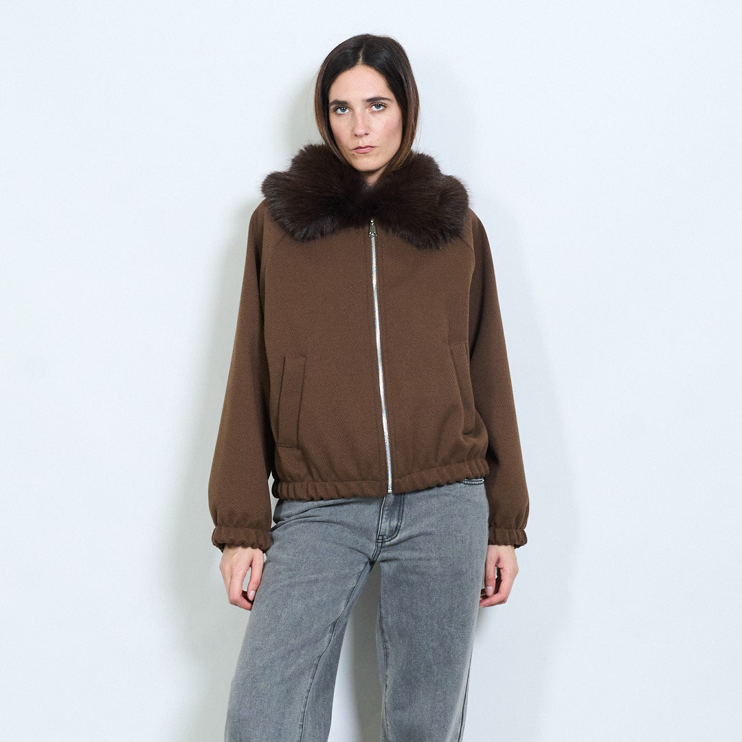 Яке с цип с изкуствена яка и еластична подгъва на едро