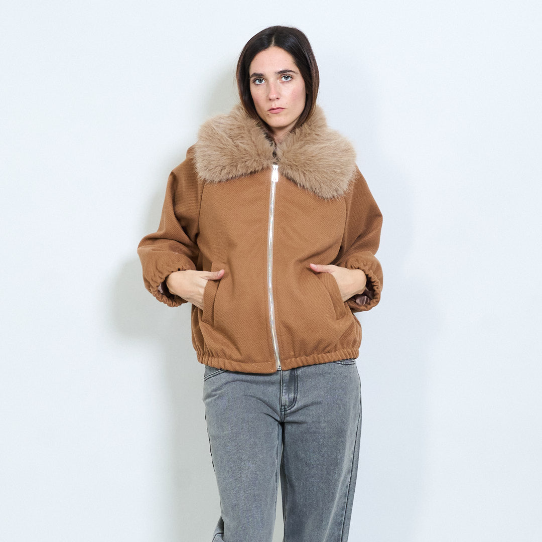 - Изключителната яка на козина добавя изискано и луксозно завършващо докосване