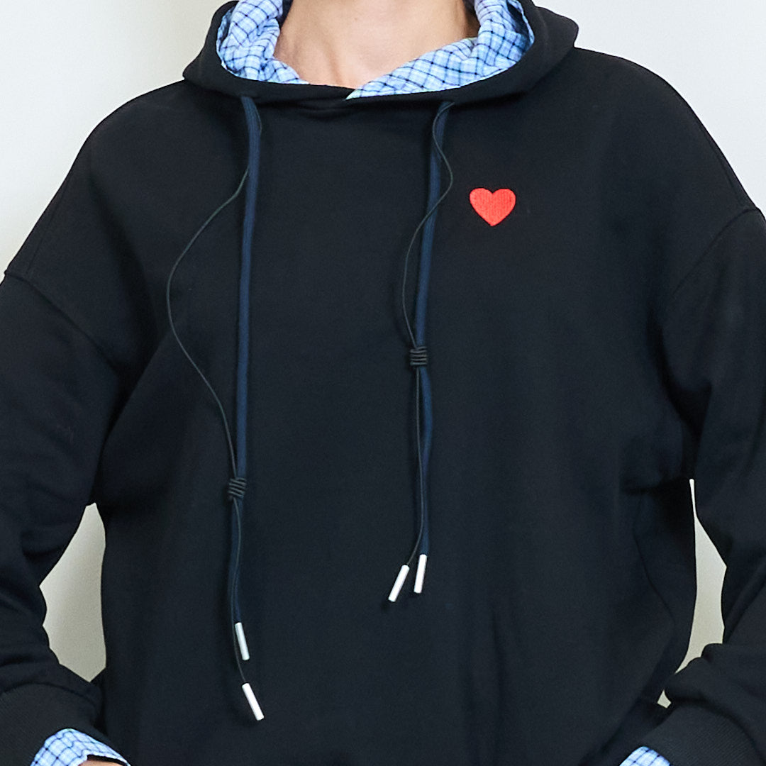 - Спокойна качулка с малки бродирани сърдечни детайли на гърдите