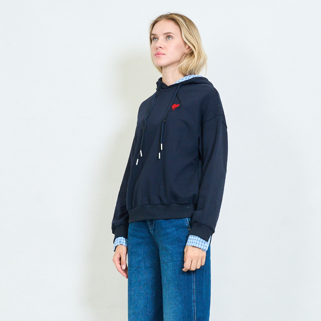 Heart Motif Hoodie с контраст Проверете детайлите на едро