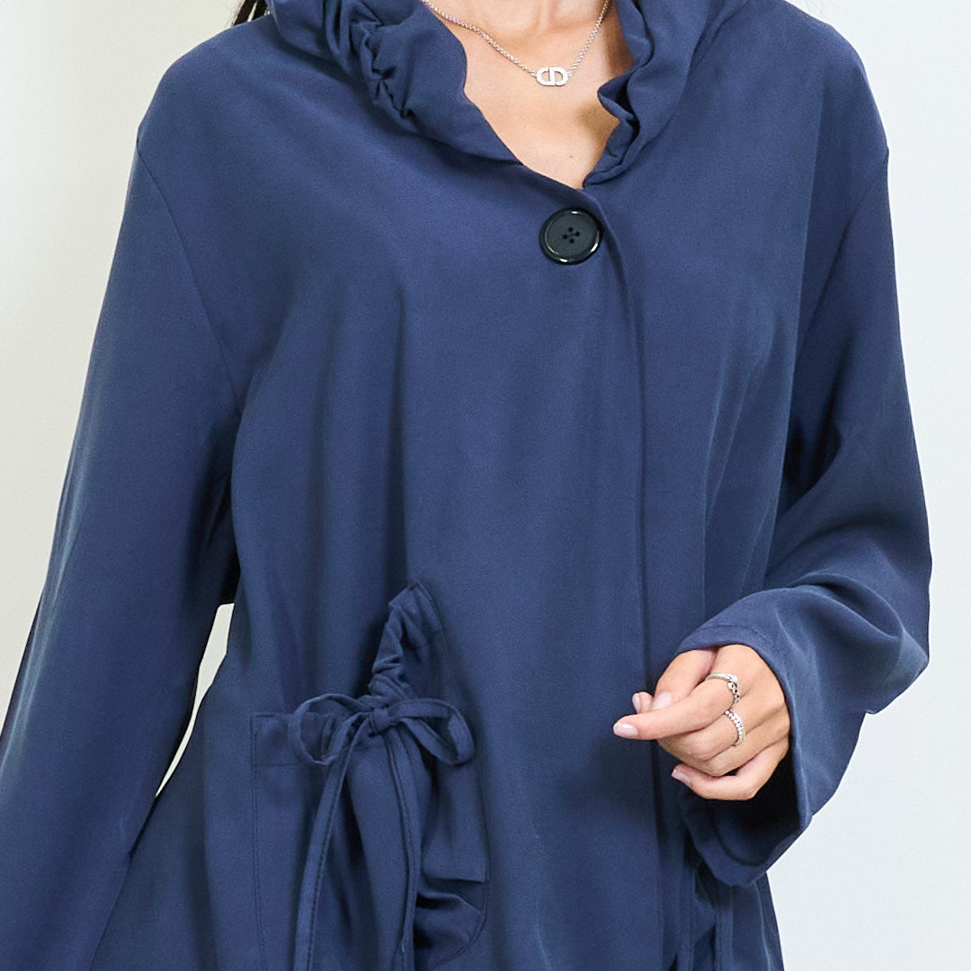 Ruffled Open-Front яке с детайли на папийките на едро