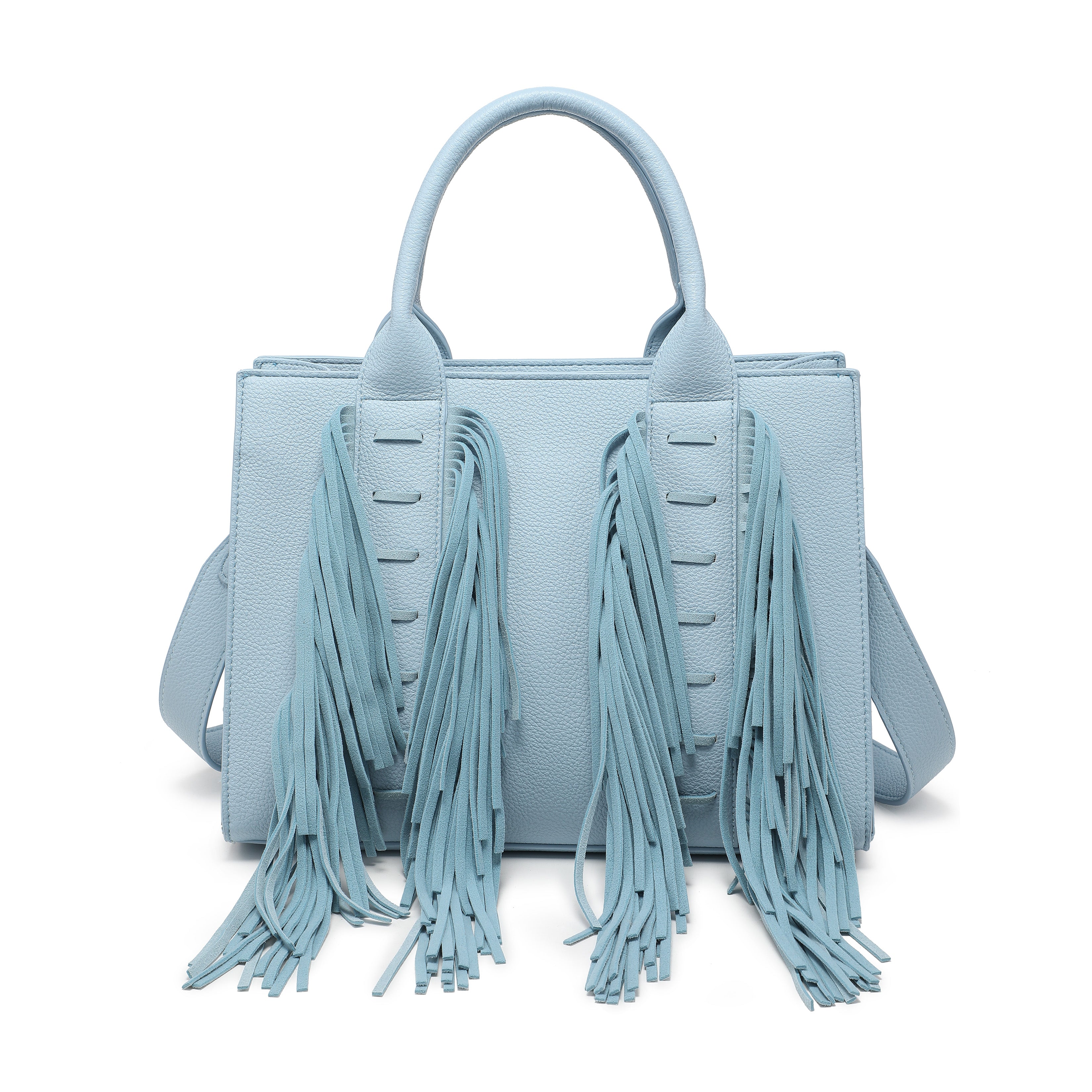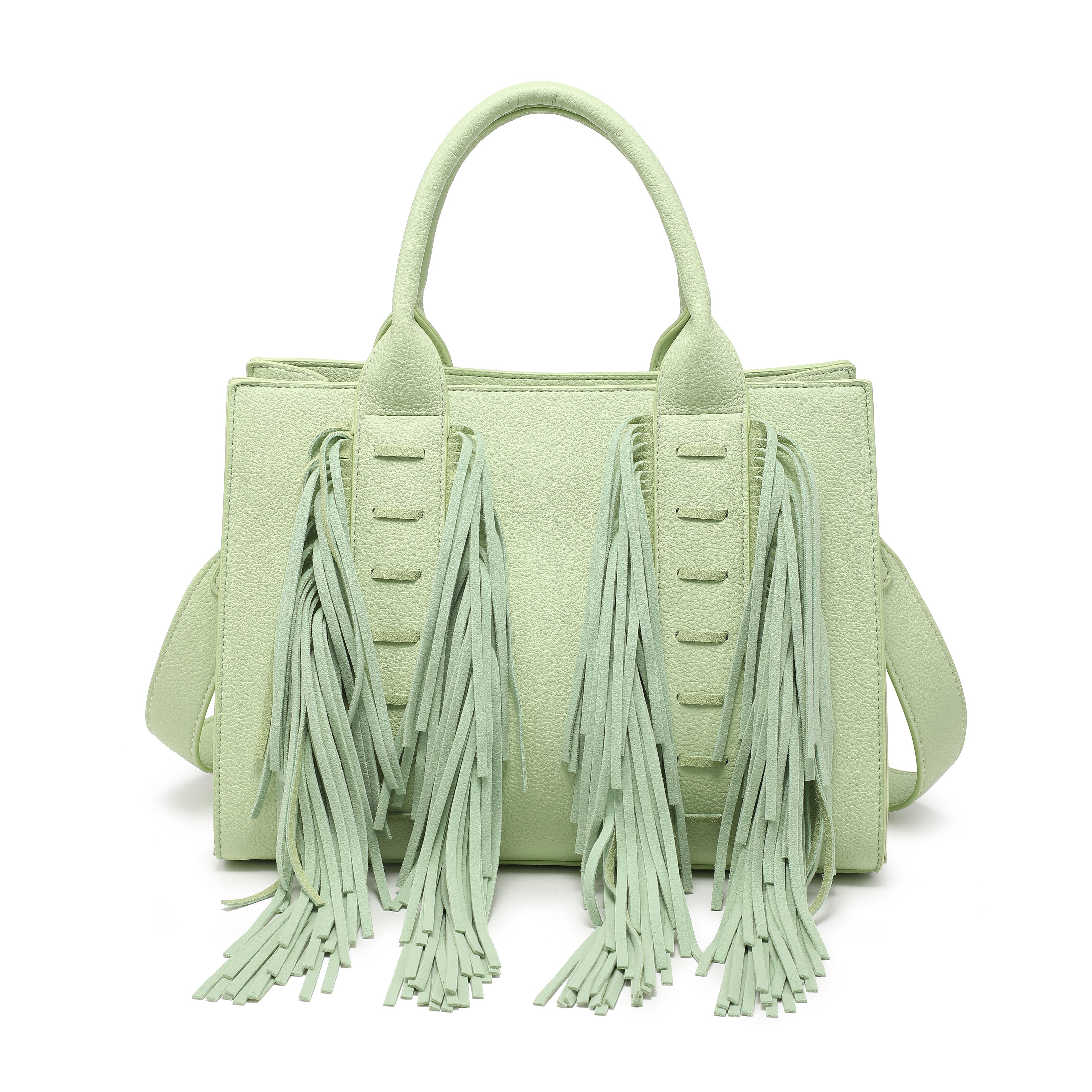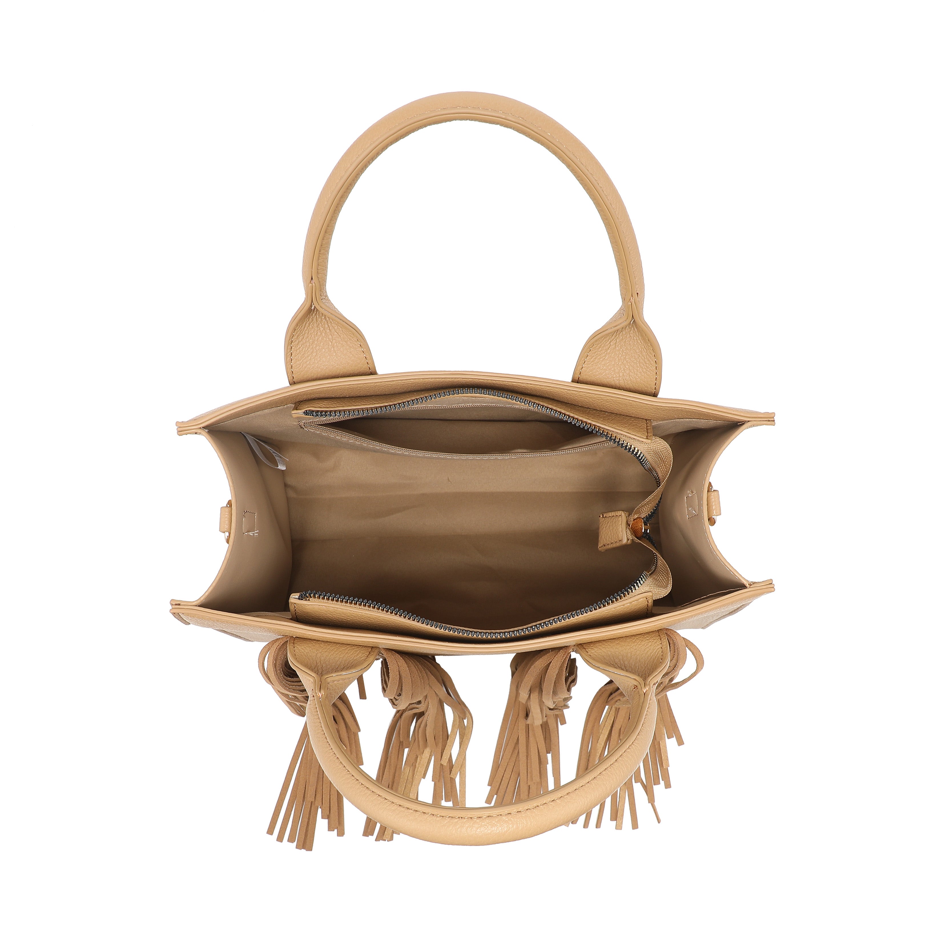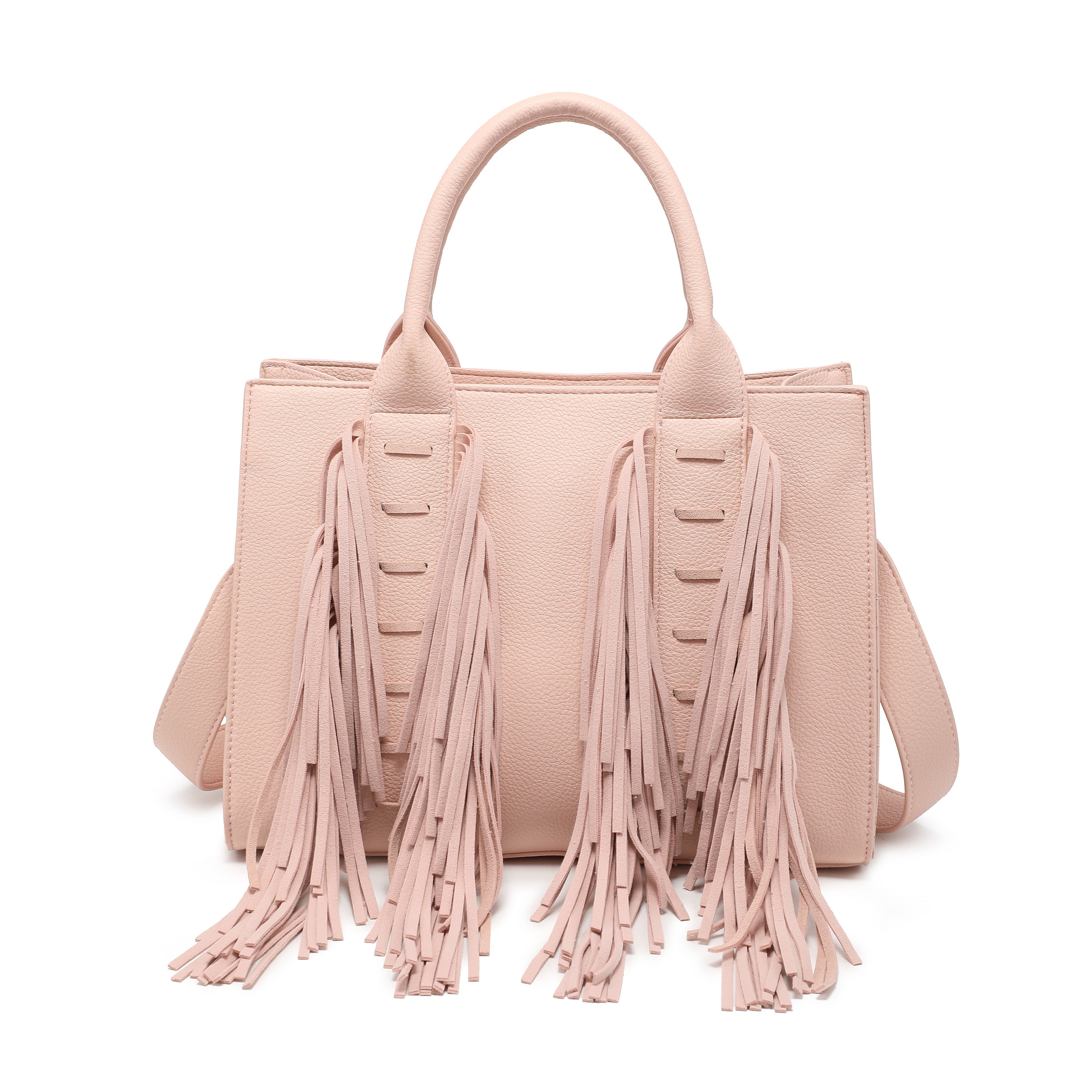 Fringe detail structured tote handbag with top handles and shoulder strap wholesale