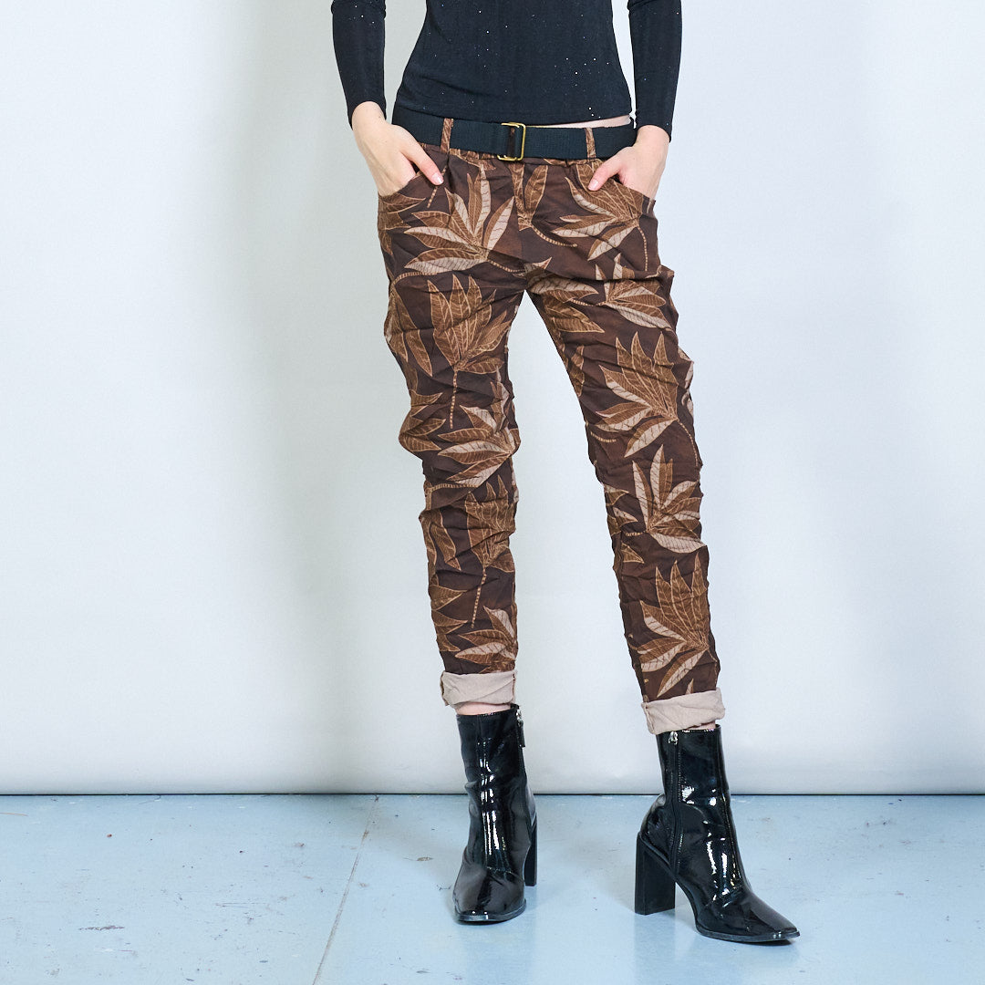 - Rolled ankle cuffs give a relaxed and versatile finish