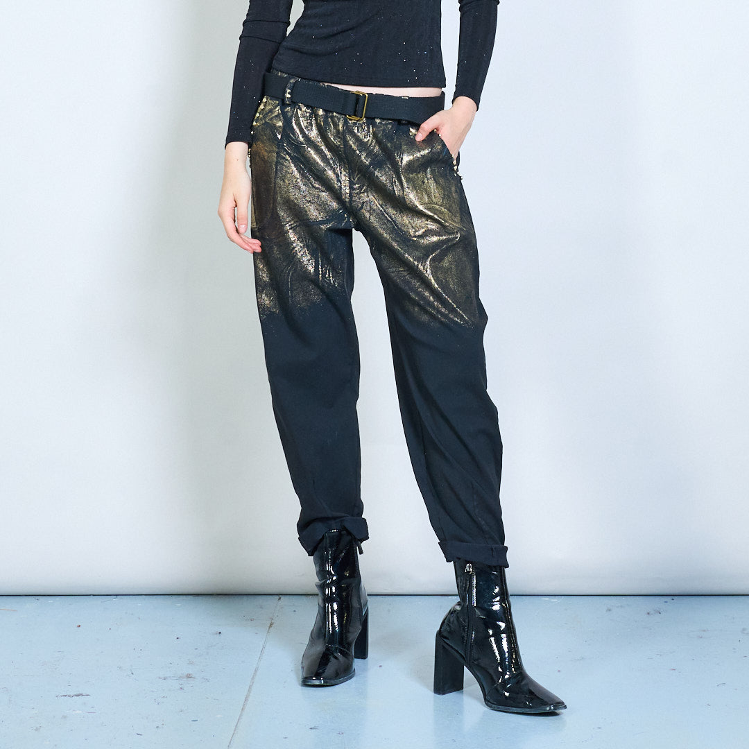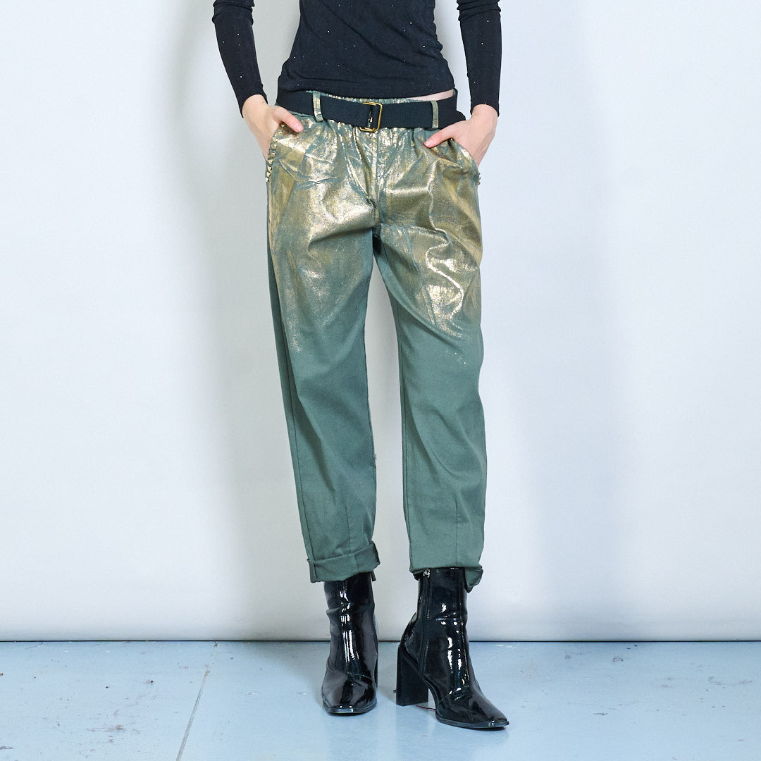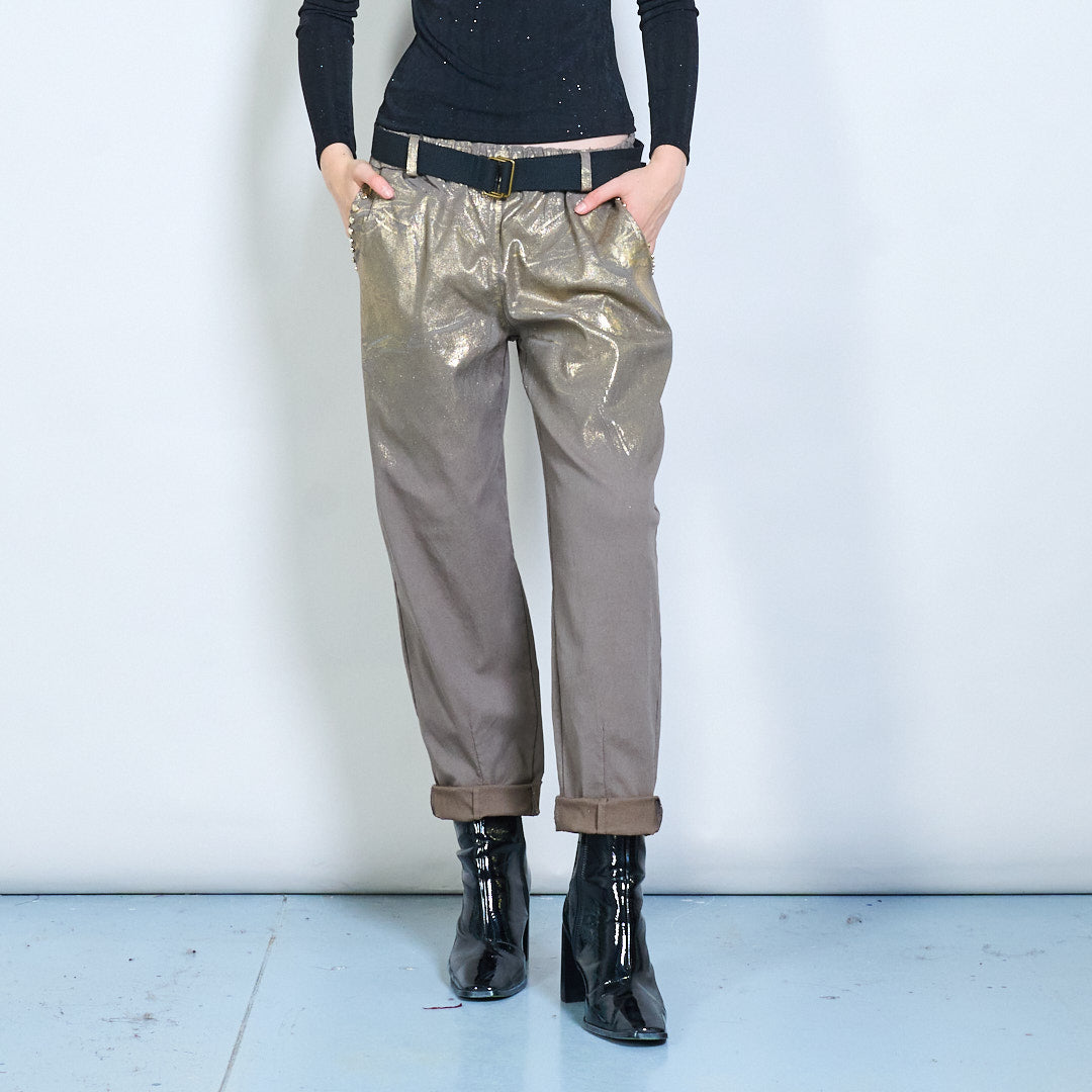 Metallic shimmer belted casual trousers wholesale
