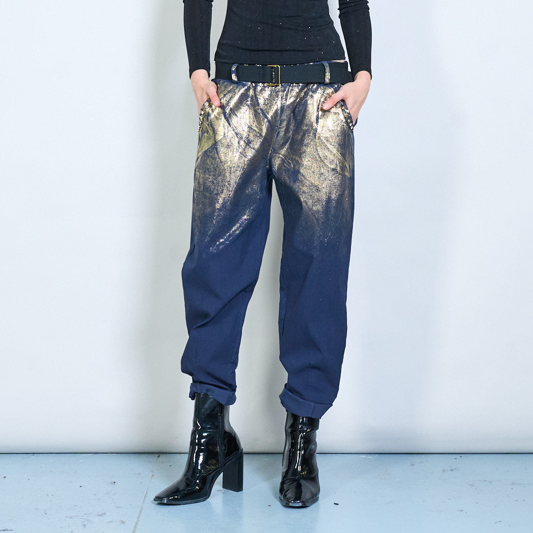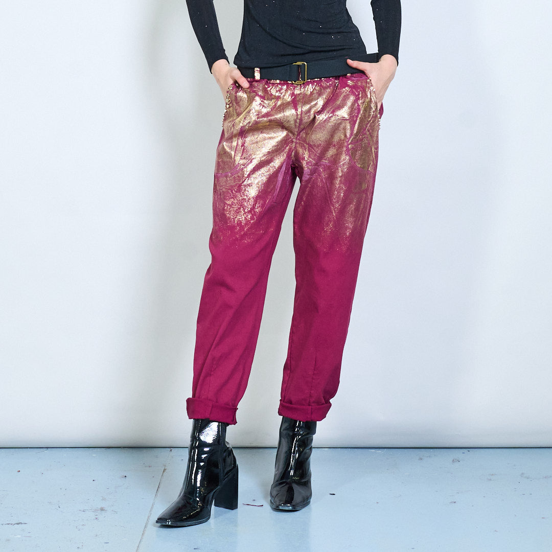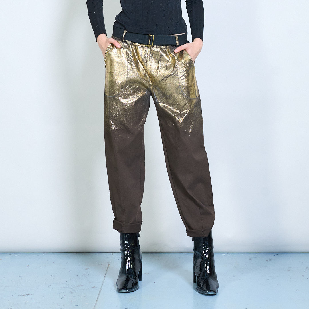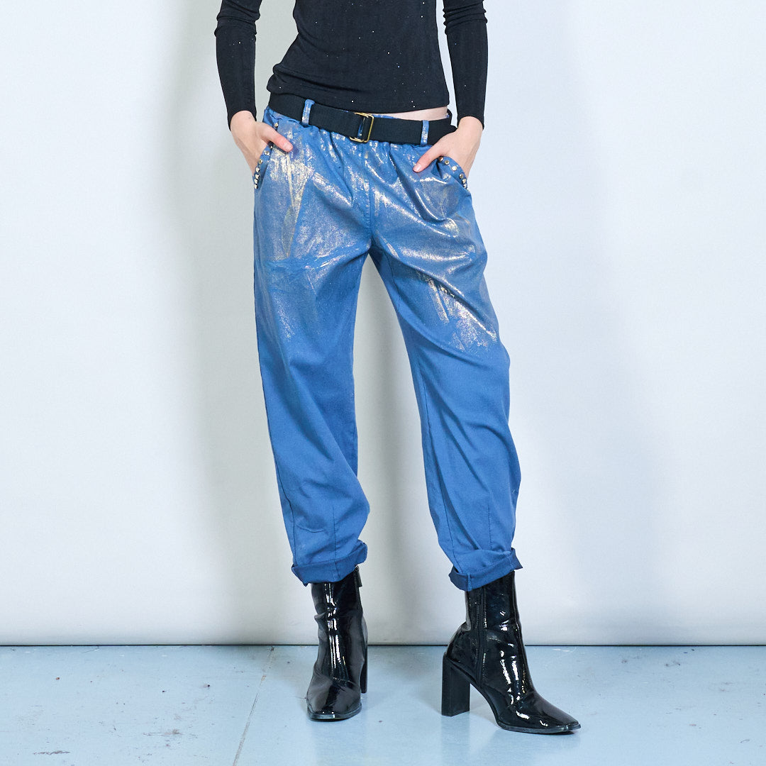 Metallic shimmer belted casual trousers wholesale