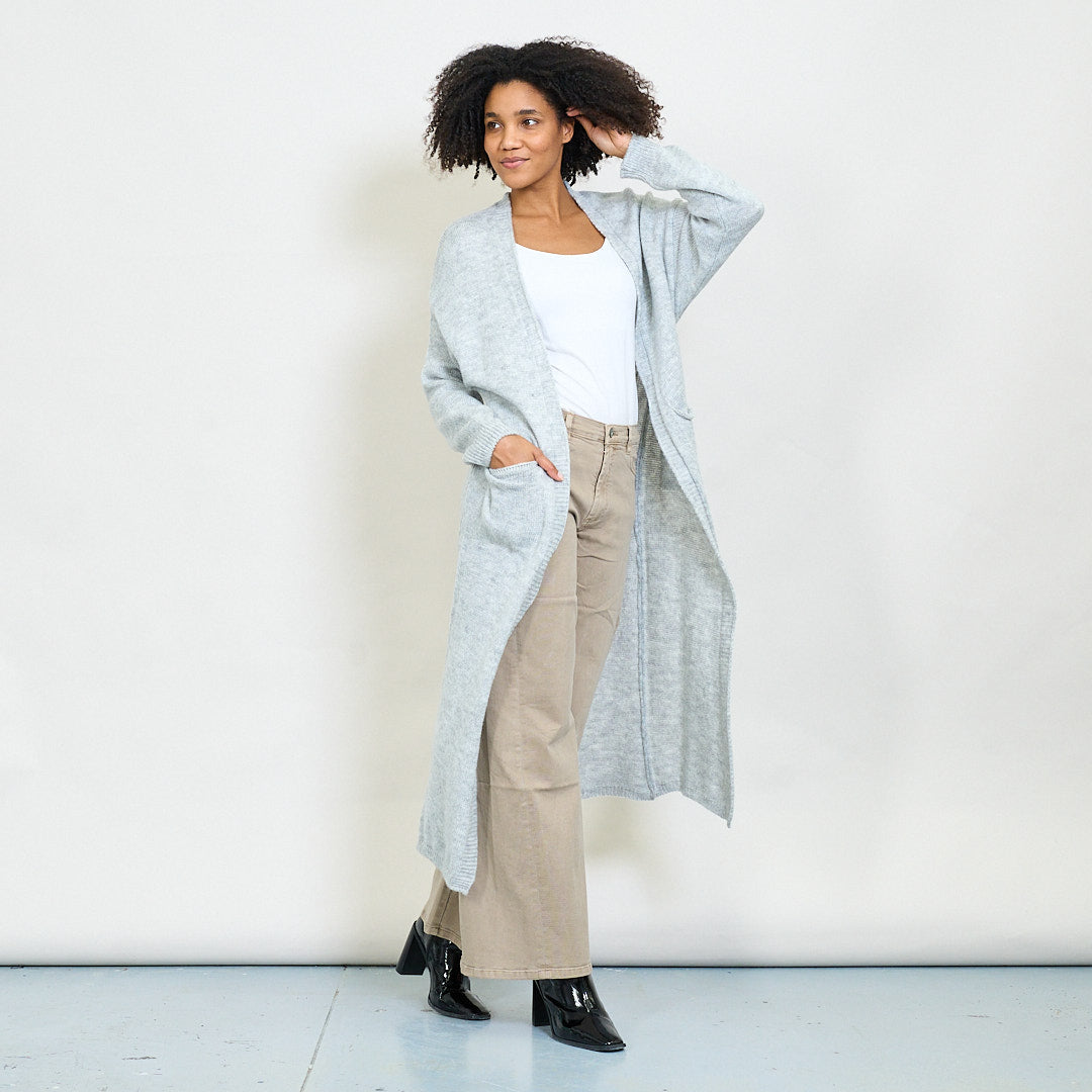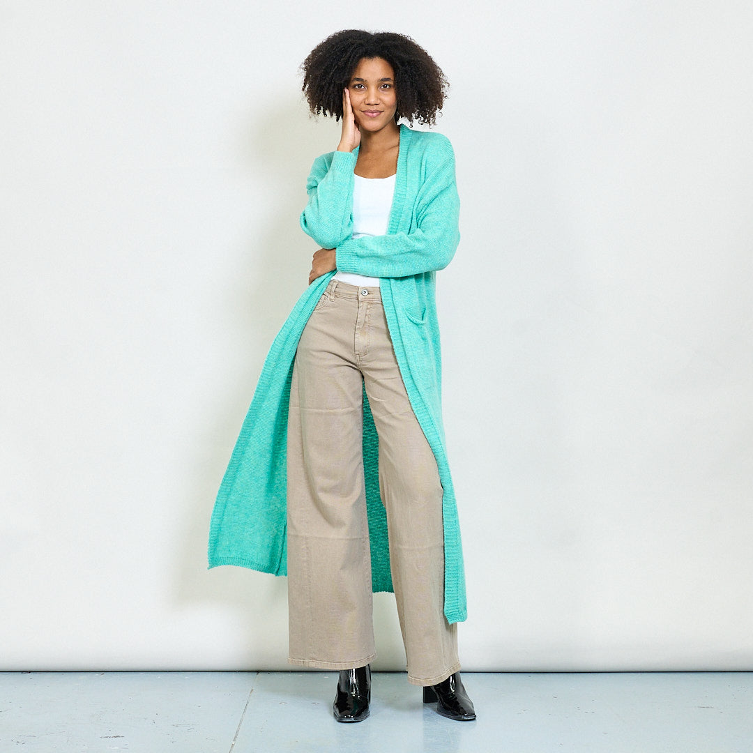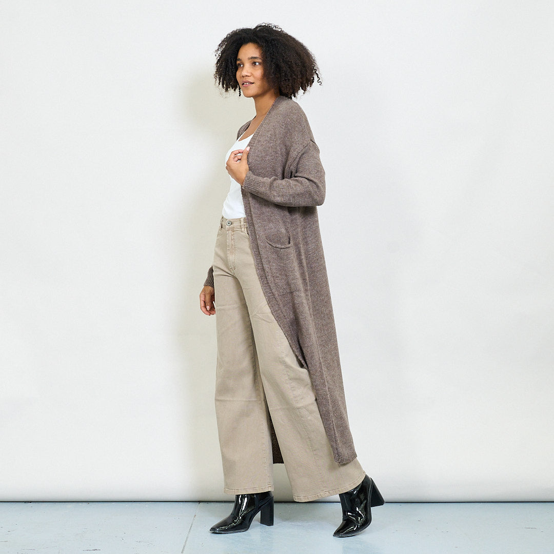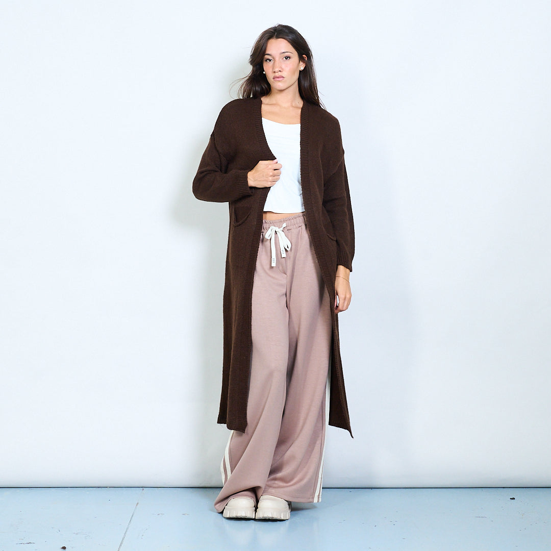 Rib trim pocketed open-front maxi cardigan wholesale