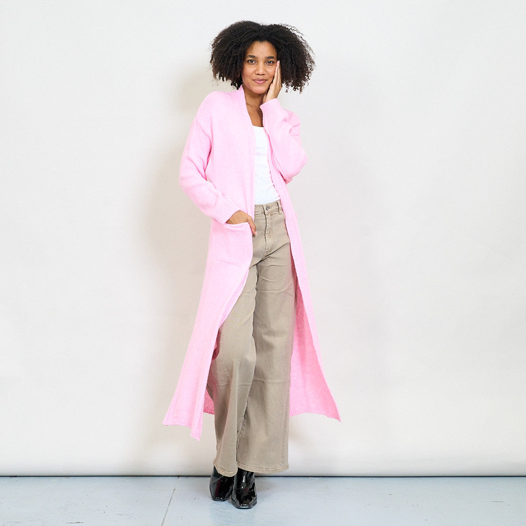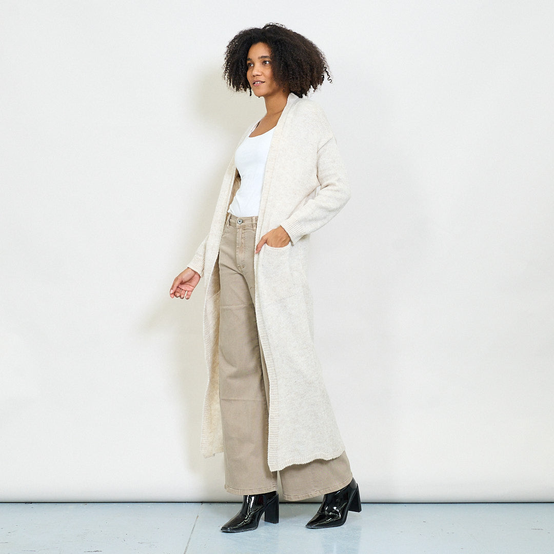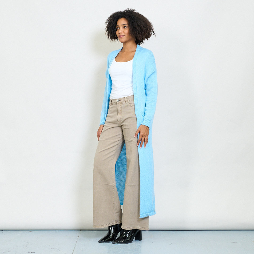 Rib trim pocketed open-front maxi cardigan wholesale