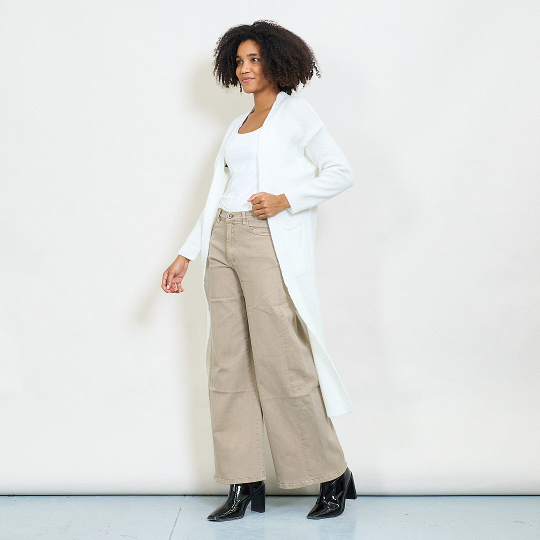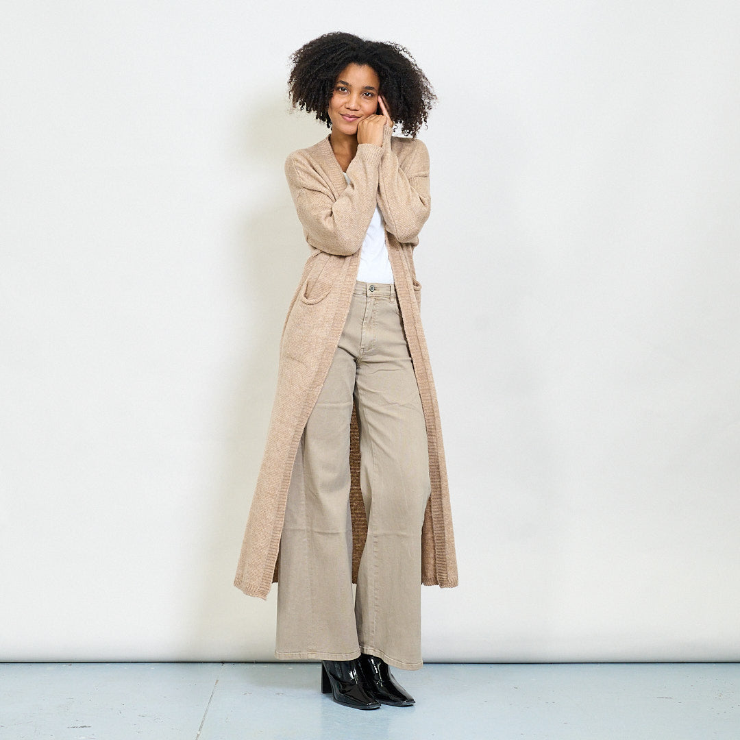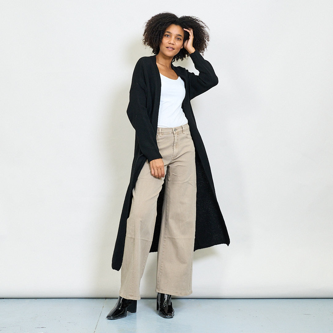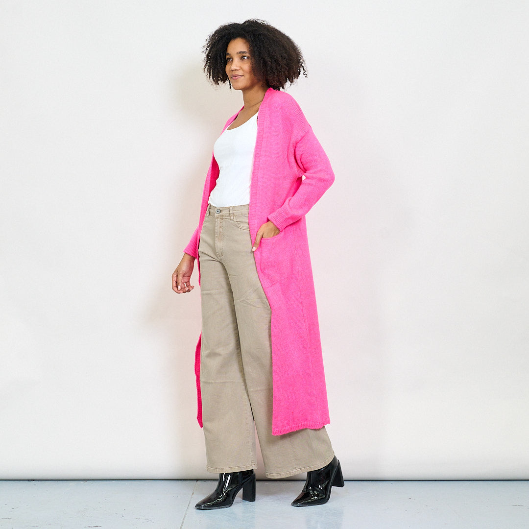 Rib trim pocketed open-front maxi cardigan wholesale