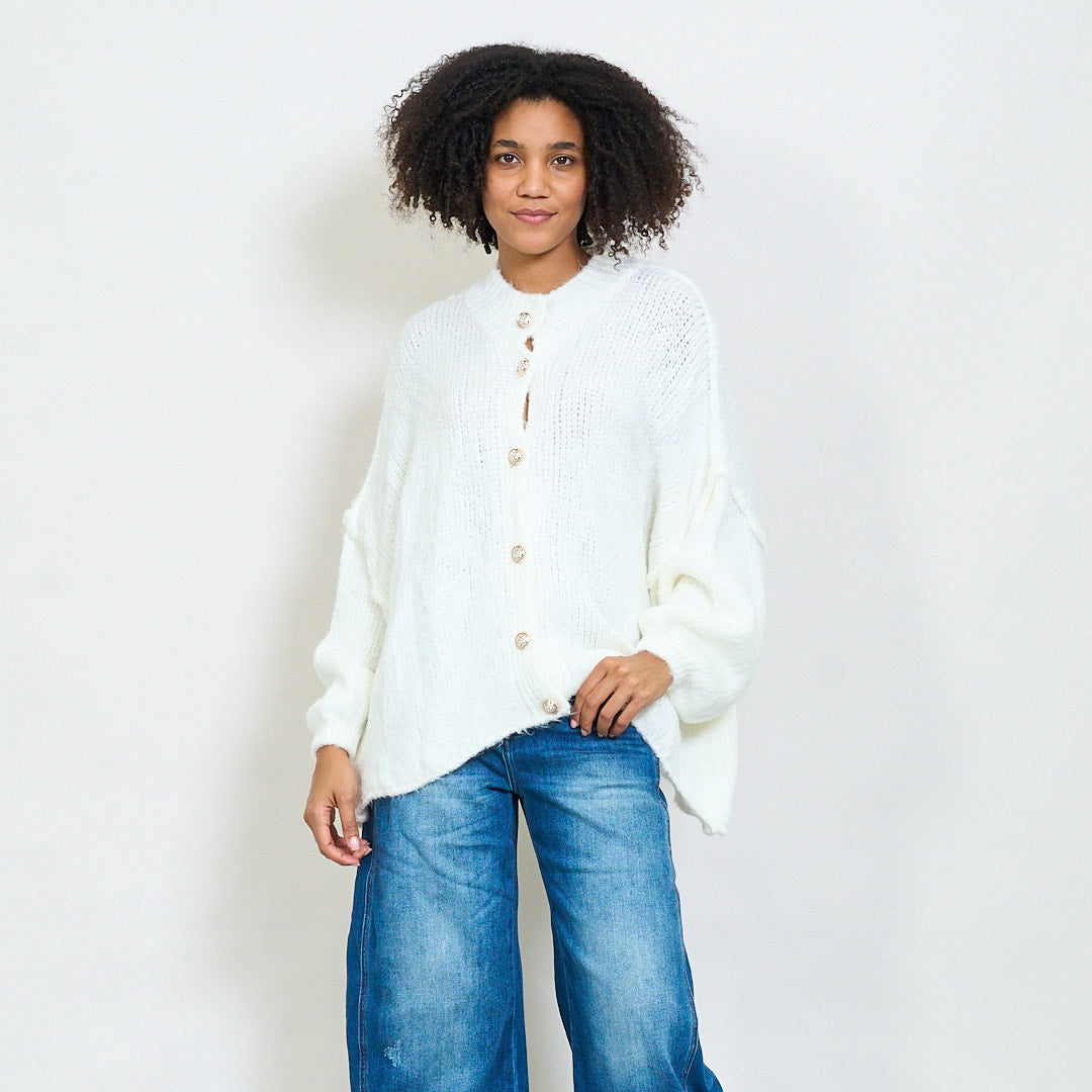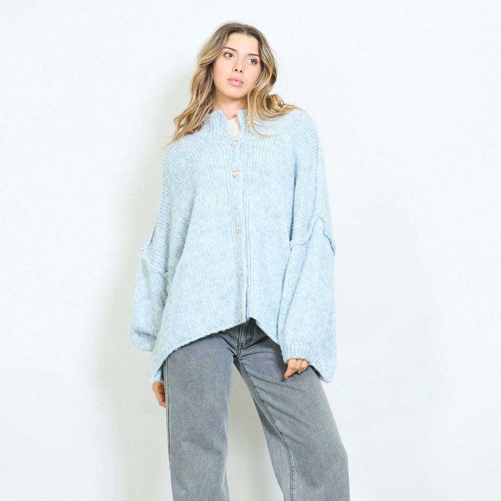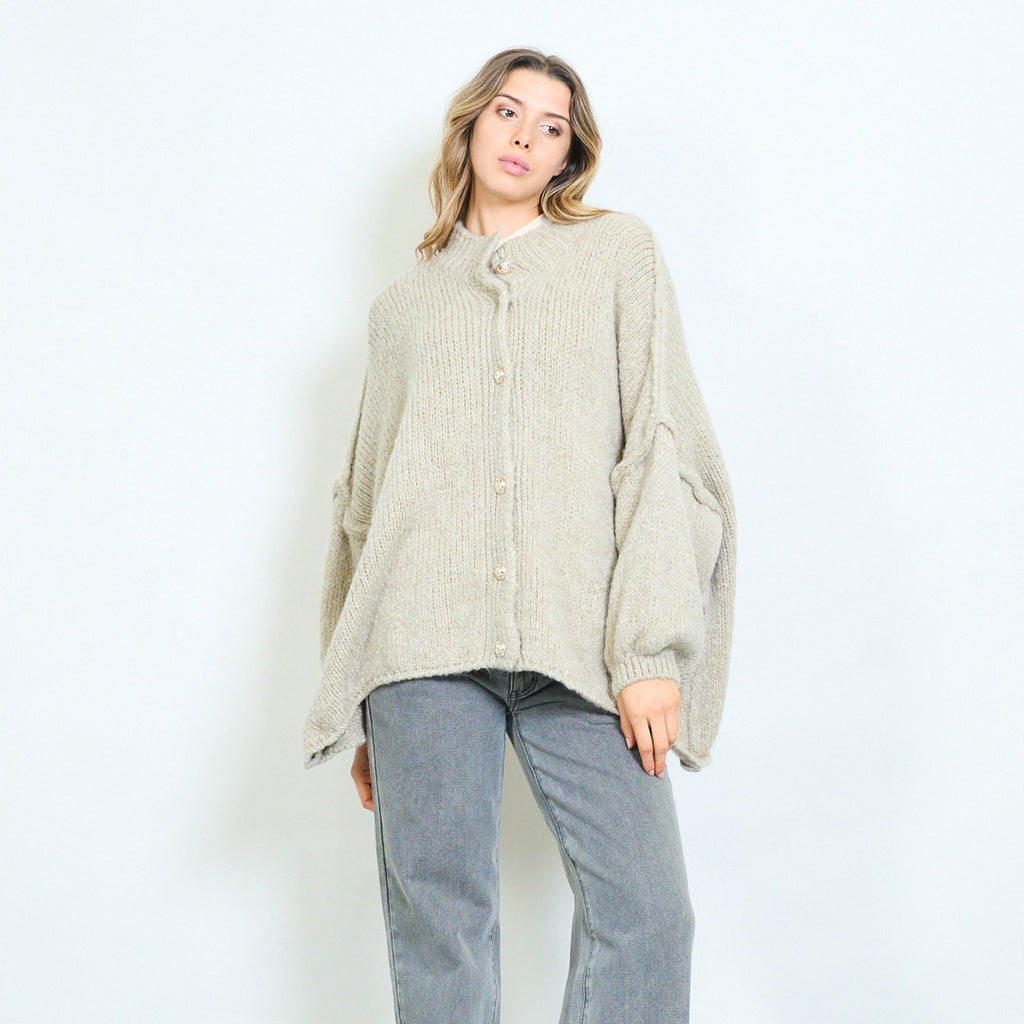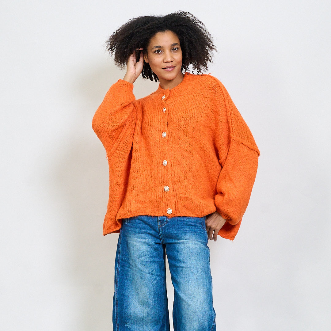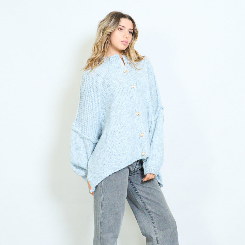 Soft brushed knit cardigan with embossed gold buttons wholesale
