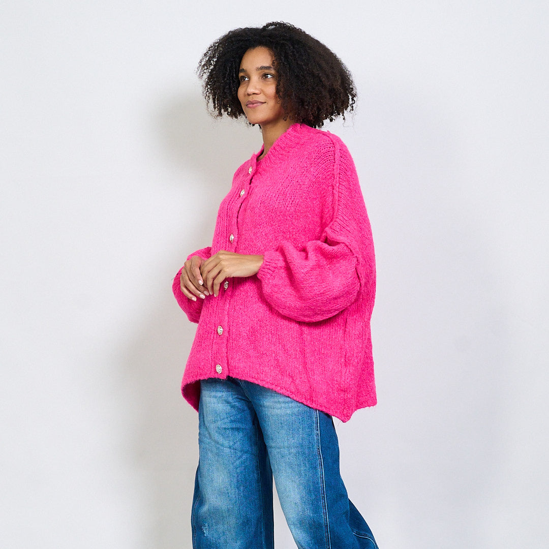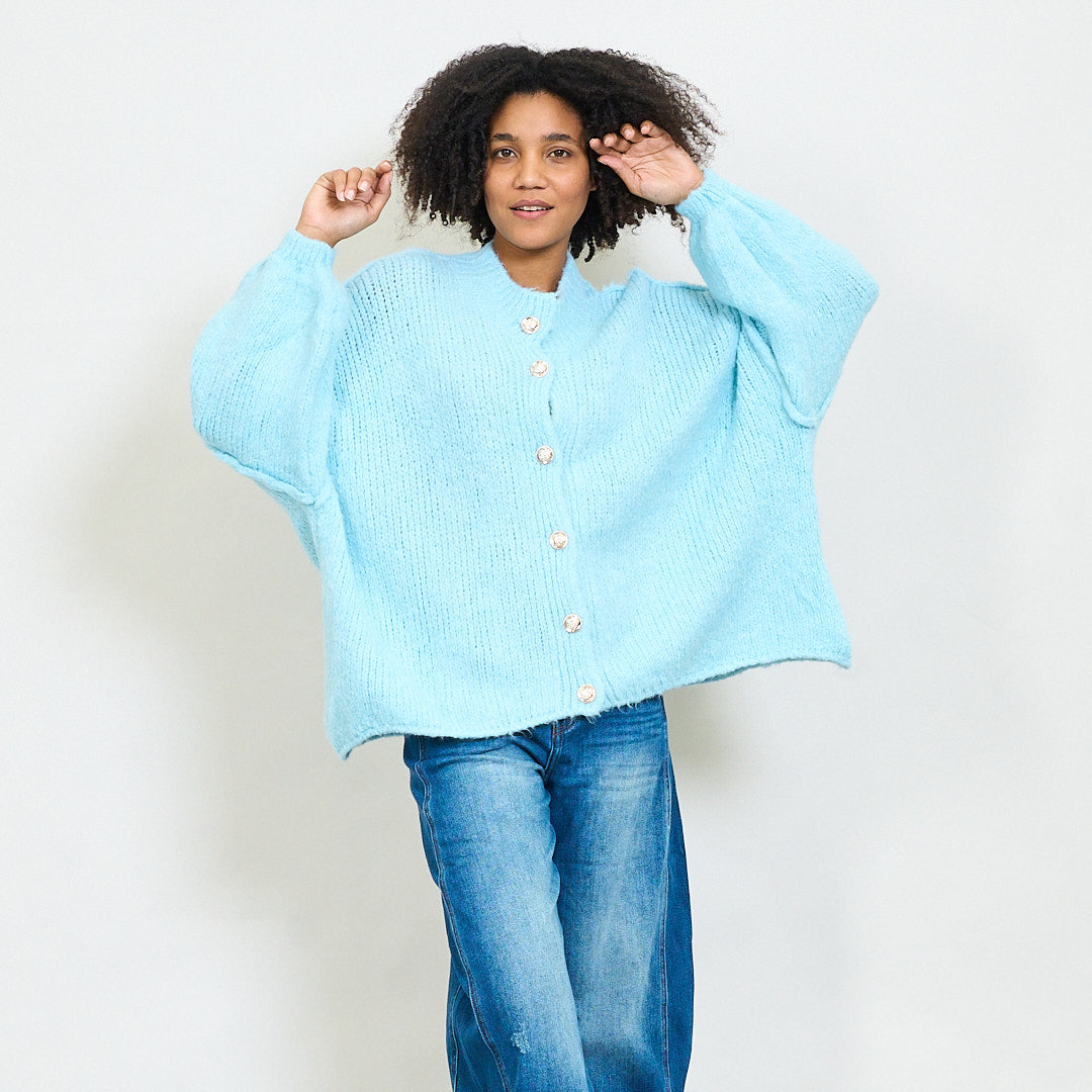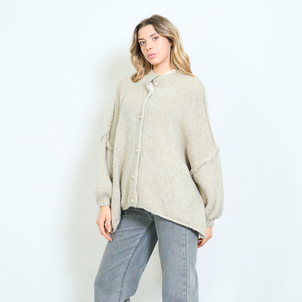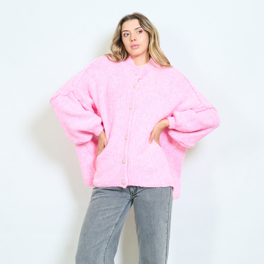 Soft brushed knit cardigan with embossed gold buttons wholesale