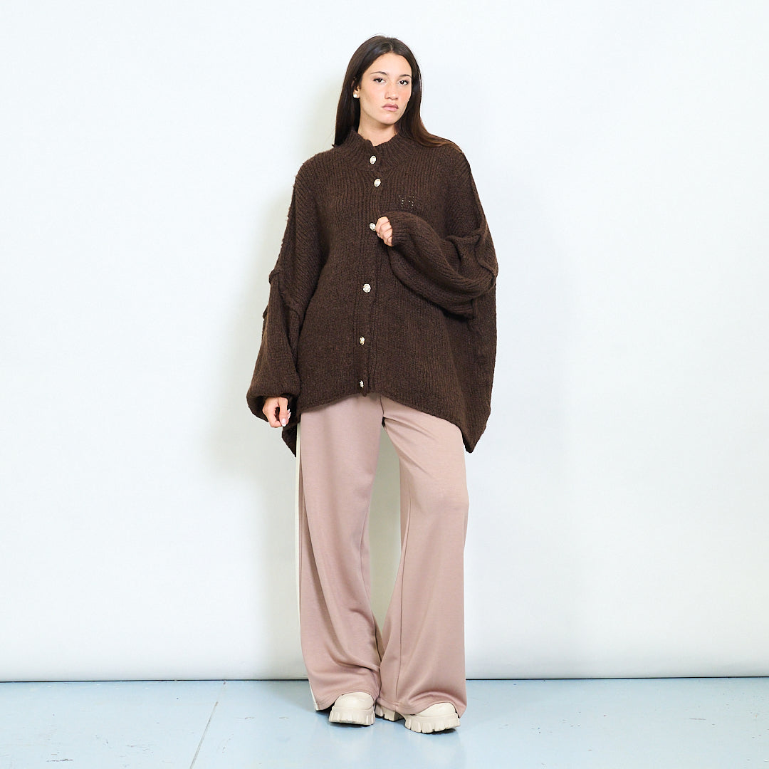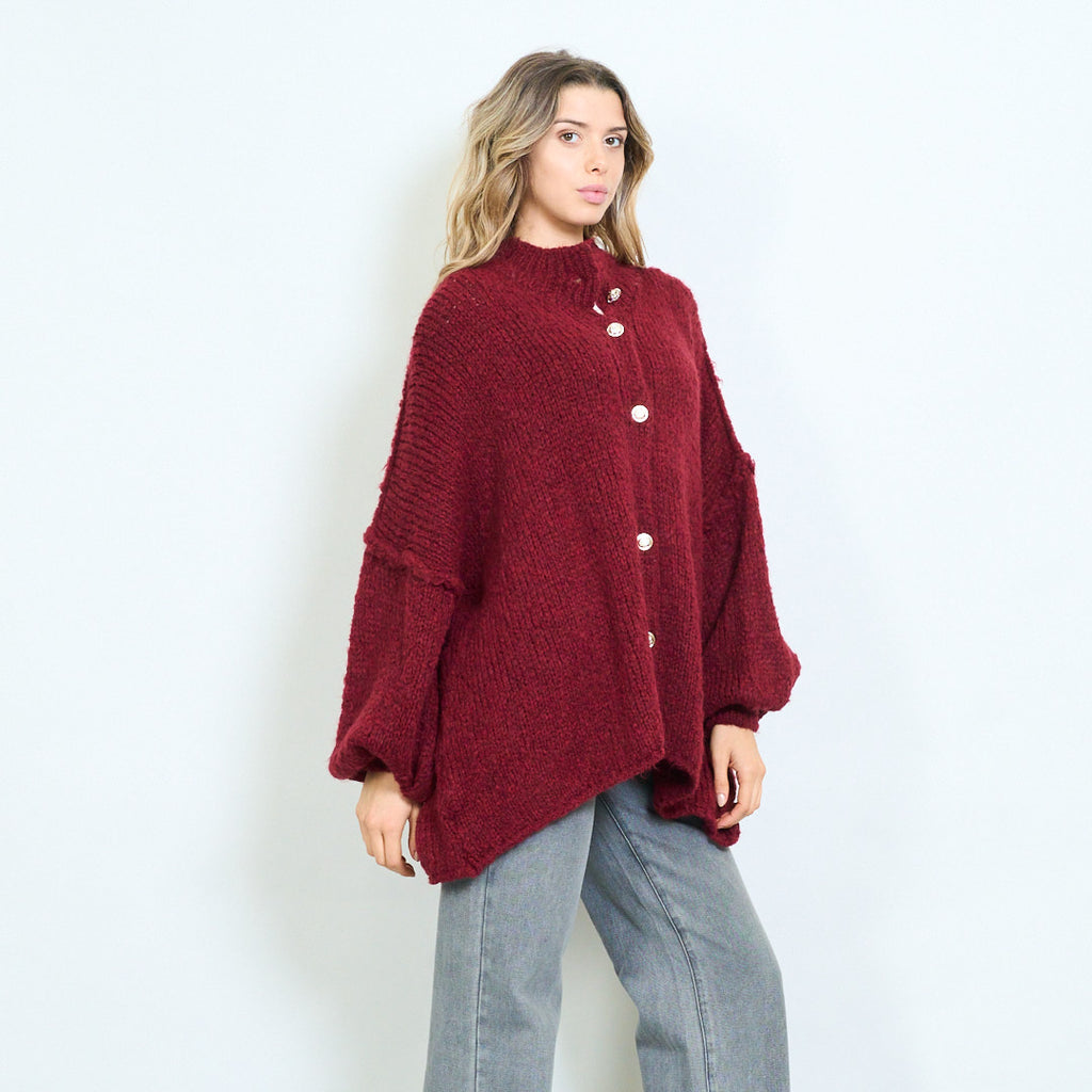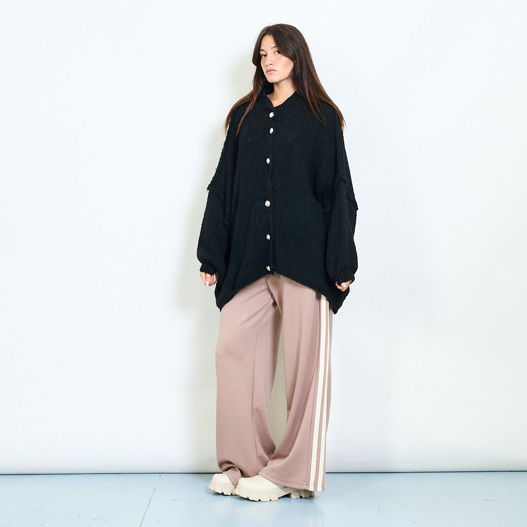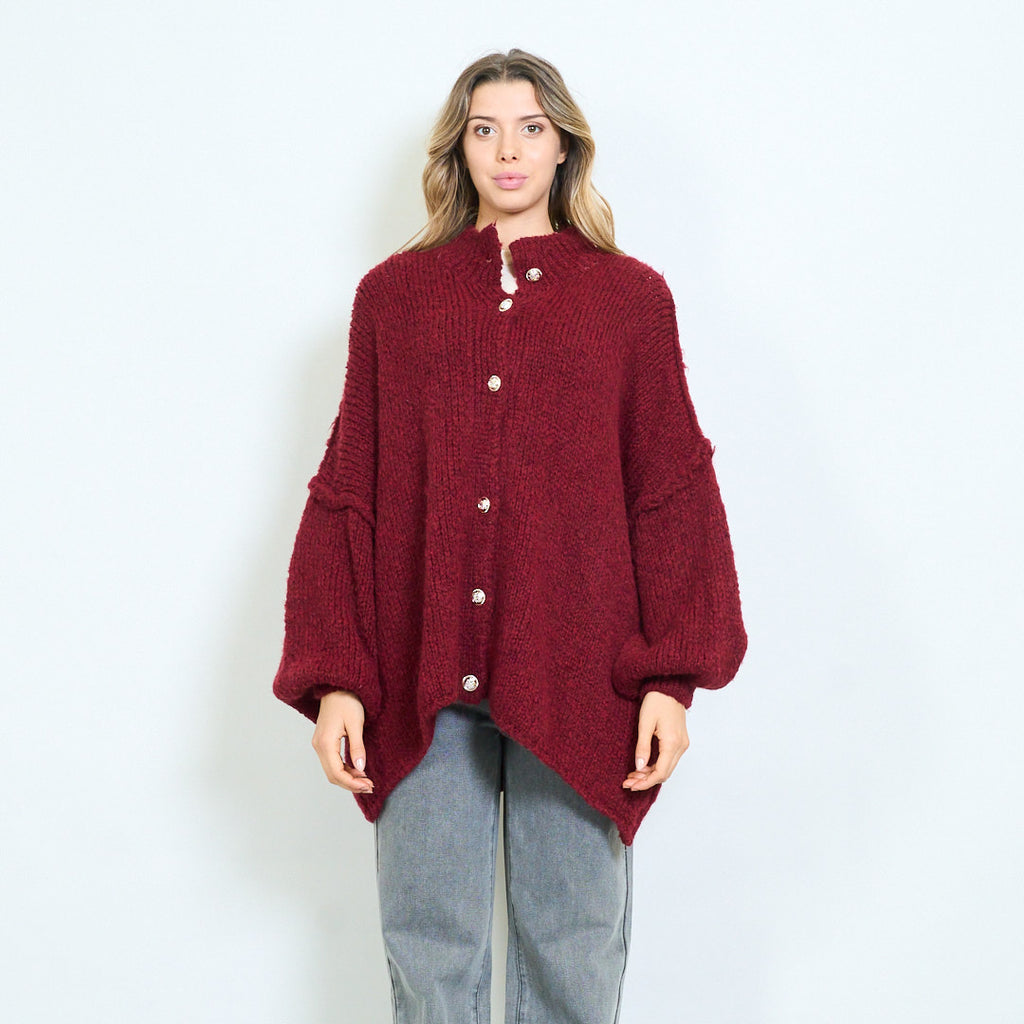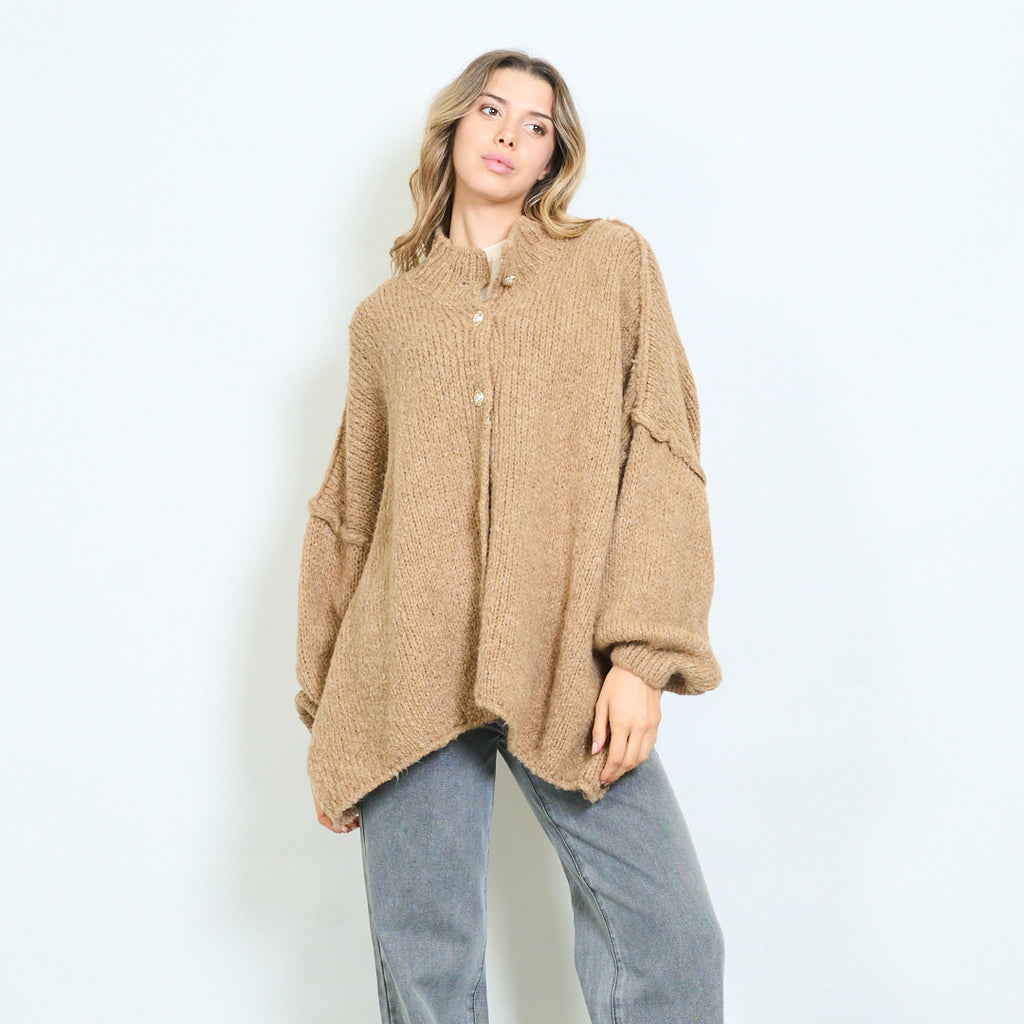 Soft brushed knit cardigan with embossed gold buttons wholesale