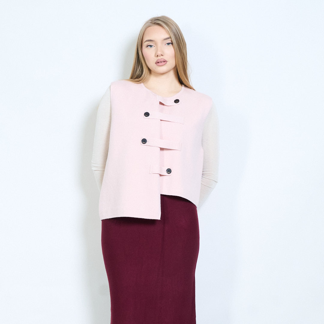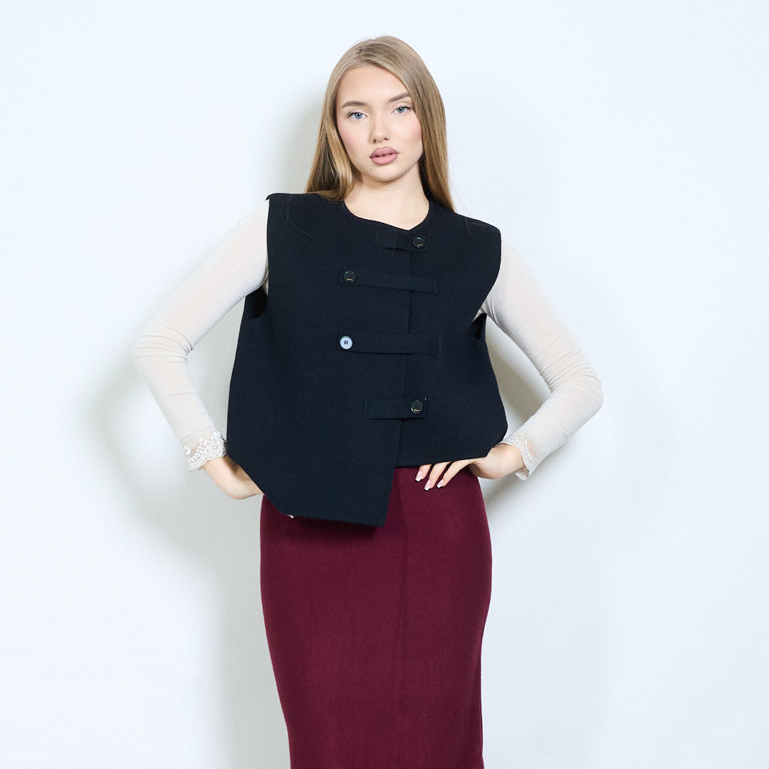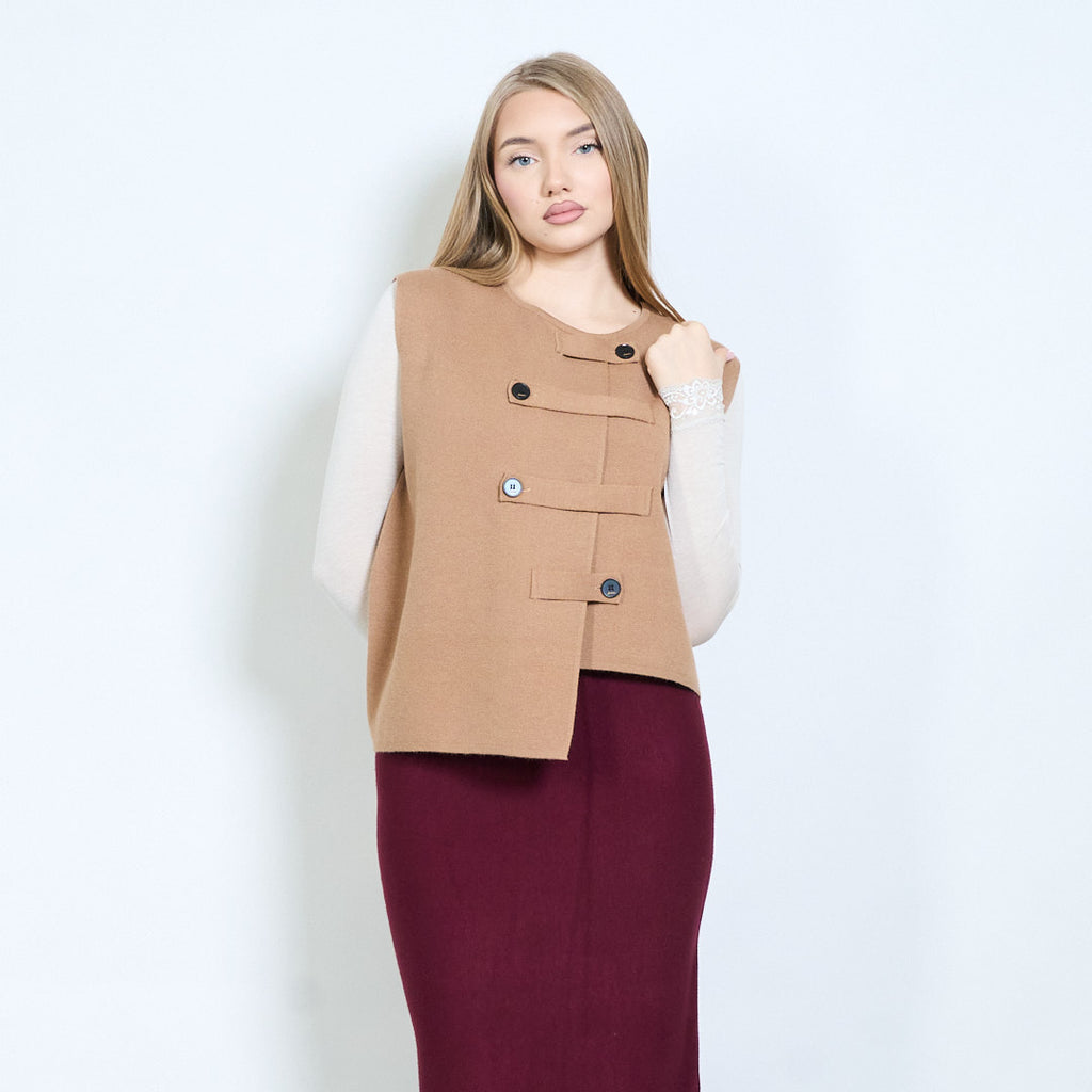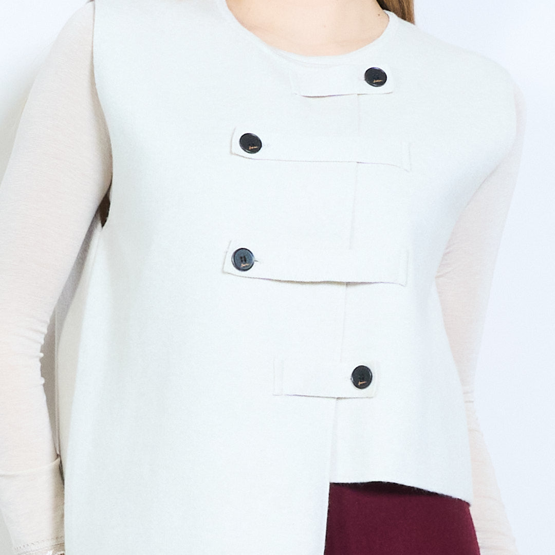 • Structured sleeveless silhouette offering a clean and refined appearance