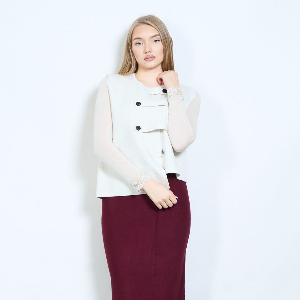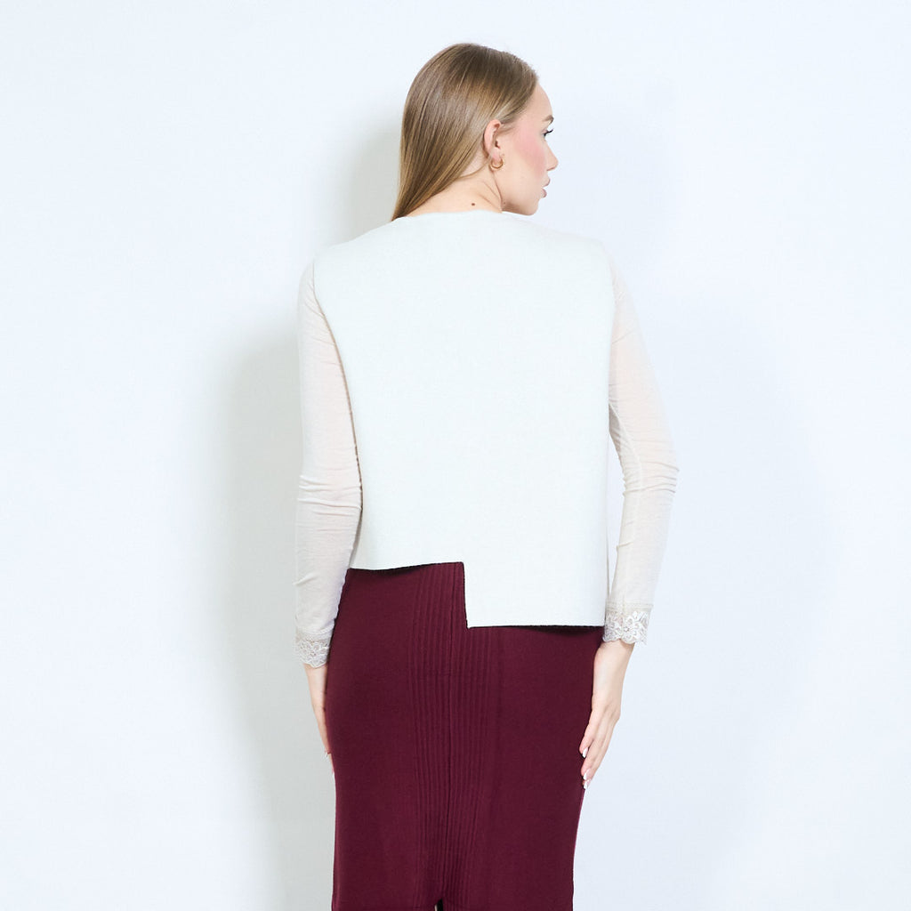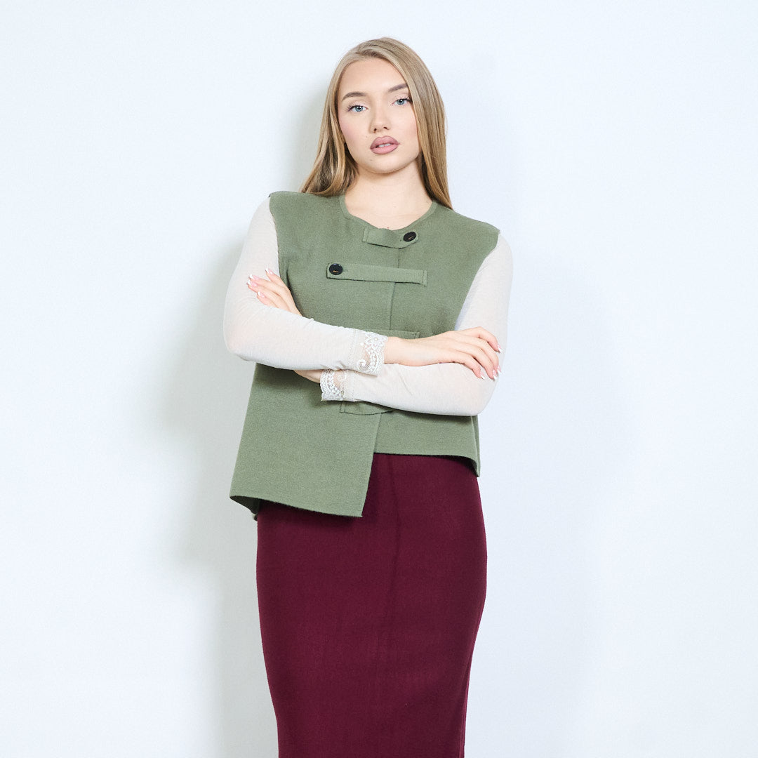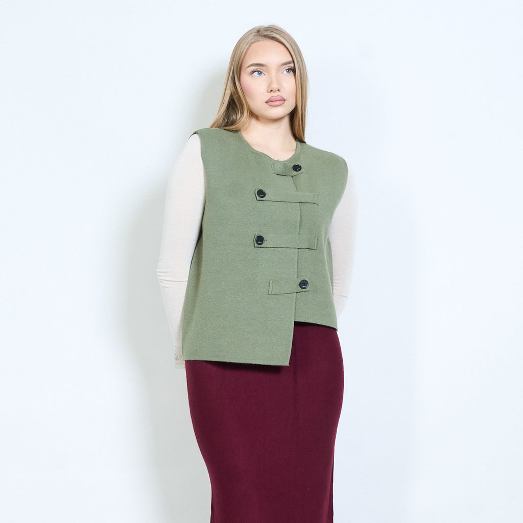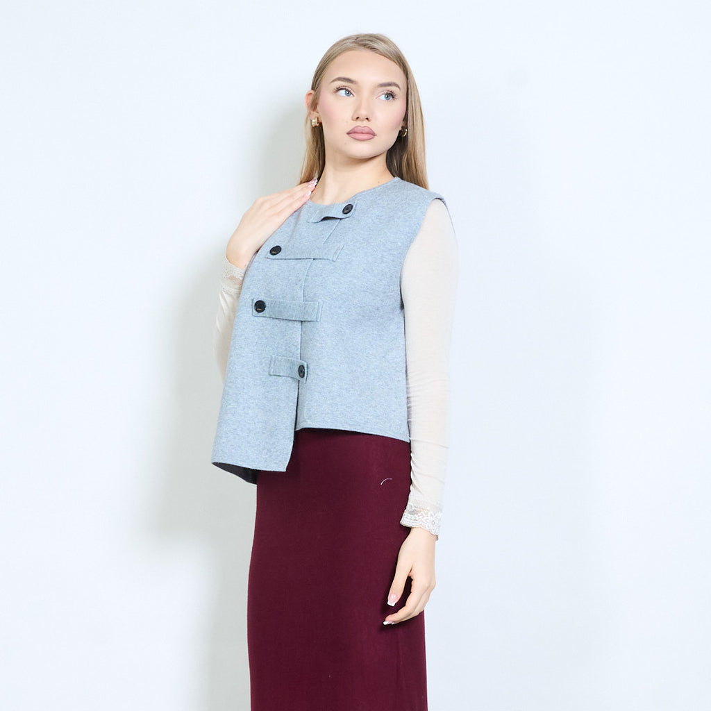 • Structured sleeveless silhouette offering a clean and refined appearance