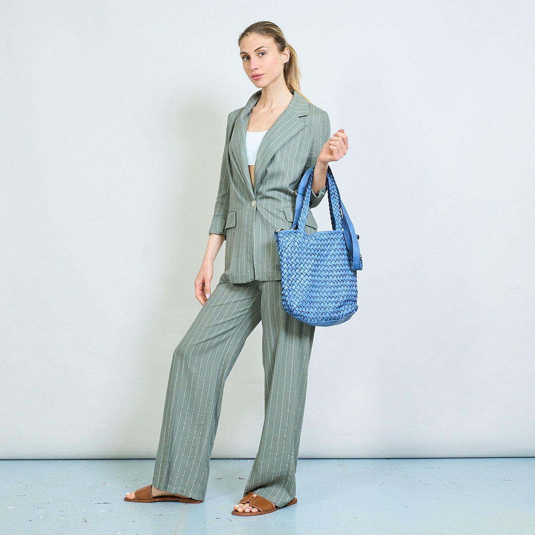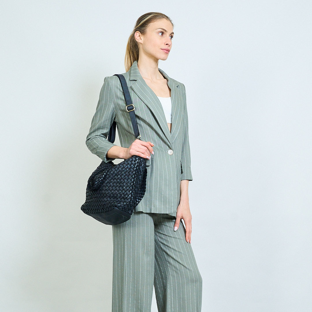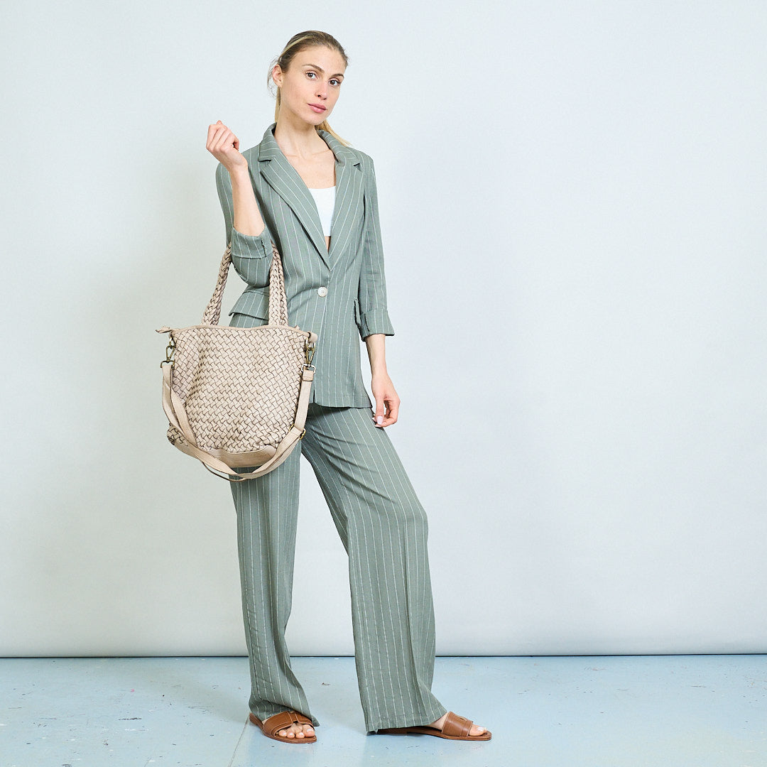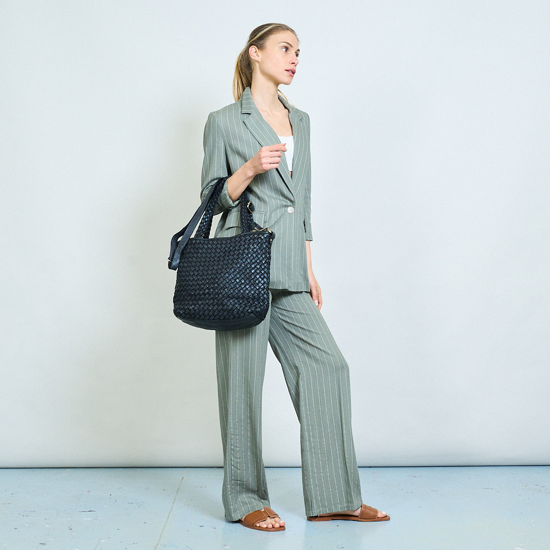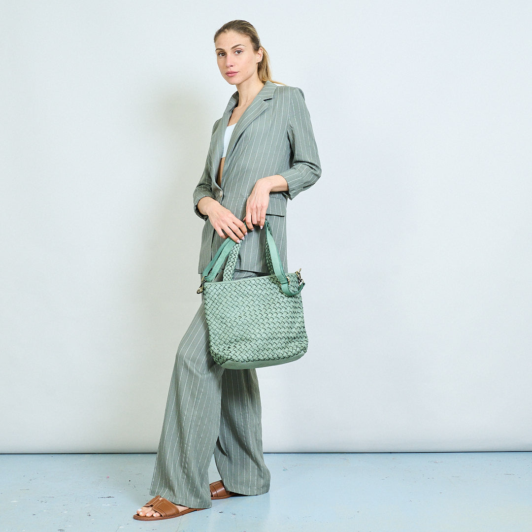 Artisan weave texture dual-handle soft tote bag wholesale