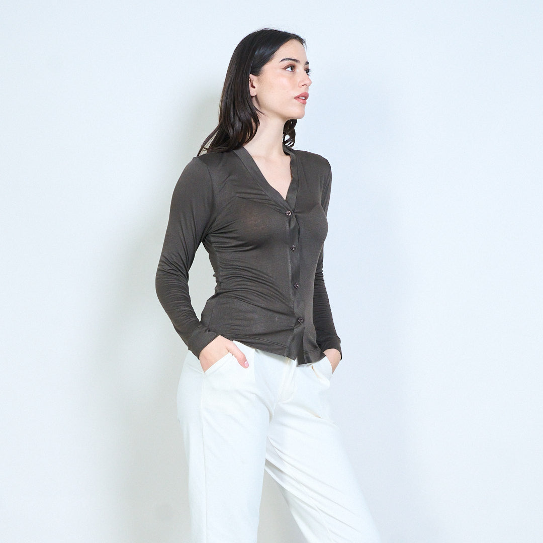 Lightweight v-neck button front knit cardigan wholesale