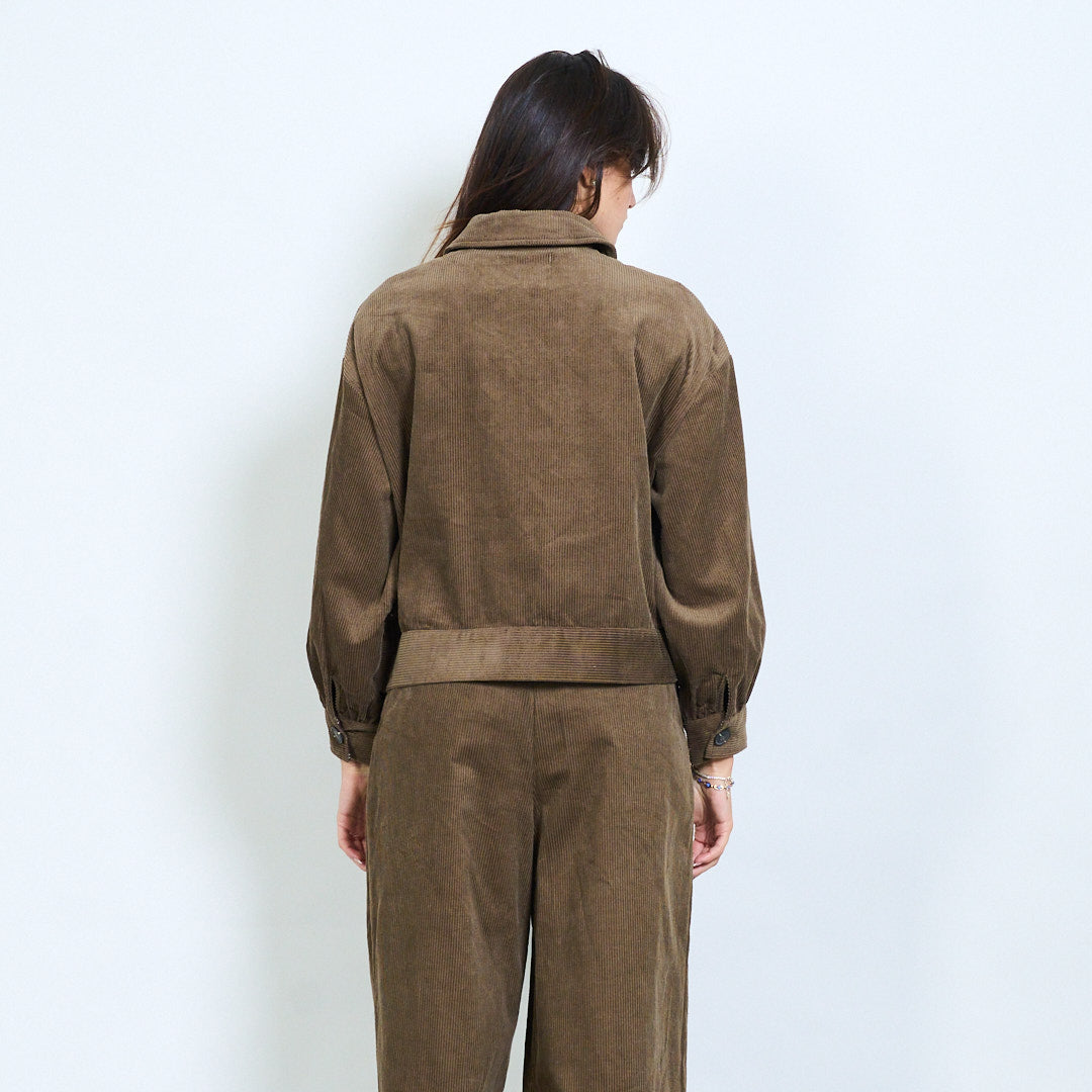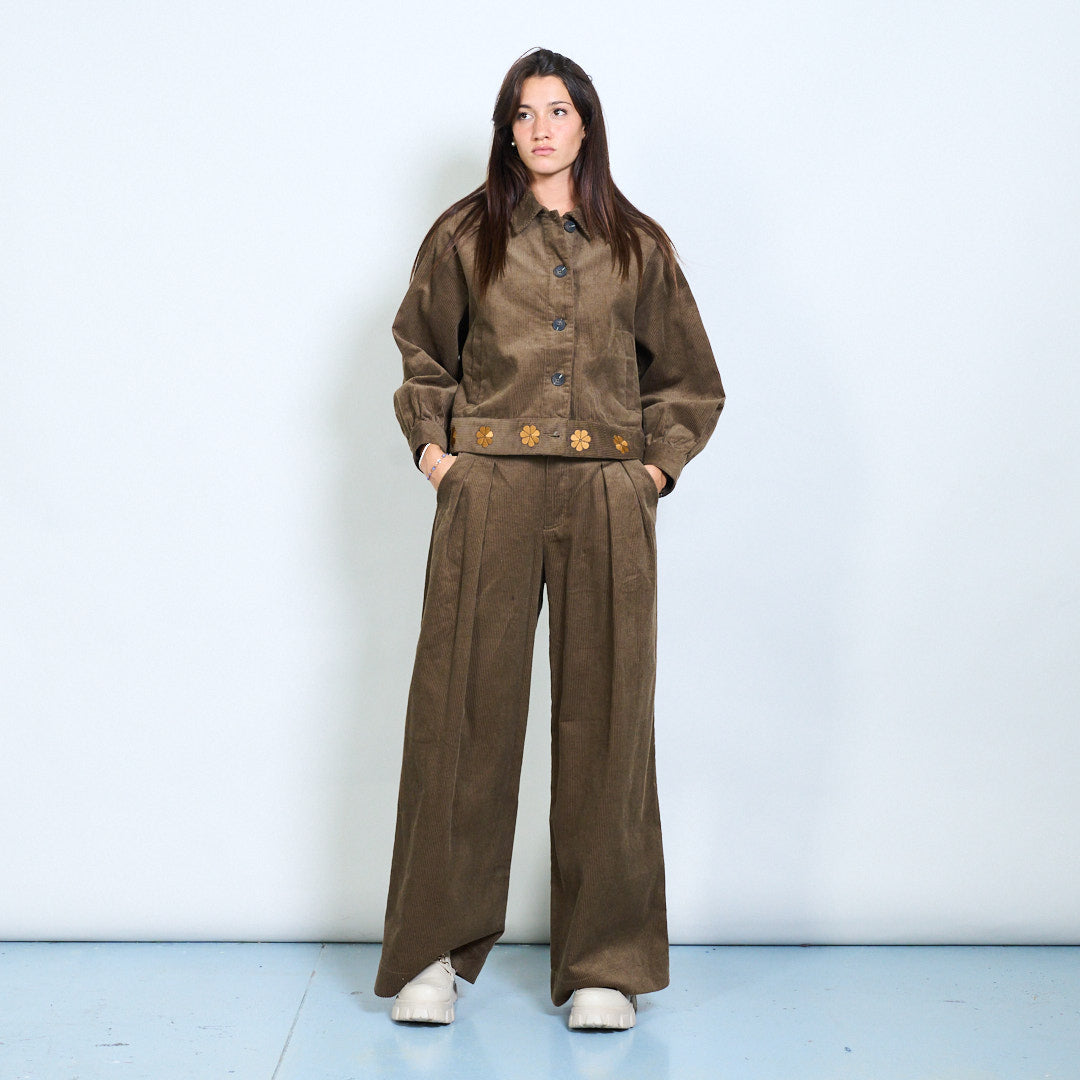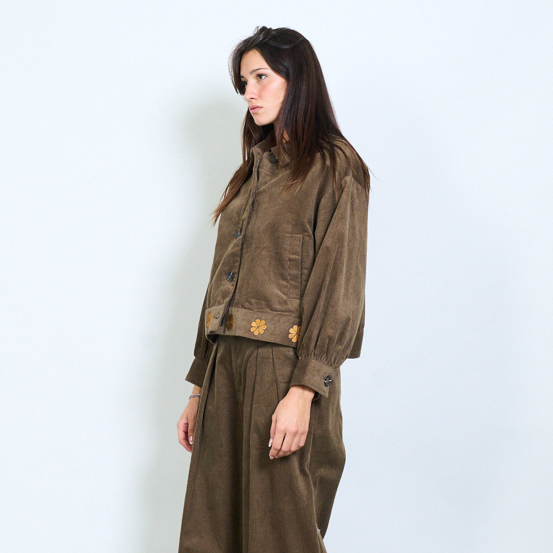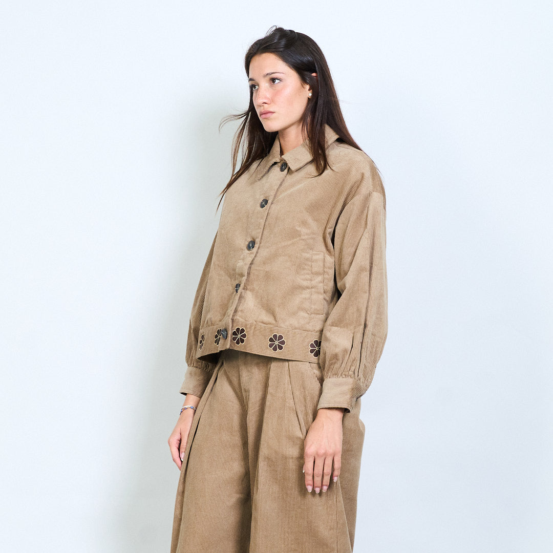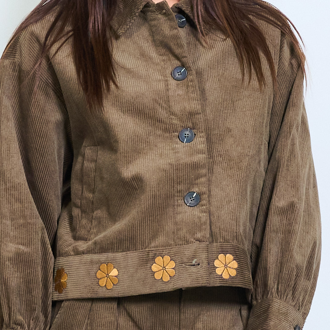 Cropped corduroy jacket with floral hem detail wholesale
