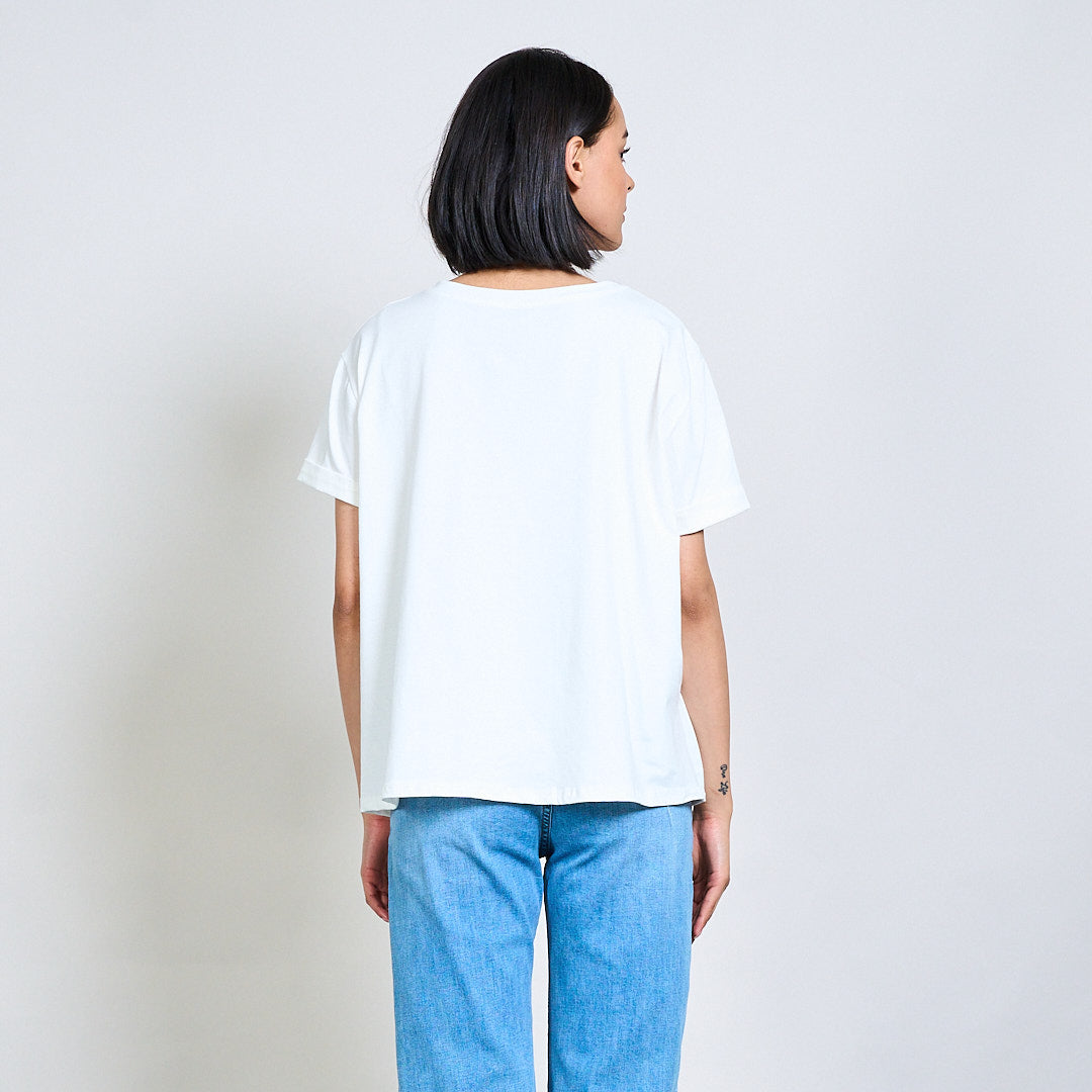 - Relaxed fit with rolled short sleeves for a laid-back look