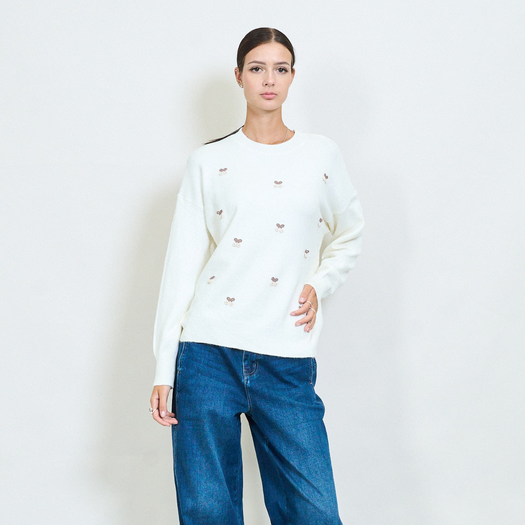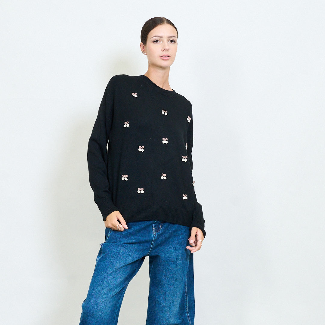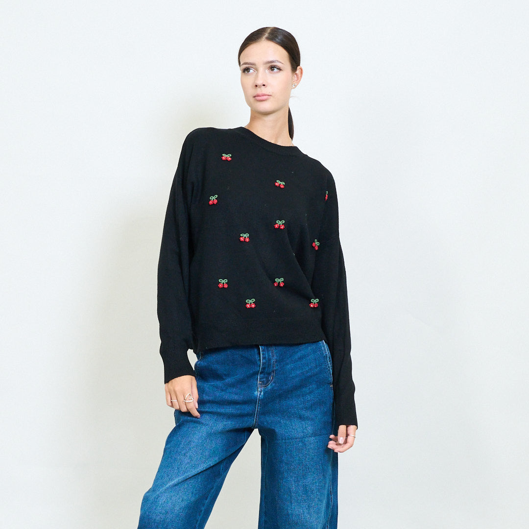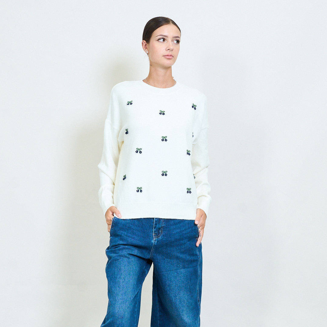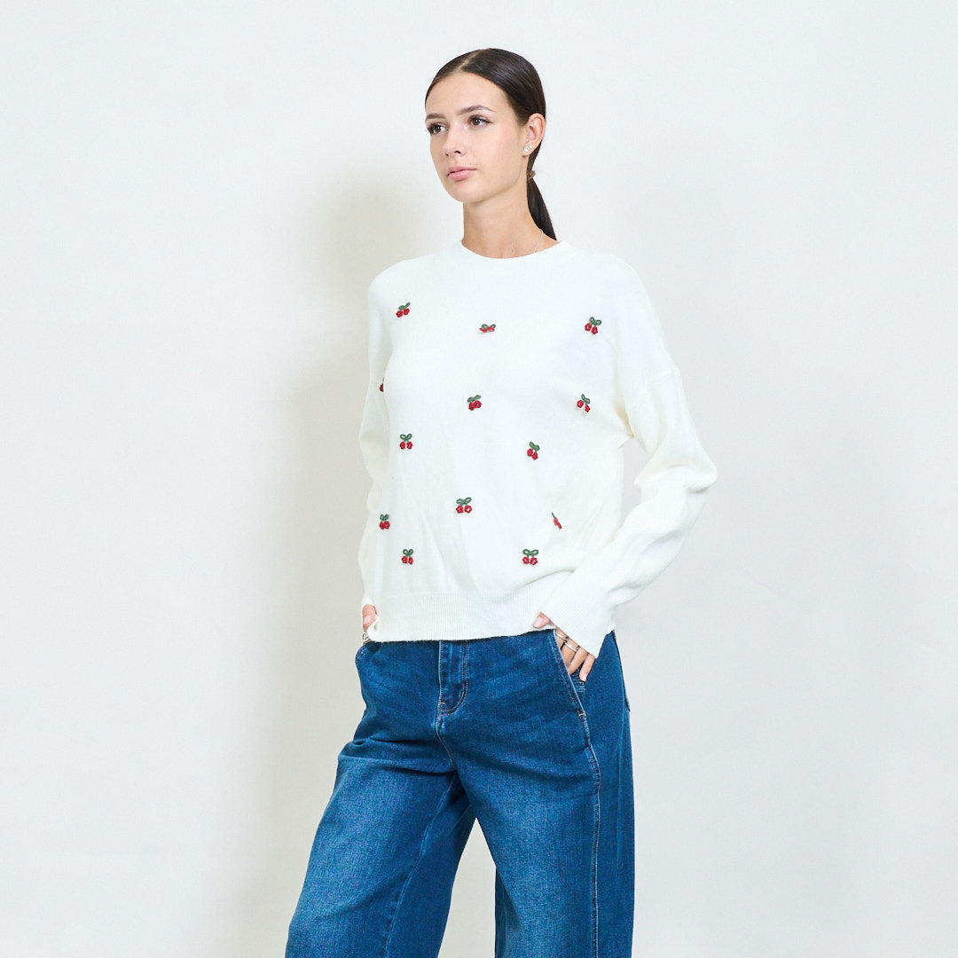 Mini cherry motif embroidered knit sweater wholesale