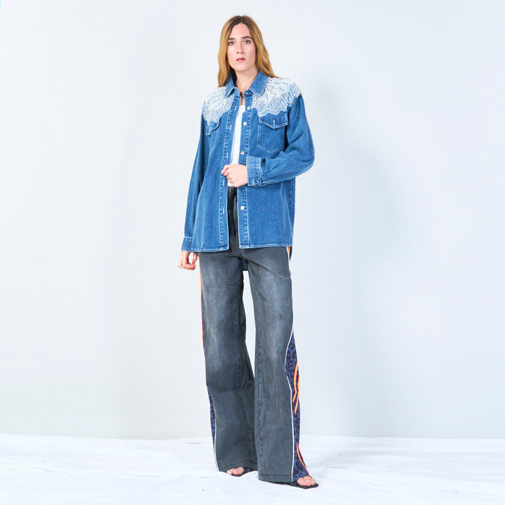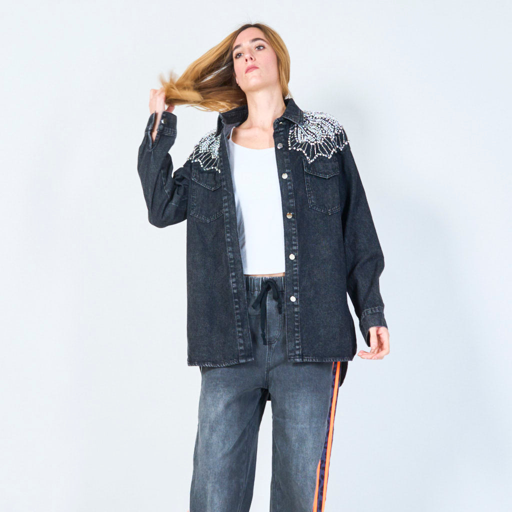Pearl embellished denim jacket wholesale