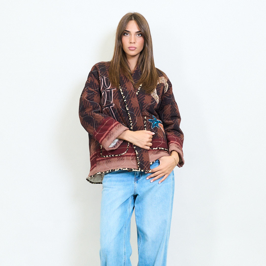 Plaid embroidered “You got it girl” statement jacket wholesale