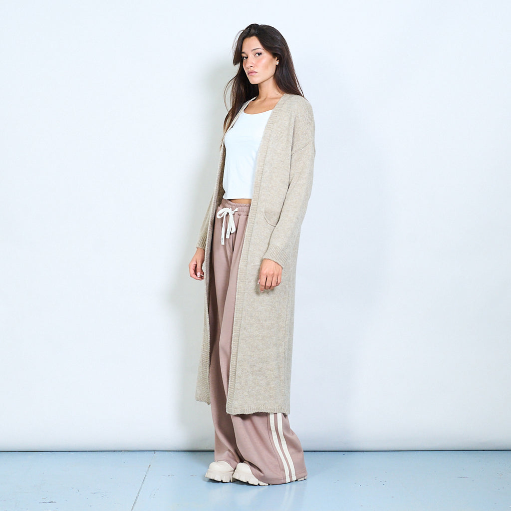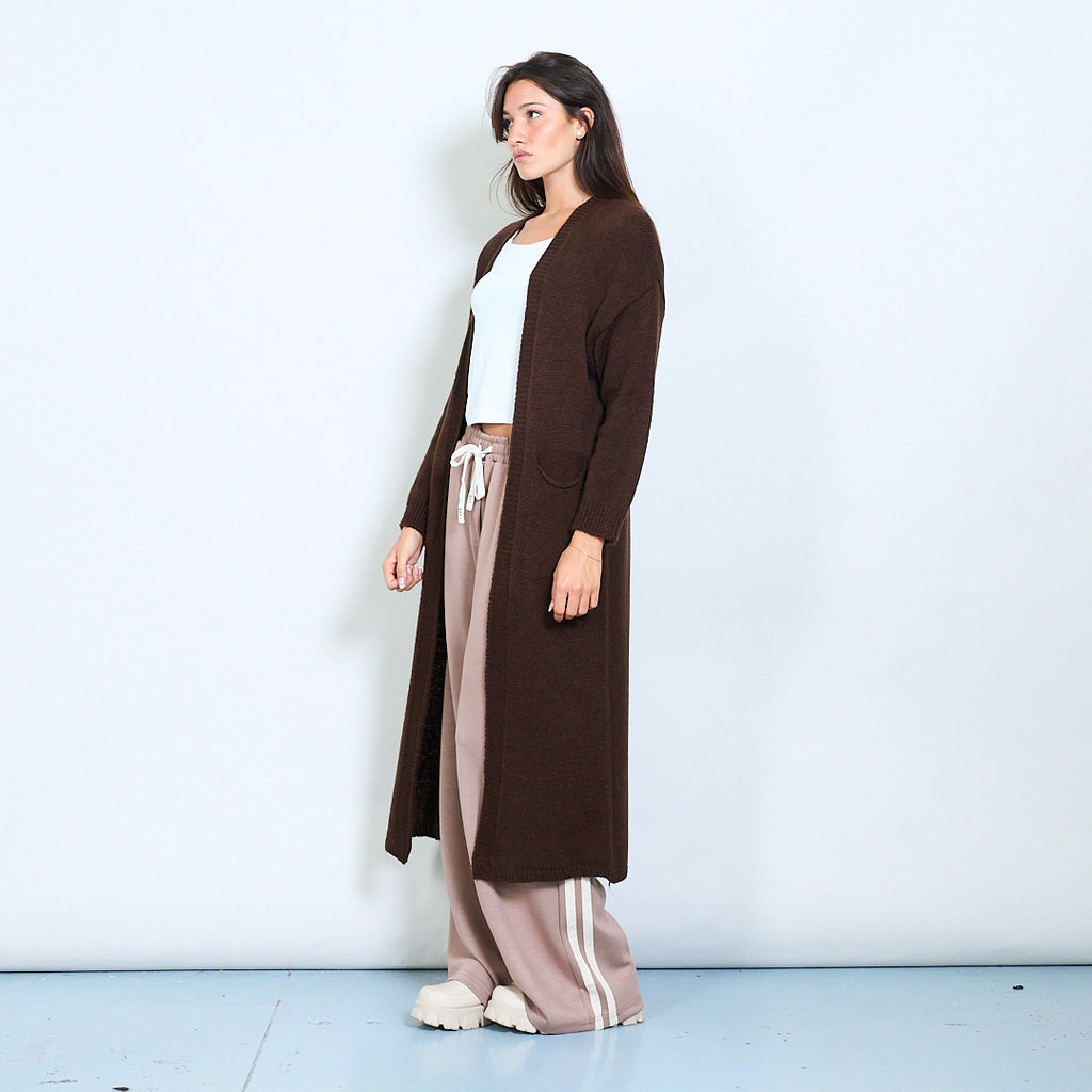 Rib trim pocketed open-front maxi cardigan wholesale