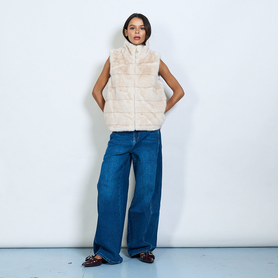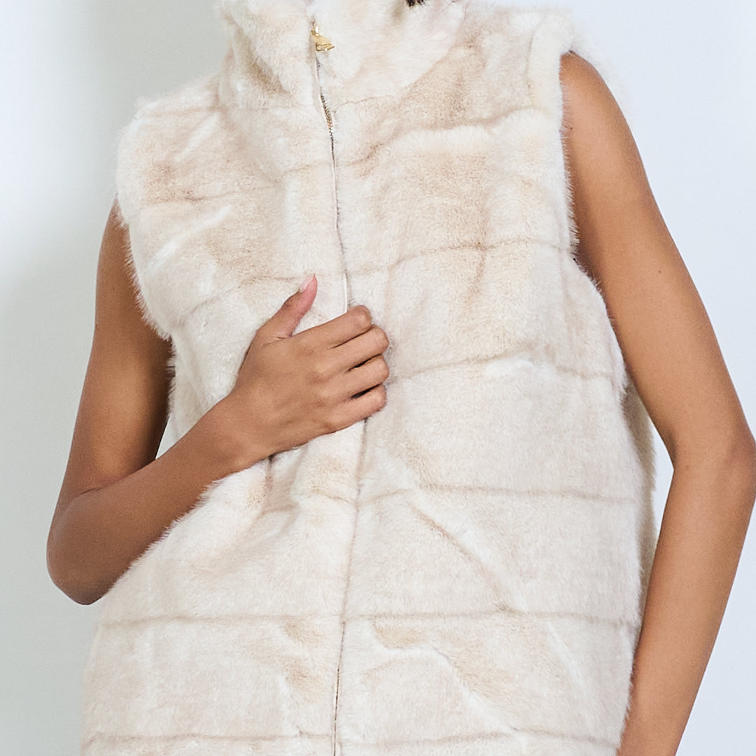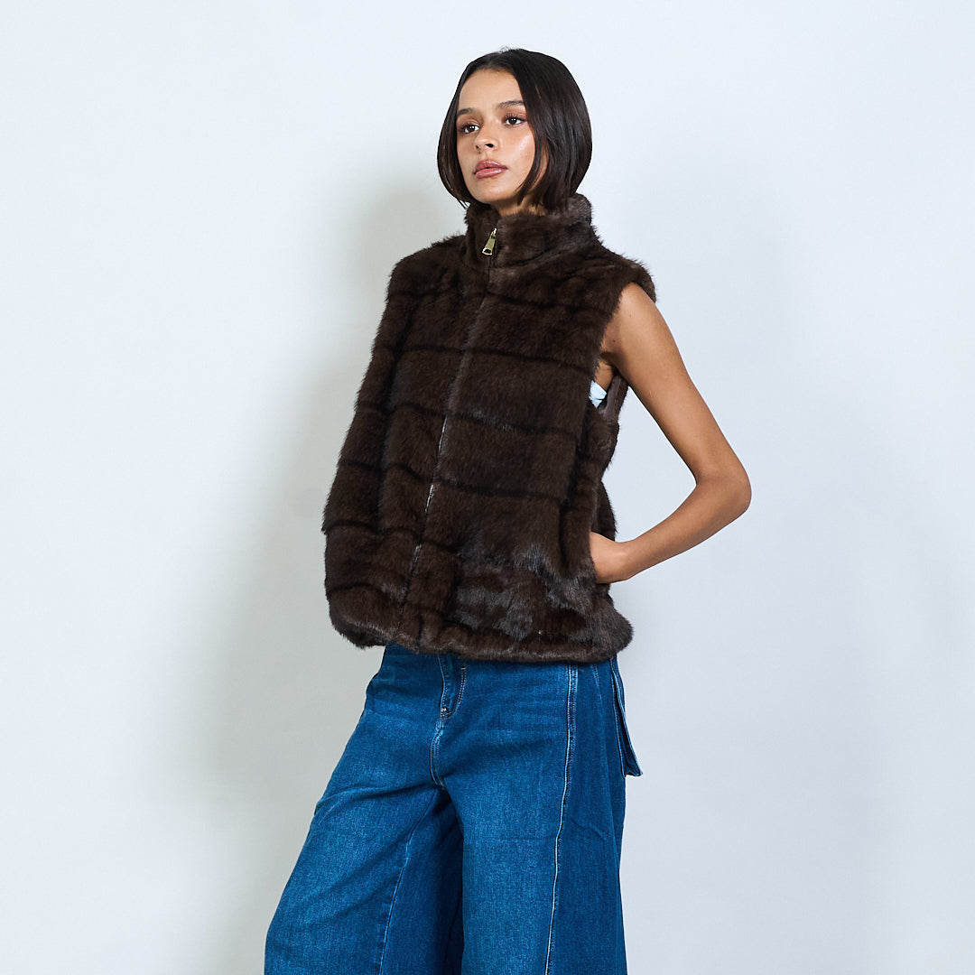 Sleeveless faux fur vest with zipper wholesale