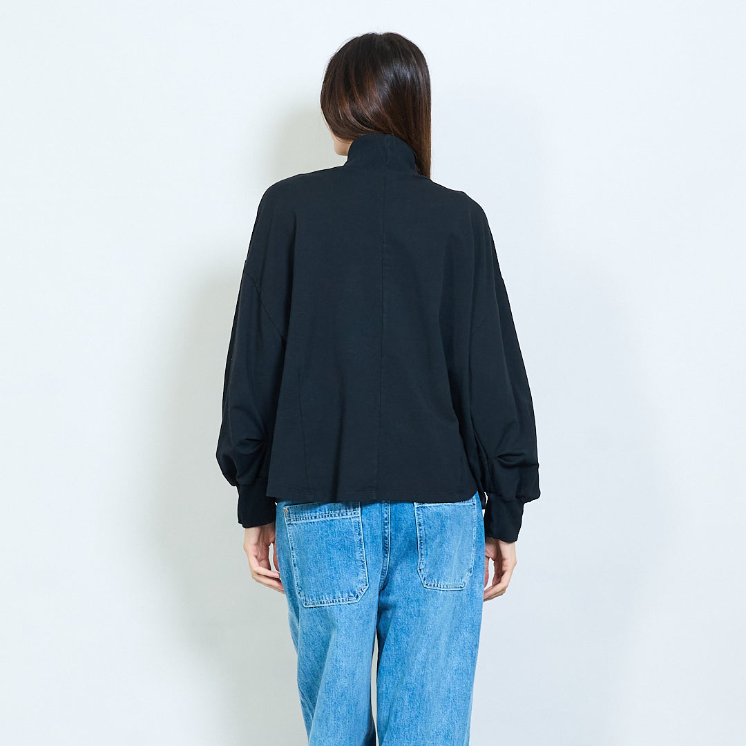 - Long sleeves with drop-shoulder style