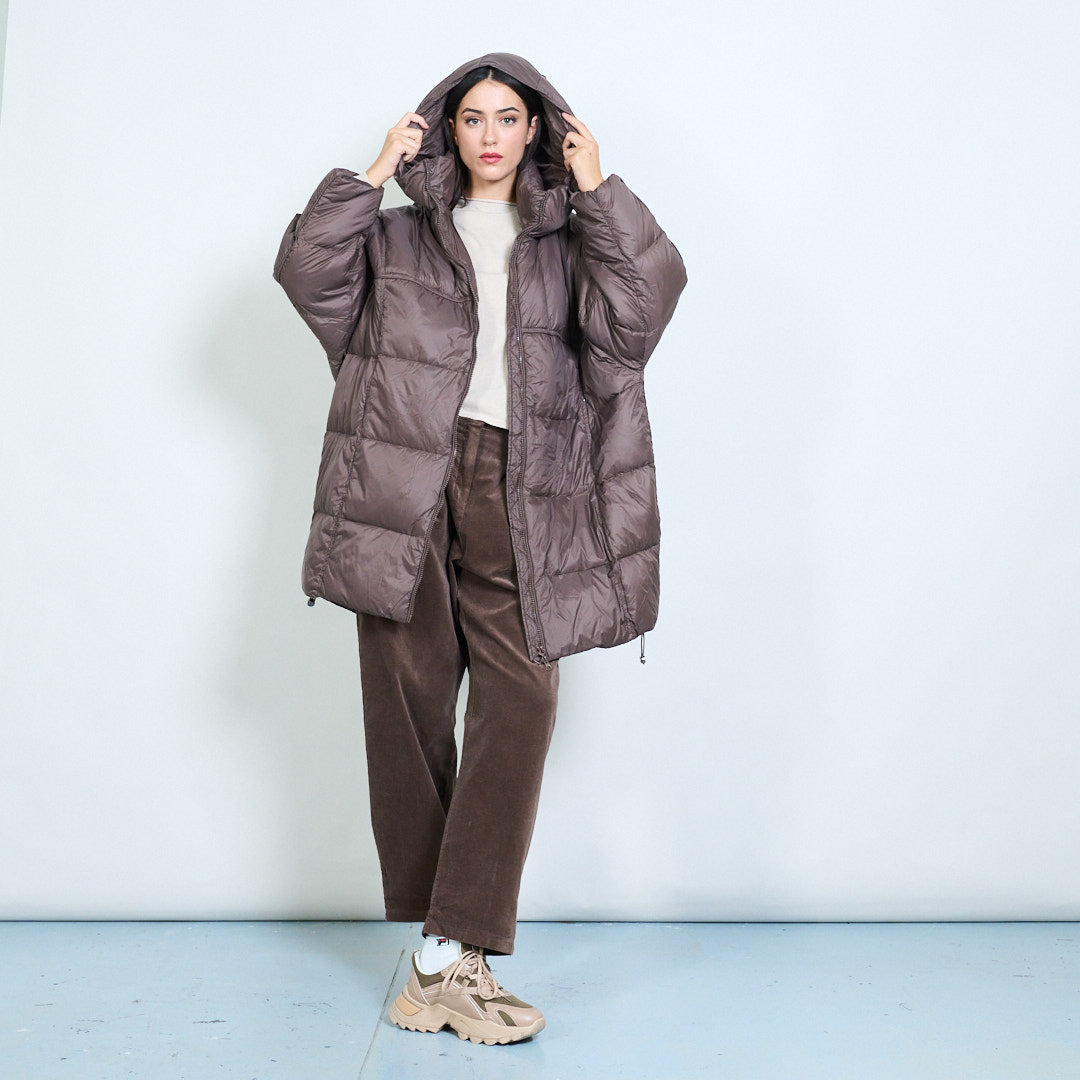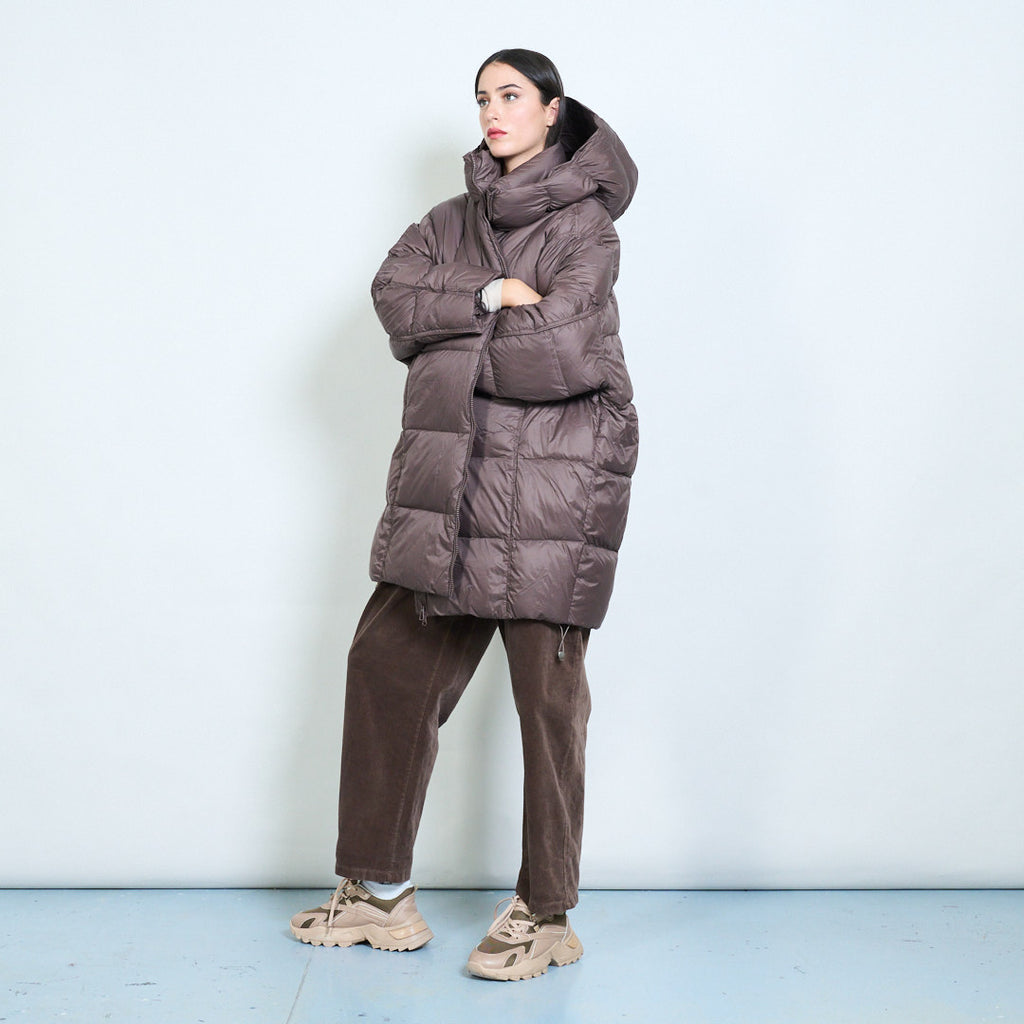 Oversized quilted duck down puffer jacket with wrap hood wholesale