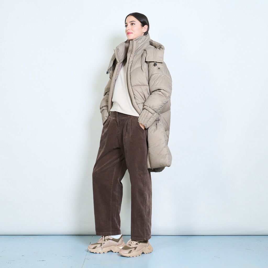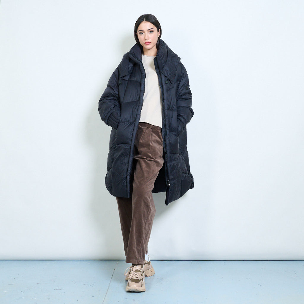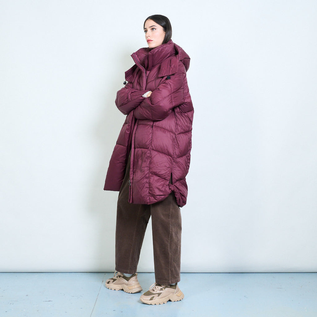 Oversized quilted puffer jacket with wrap hood wholesale