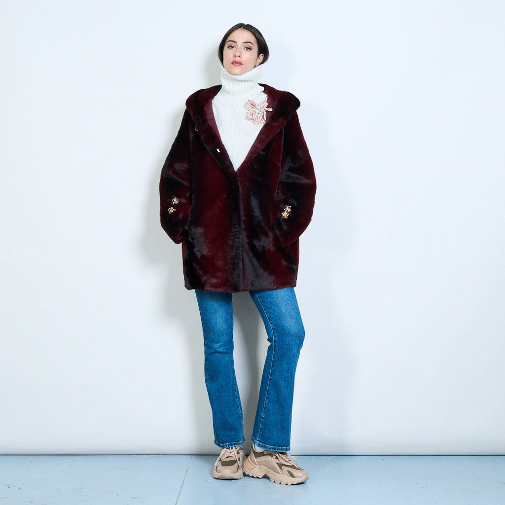 • Luxuriously soft plush faux fur texture for a refined statement look