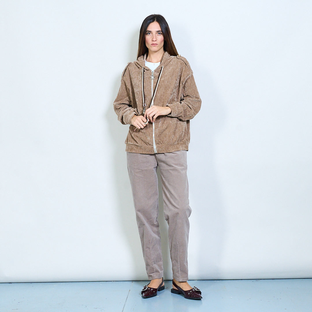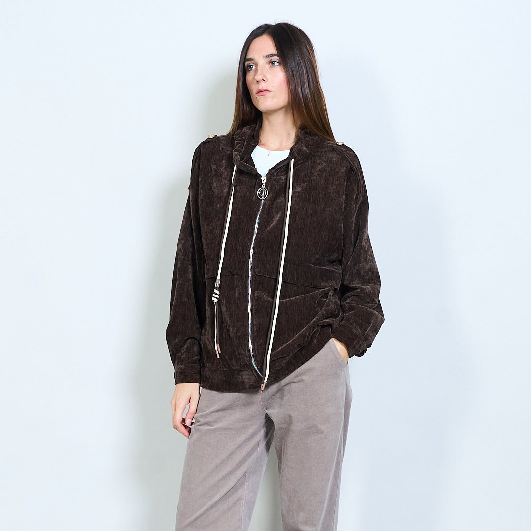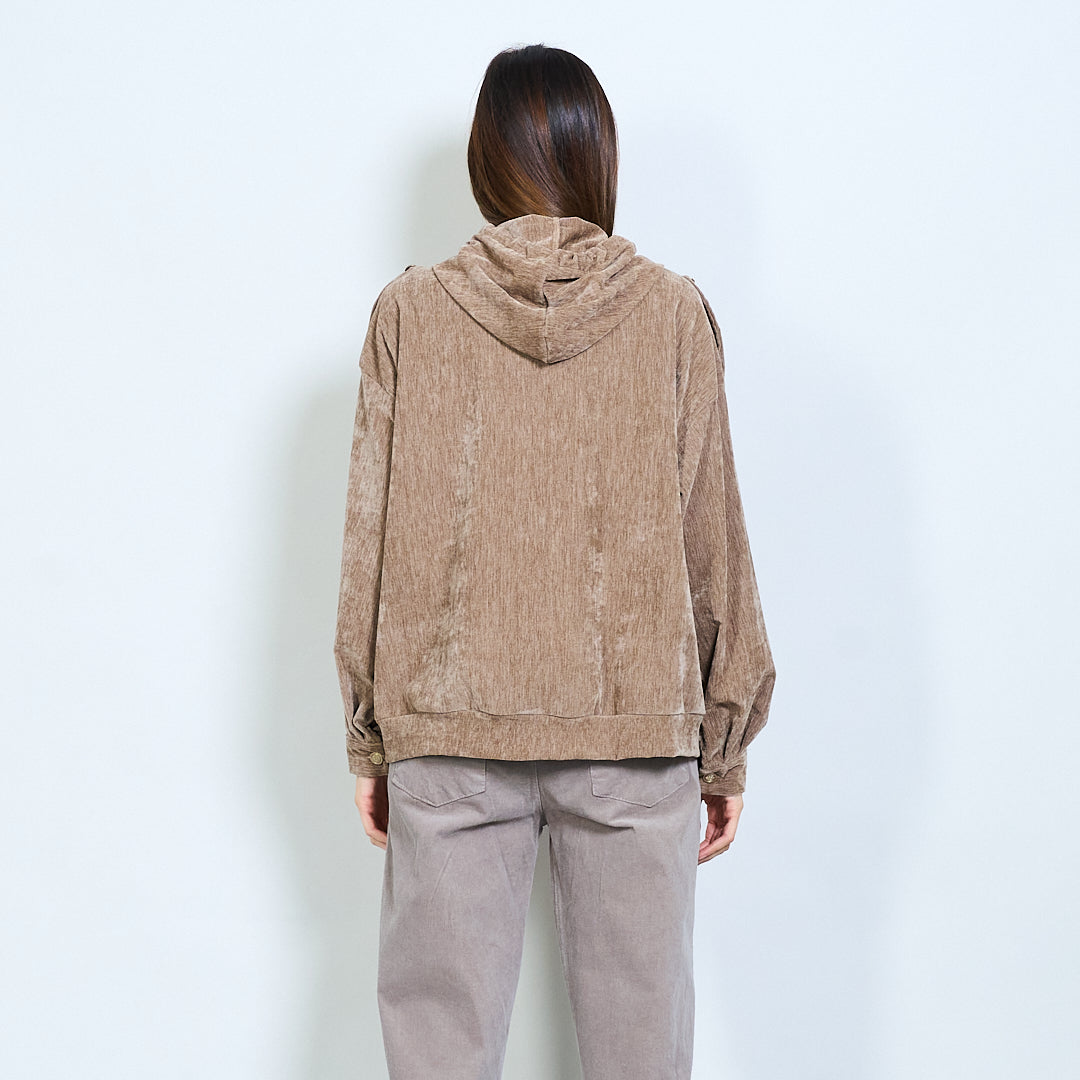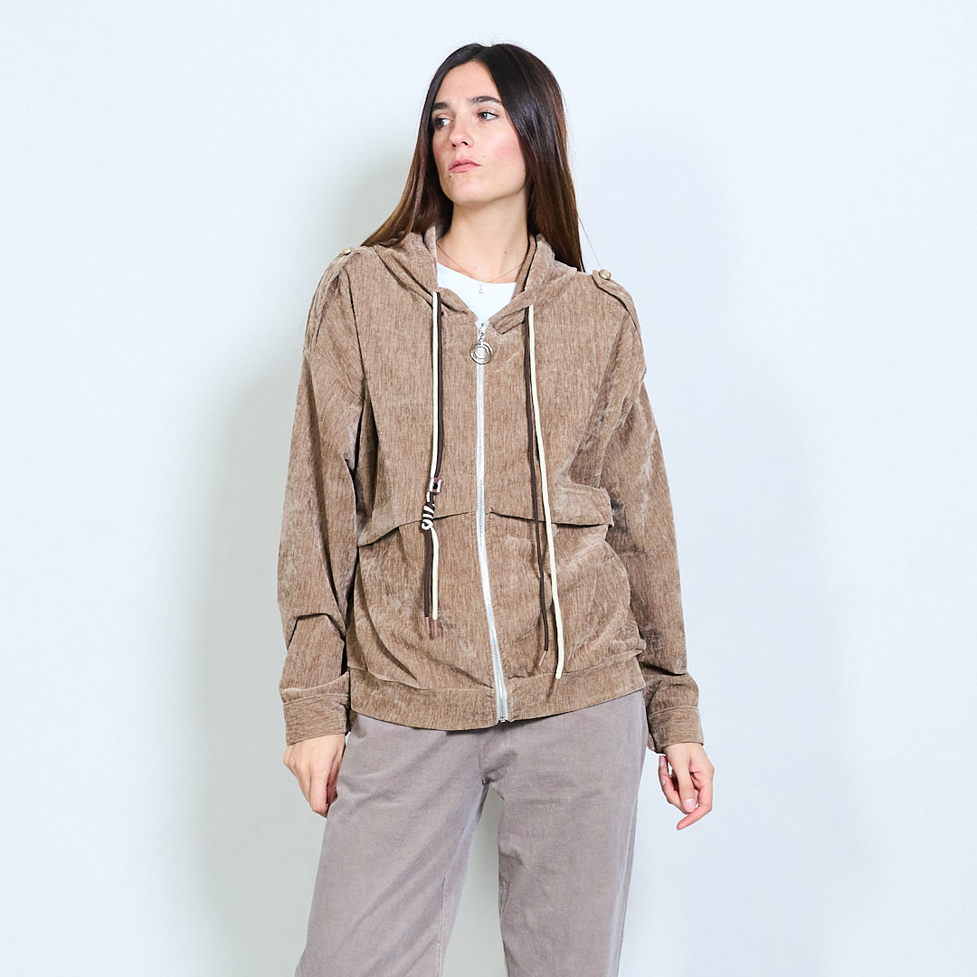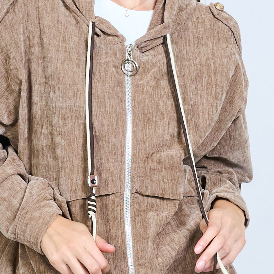 Relaxed fit zip front hooded drawstring casual jacket wholesale