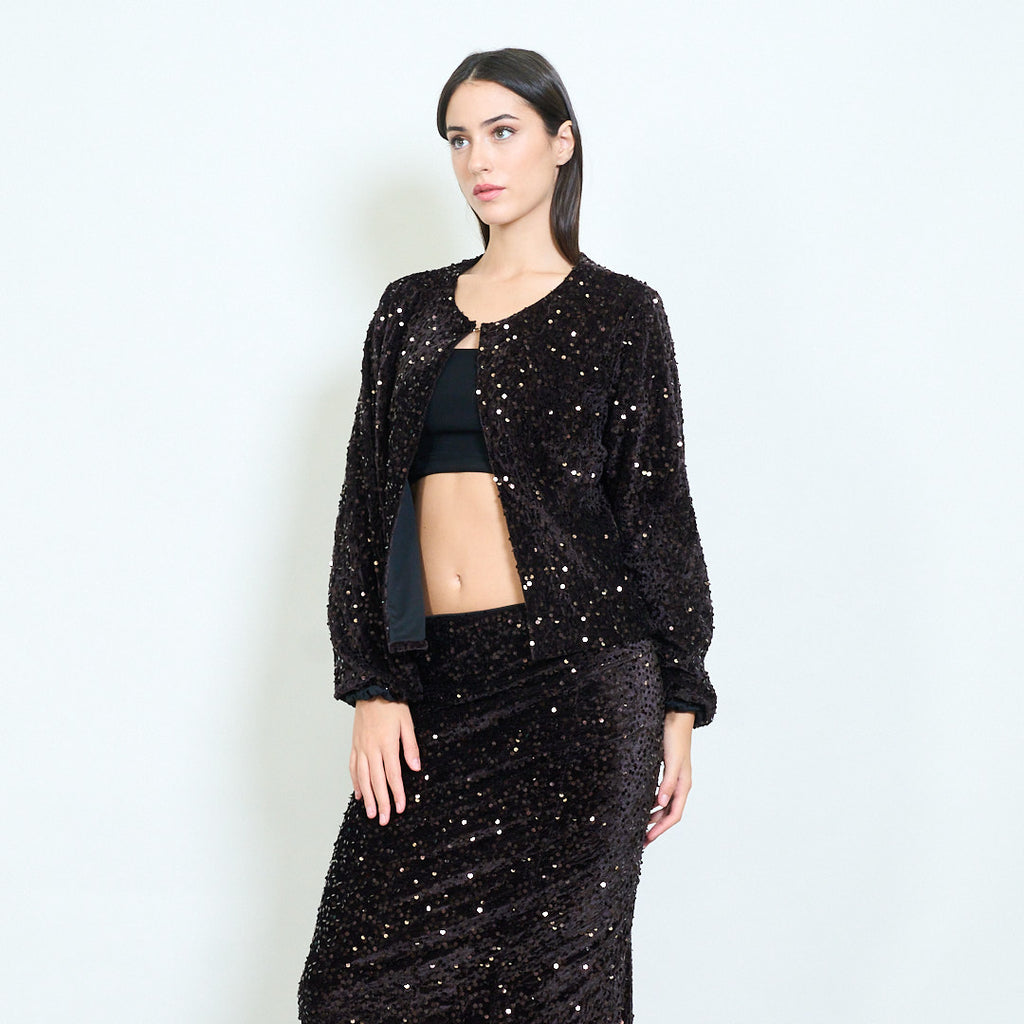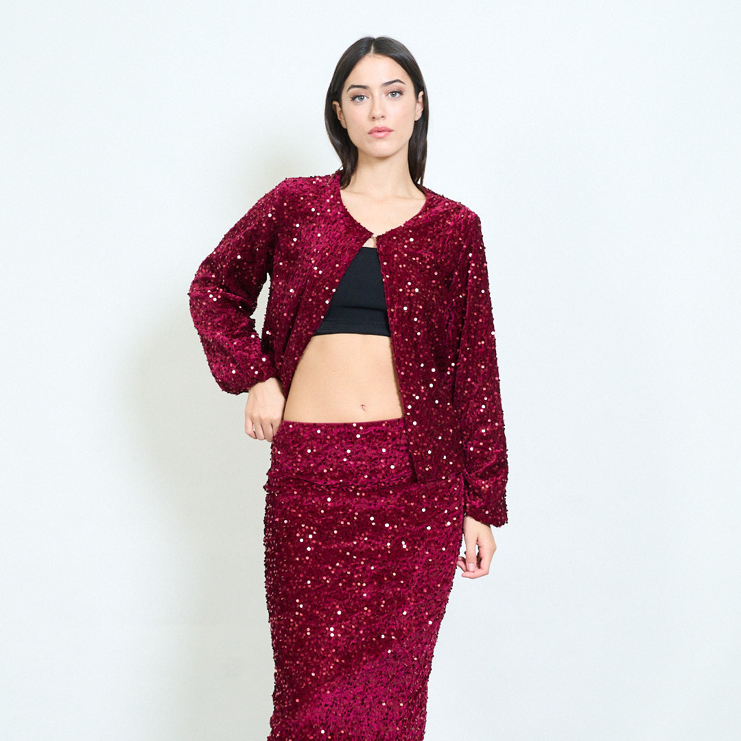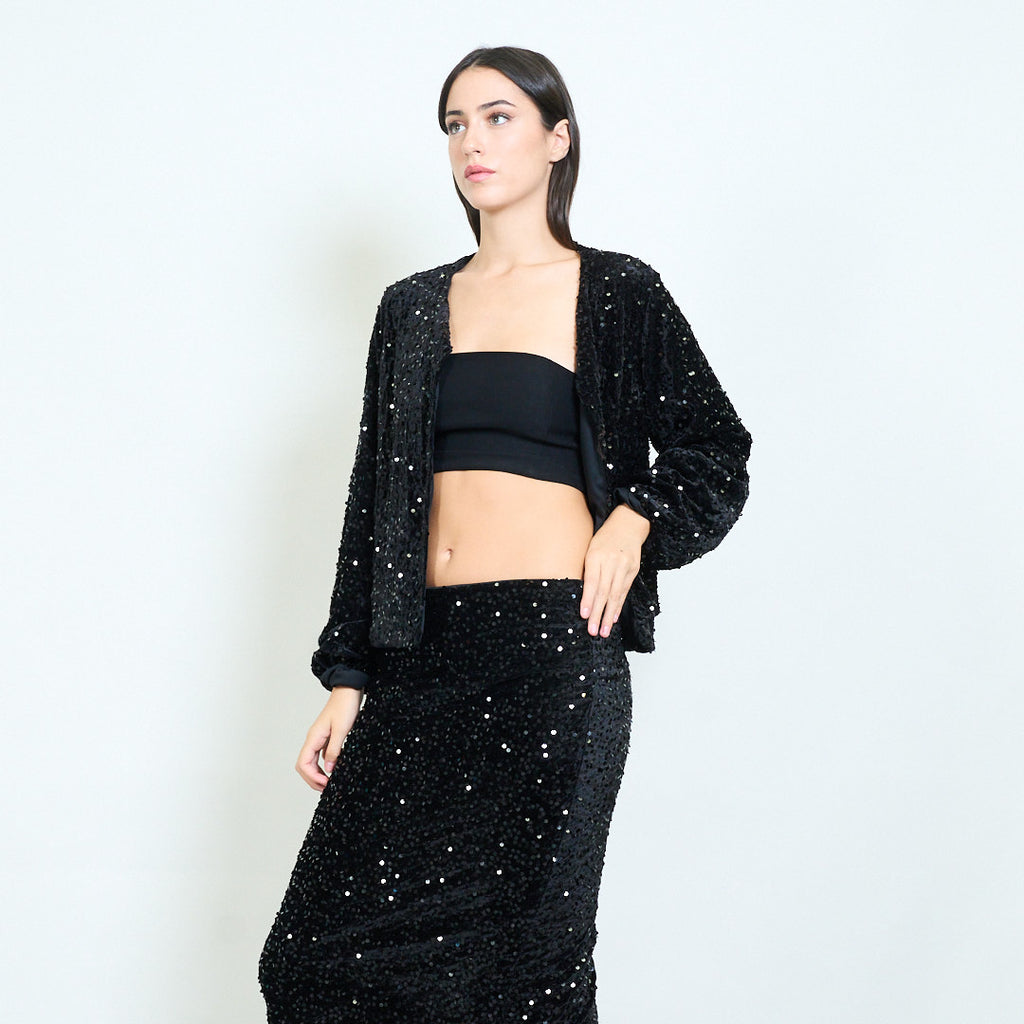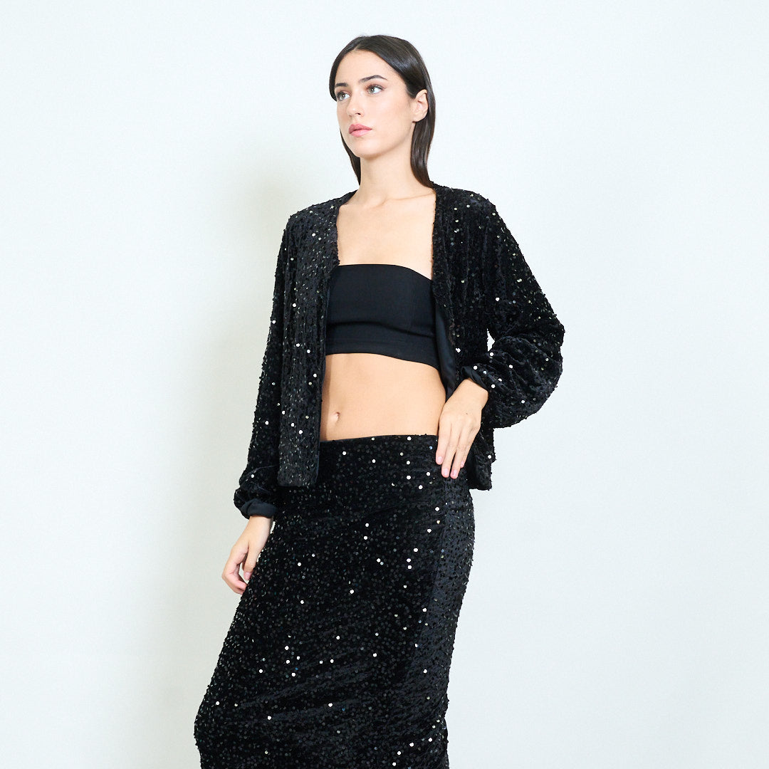 - Fully embellished with shimmering sequin details for a glamorous effect