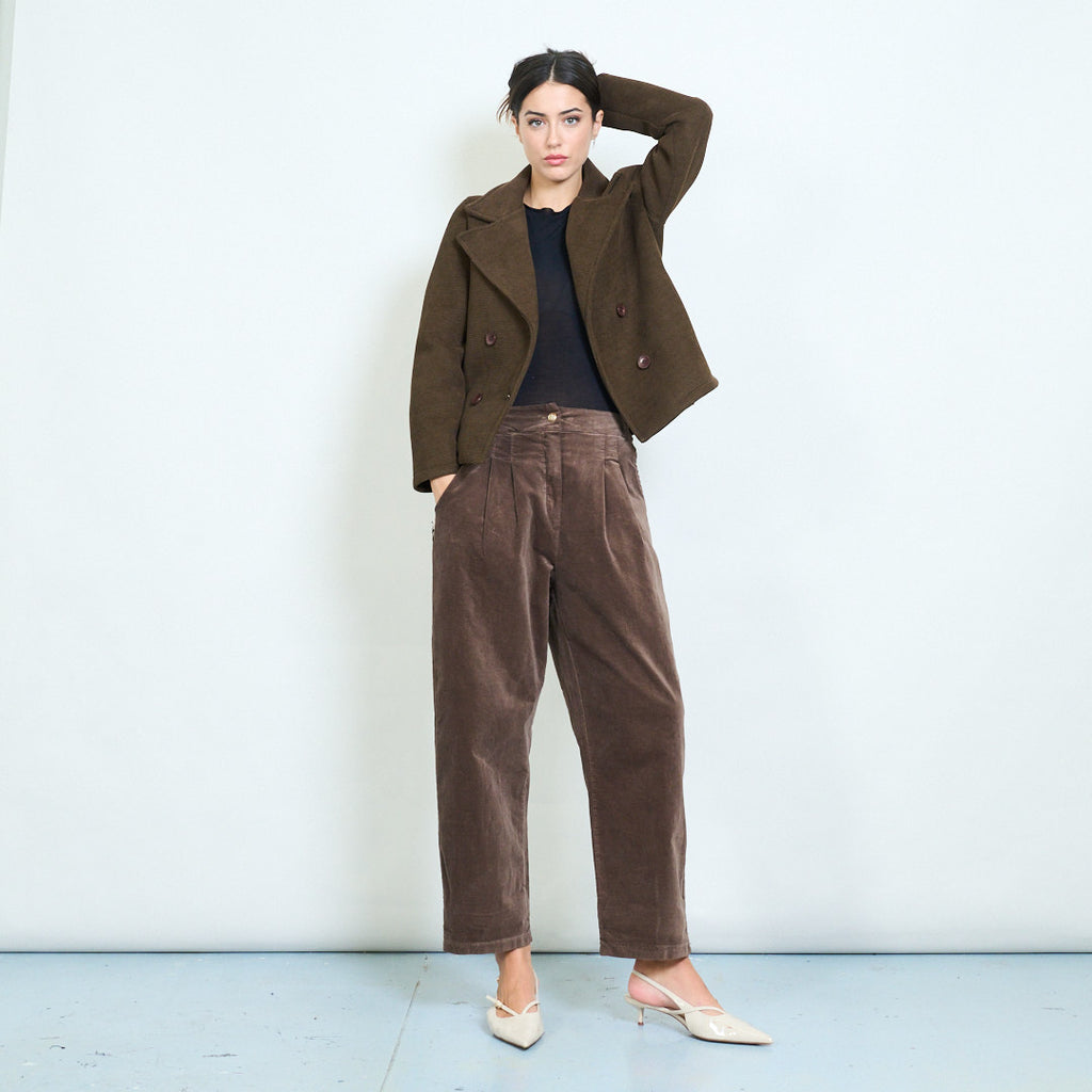 - Elegant double-breasted front for a classic and refined silhouette