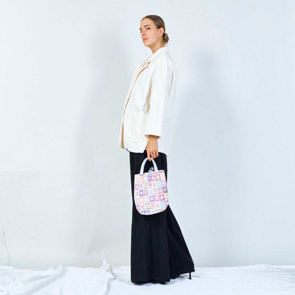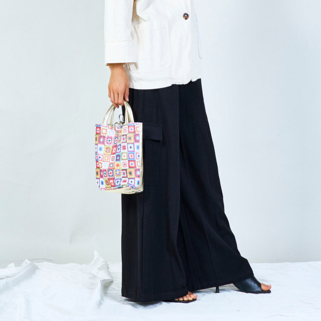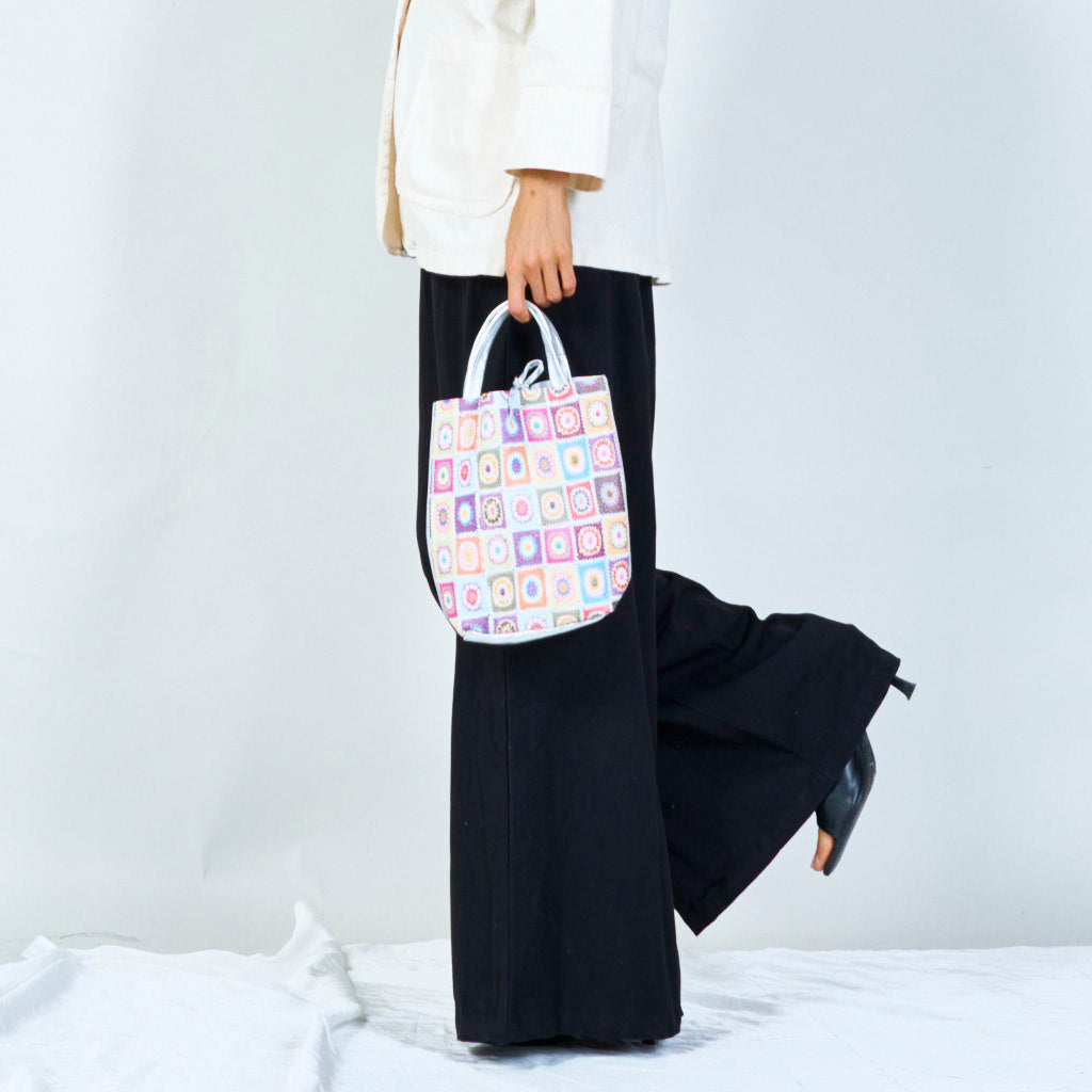 Colorful crochet pattern tote bags with metallic handles wholesale