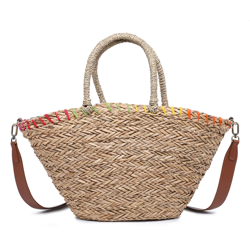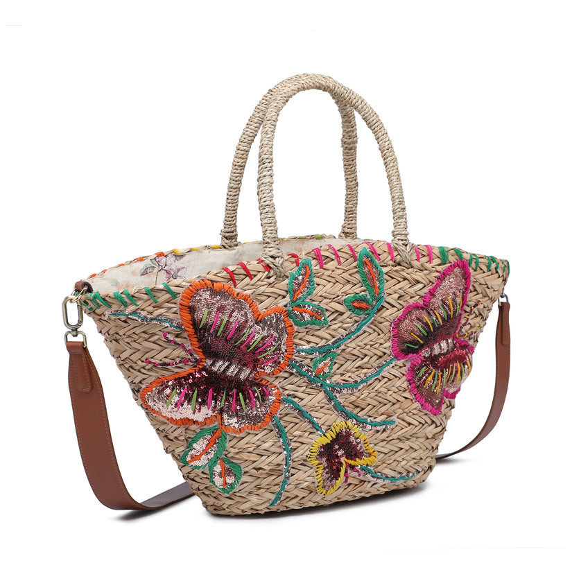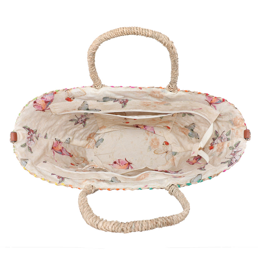 Embroidered raffia basket with butterfly and floral beading wholesale