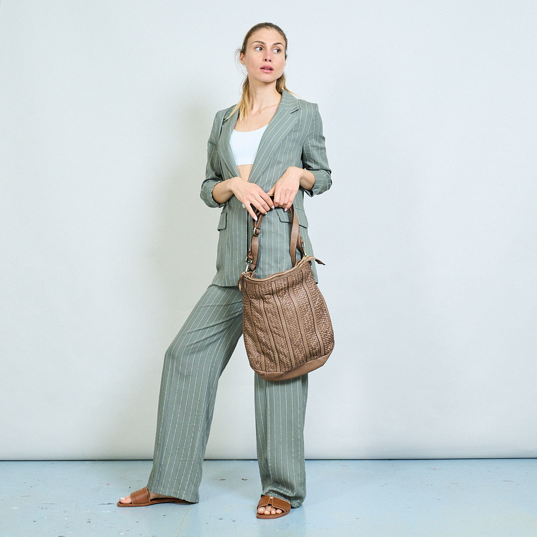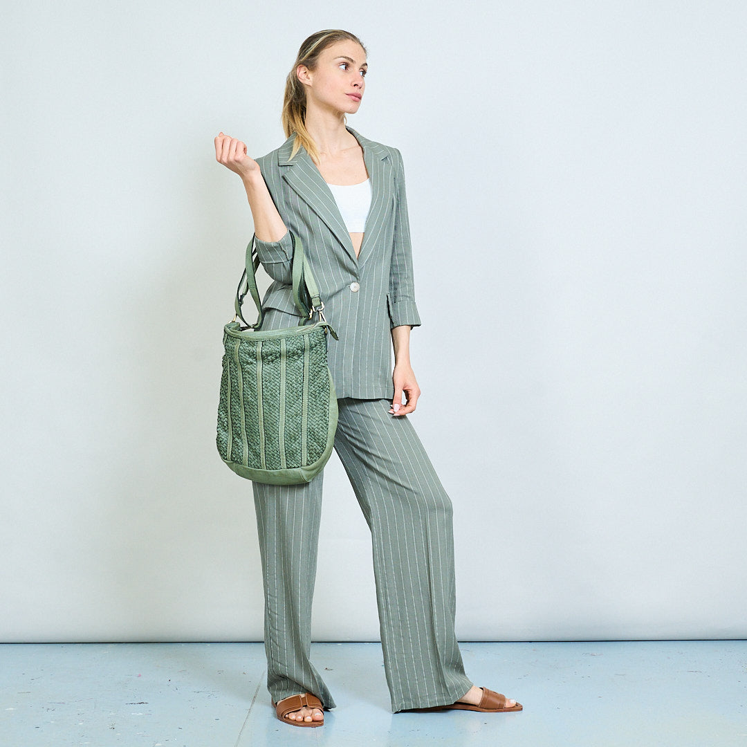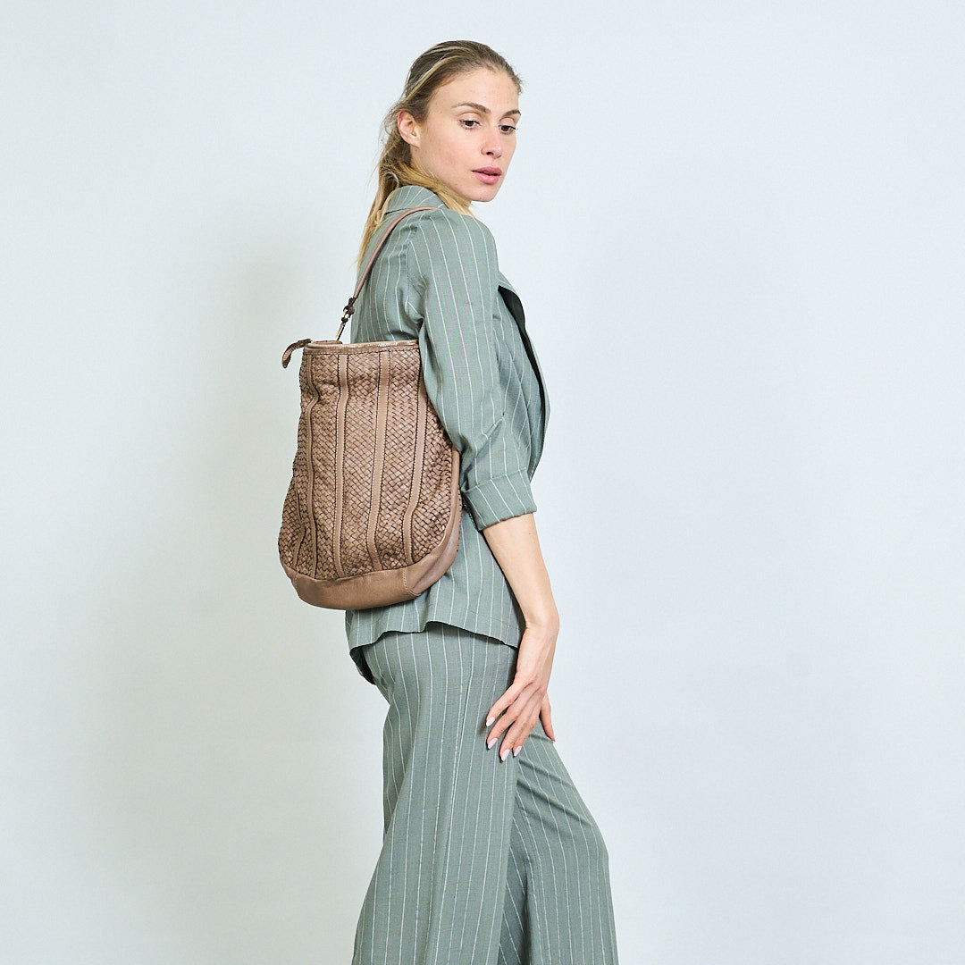 Vertical panel weave structured crossbody shoulder bag wholesale