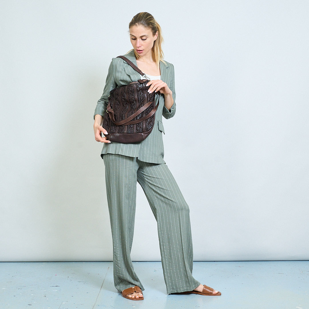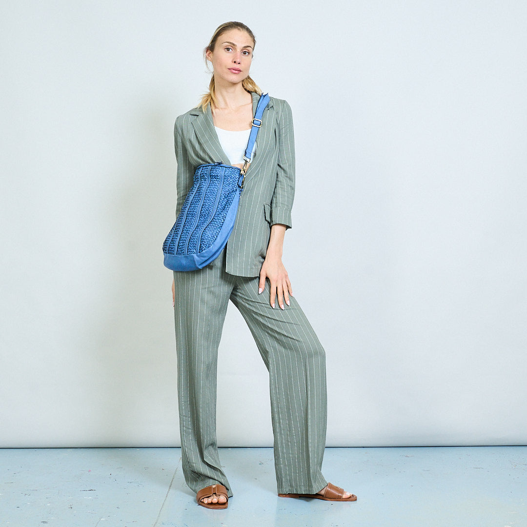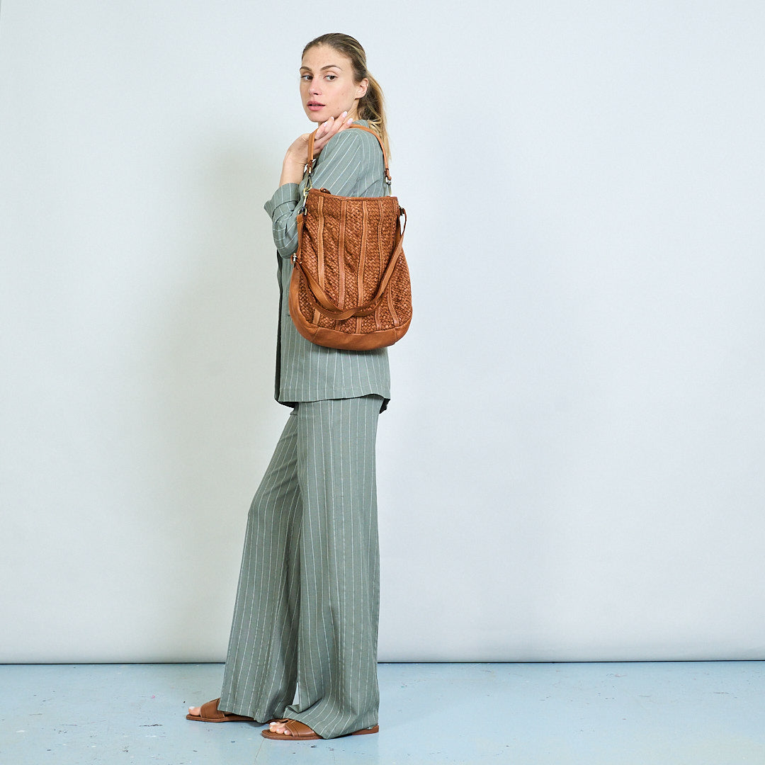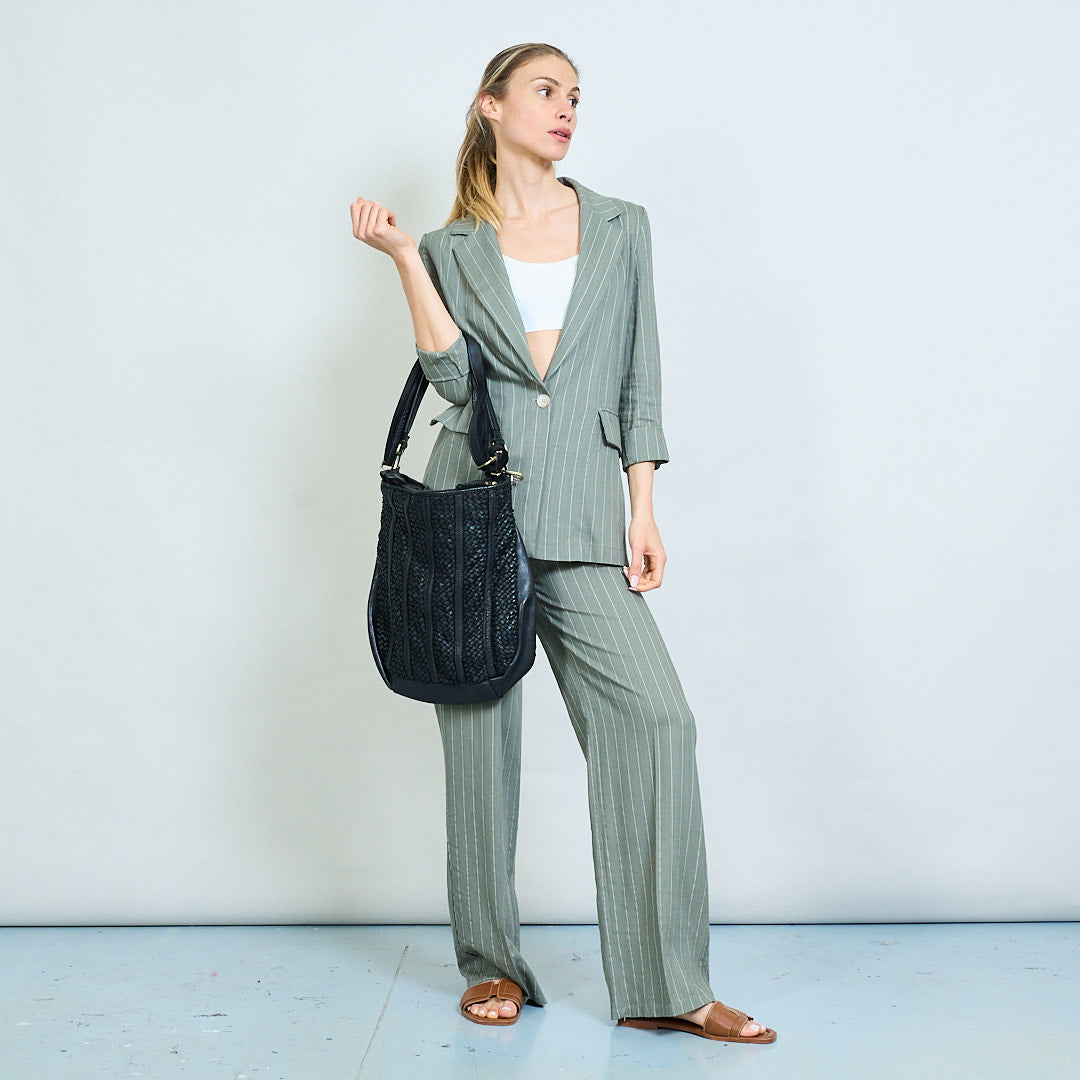 Vertical panel weave structured crossbody shoulder bag wholesale