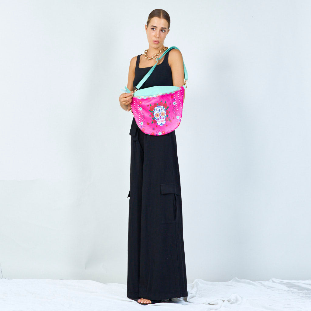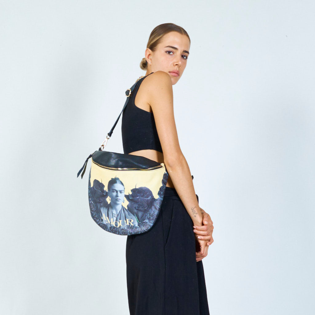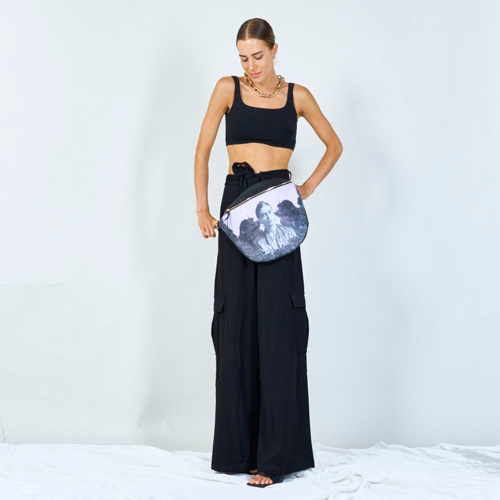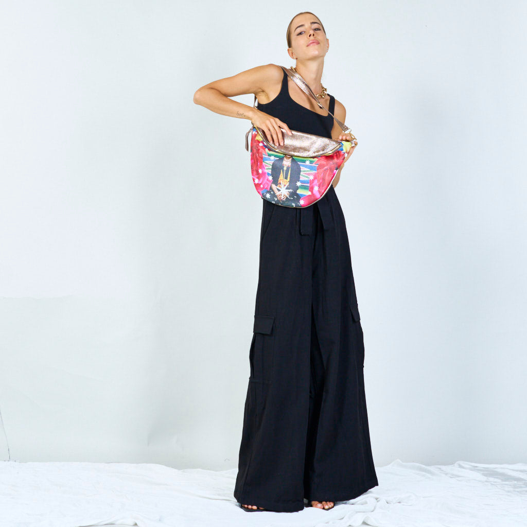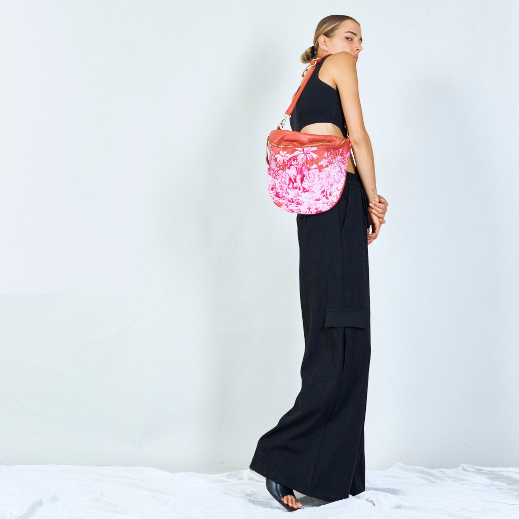 Vibrant print fanny packs with gold-tone zippers wholesale