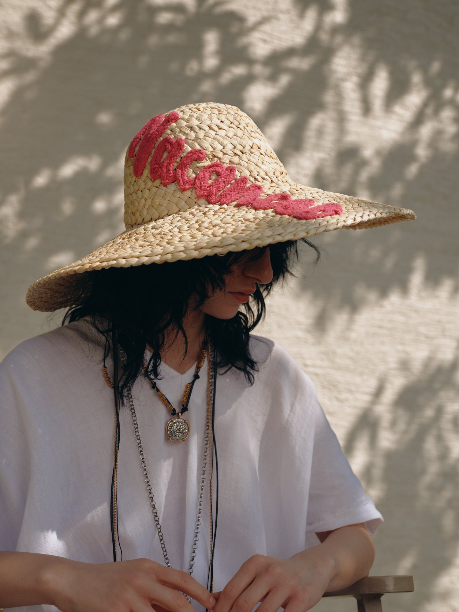 • Handwoven raffia hat with artisanal texture